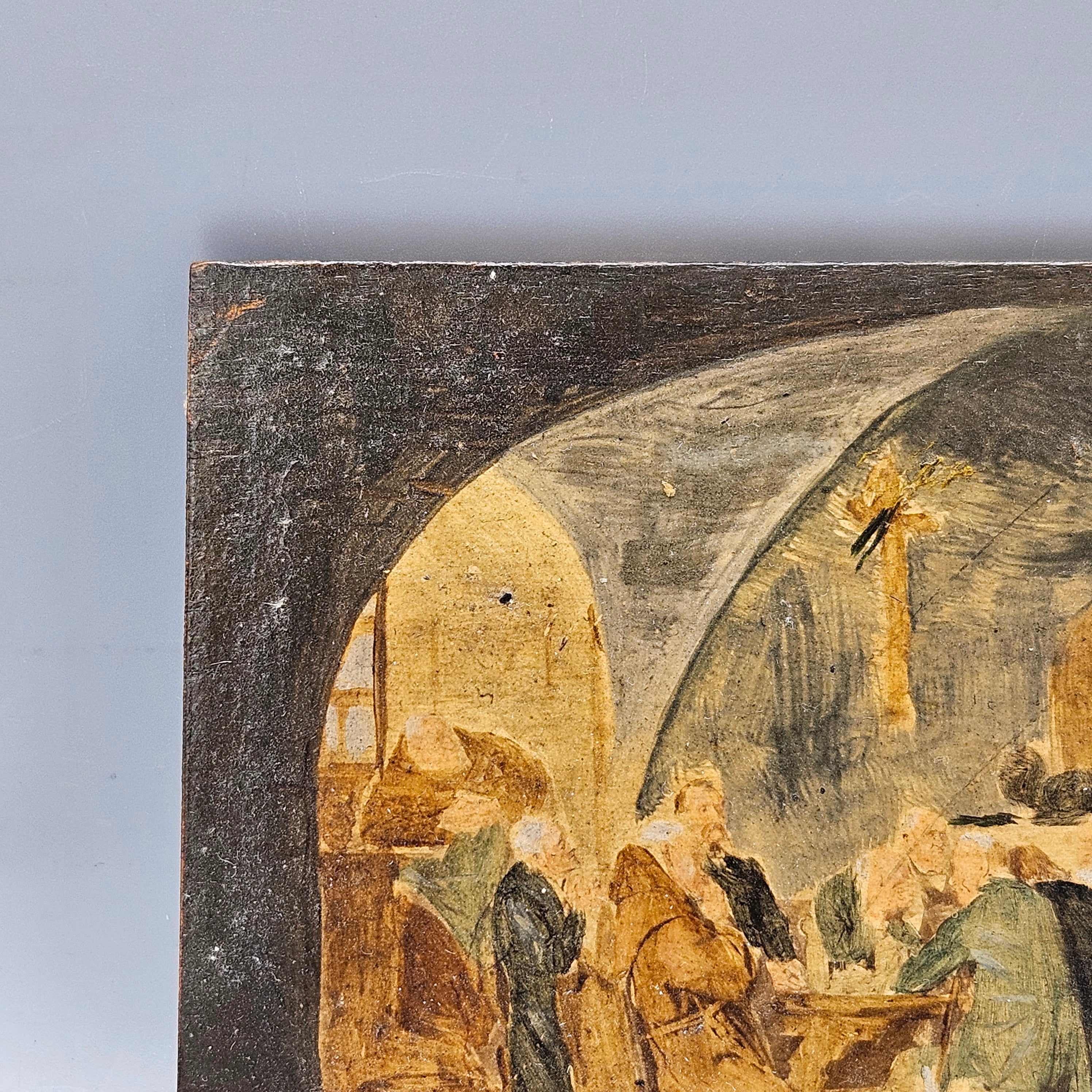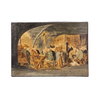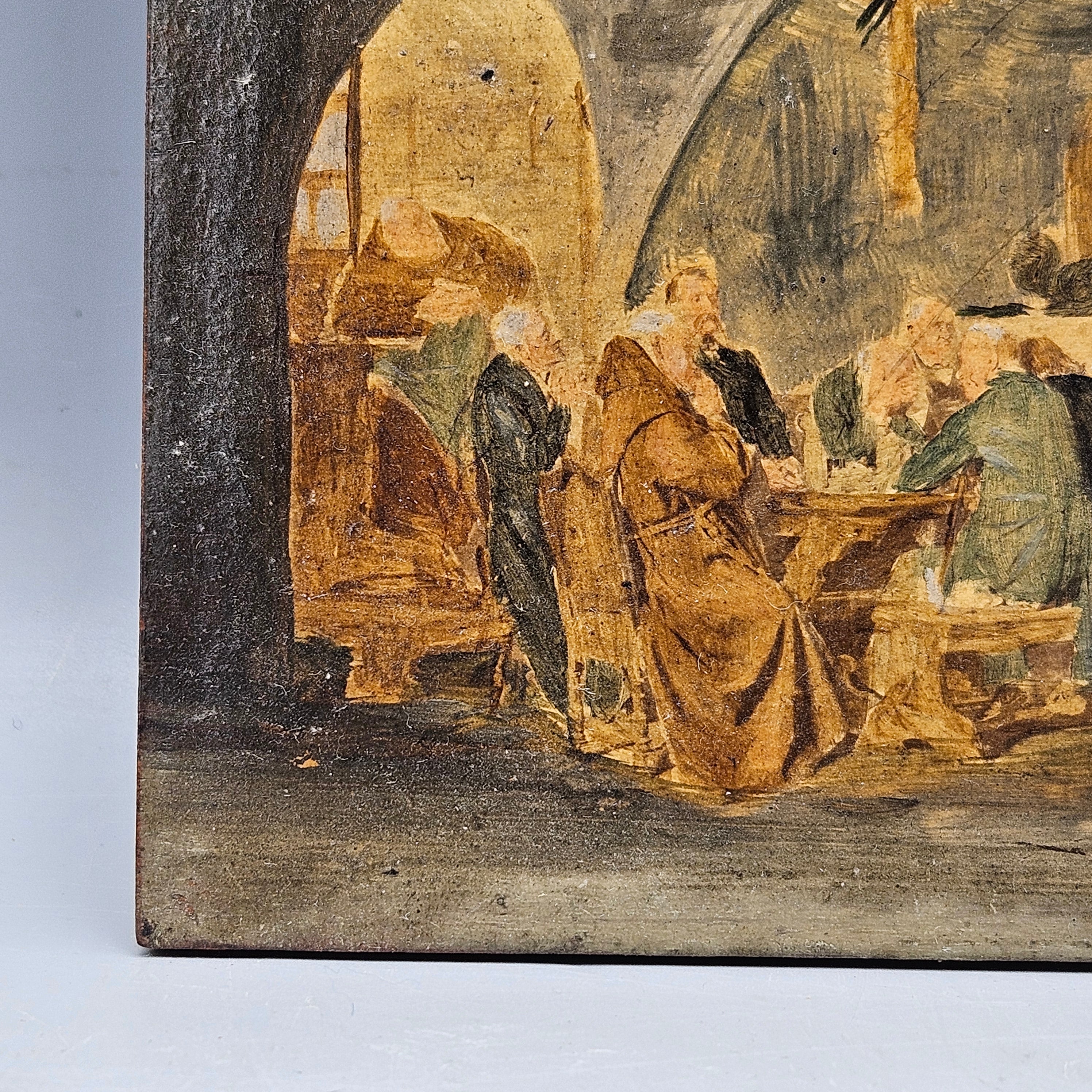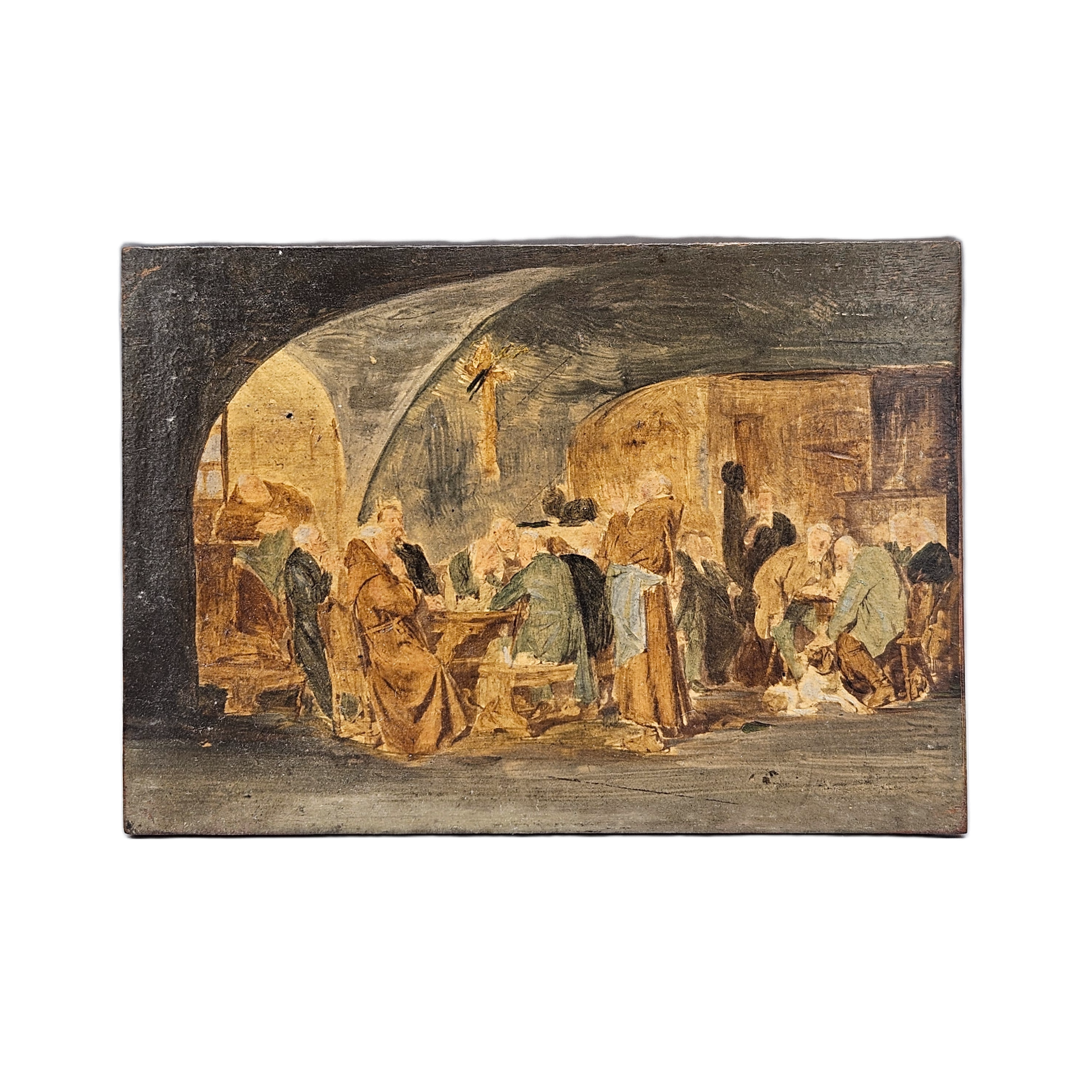 19th c Oil Sketch on Board Monks in Beer Cellar