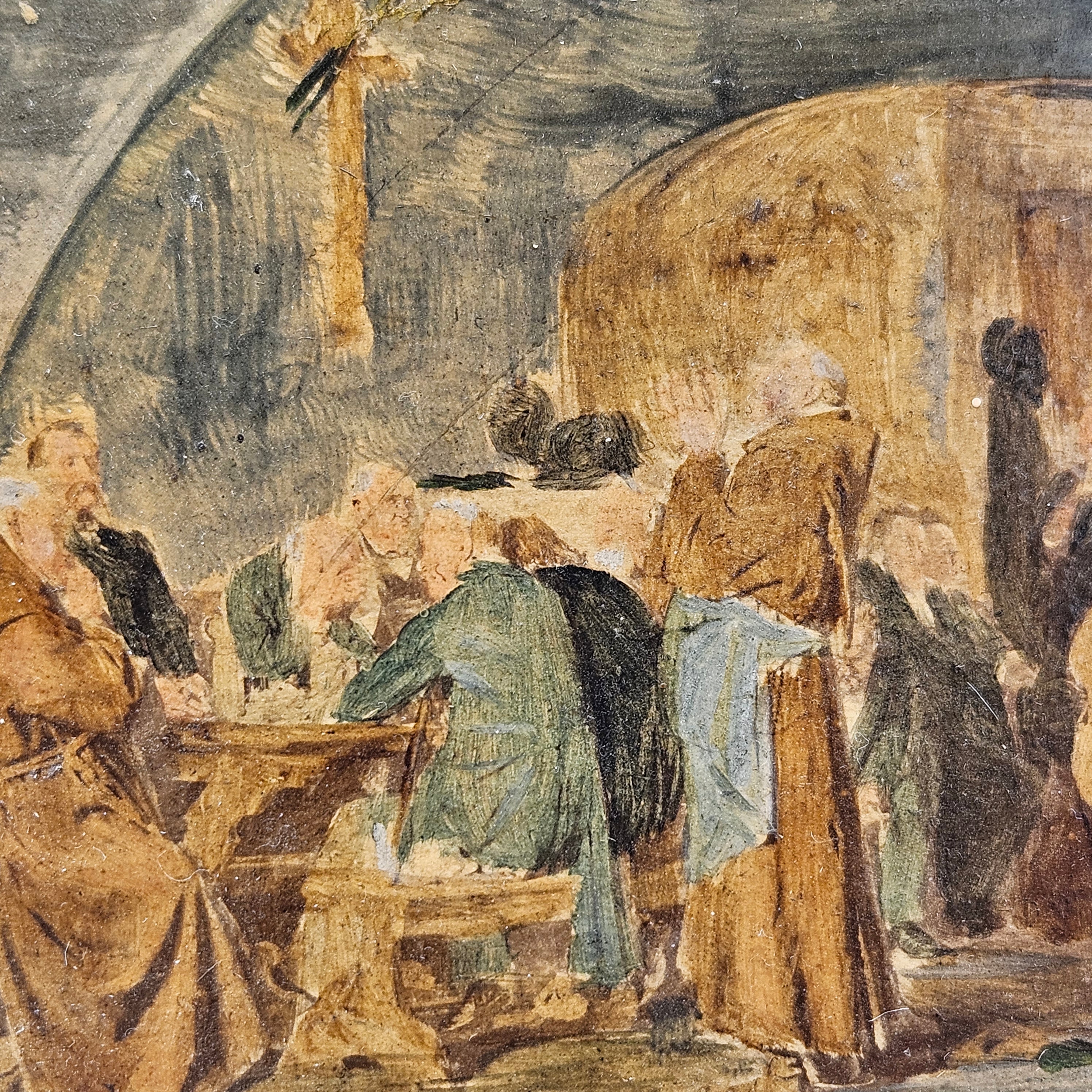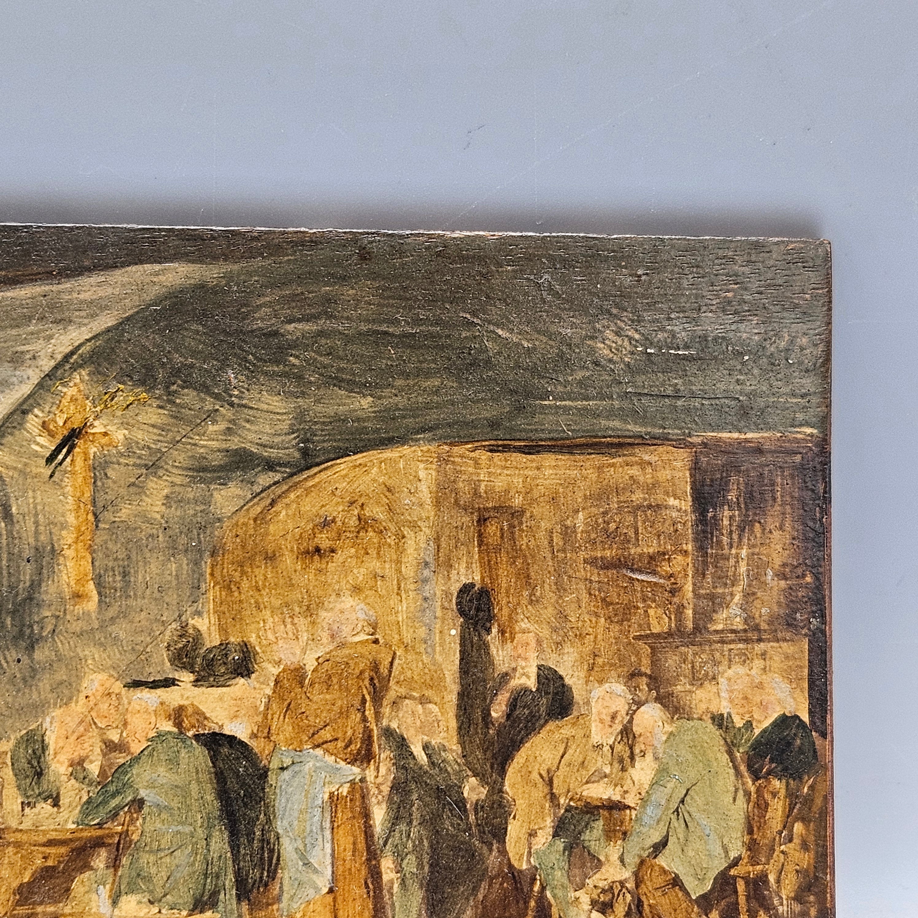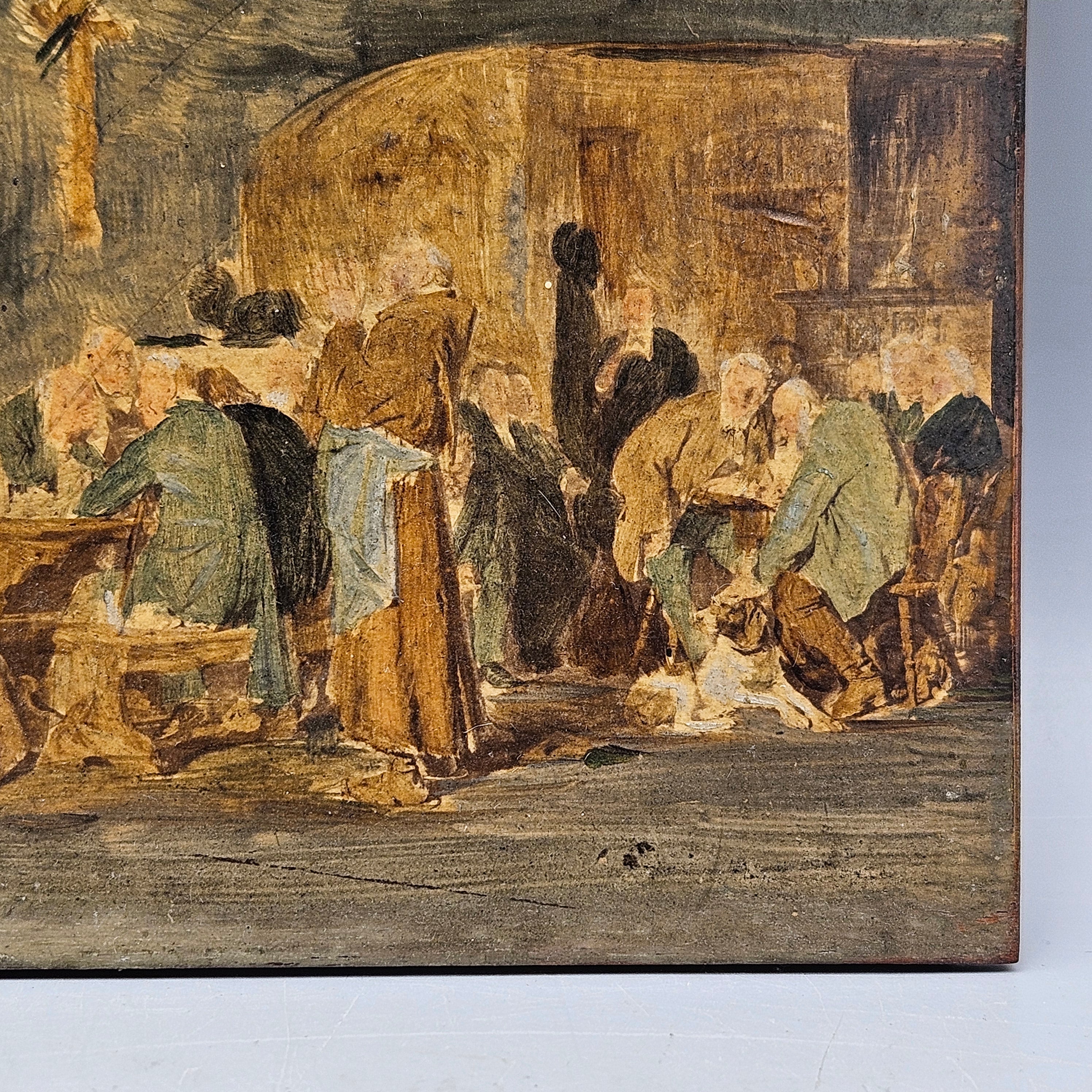 19th c Oil Sketch on Board Monks in Beer Cellar