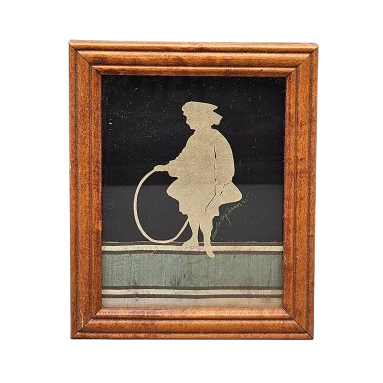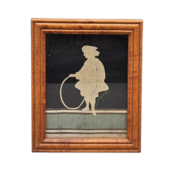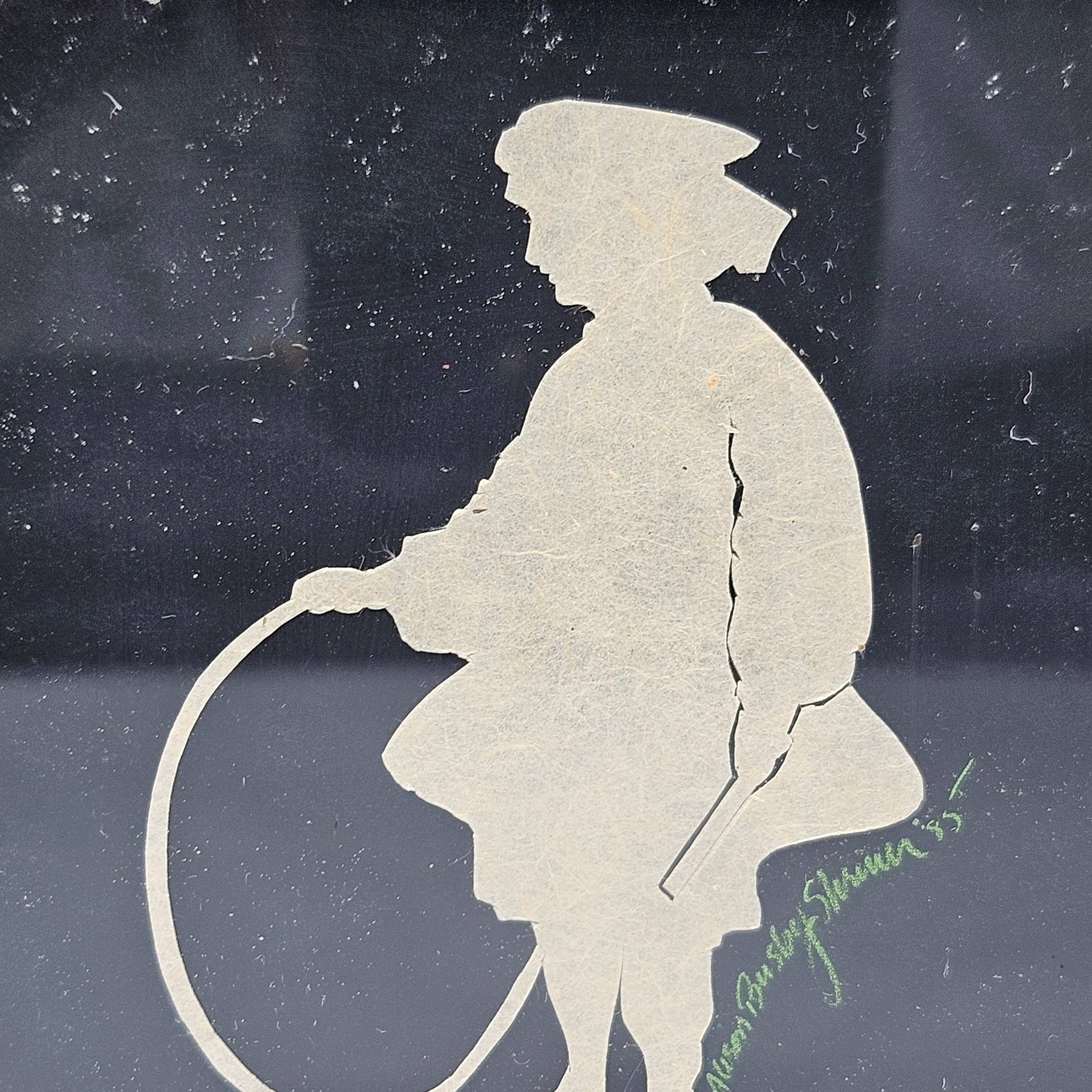 Alison Shriver Design Hand Cut Paper Silhouette of Boy with Hoop Toy