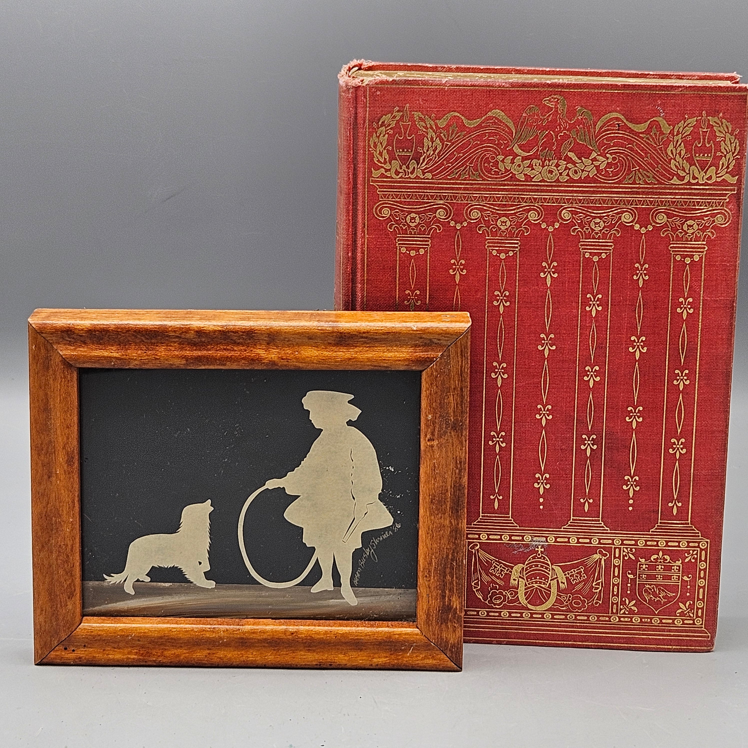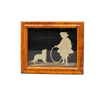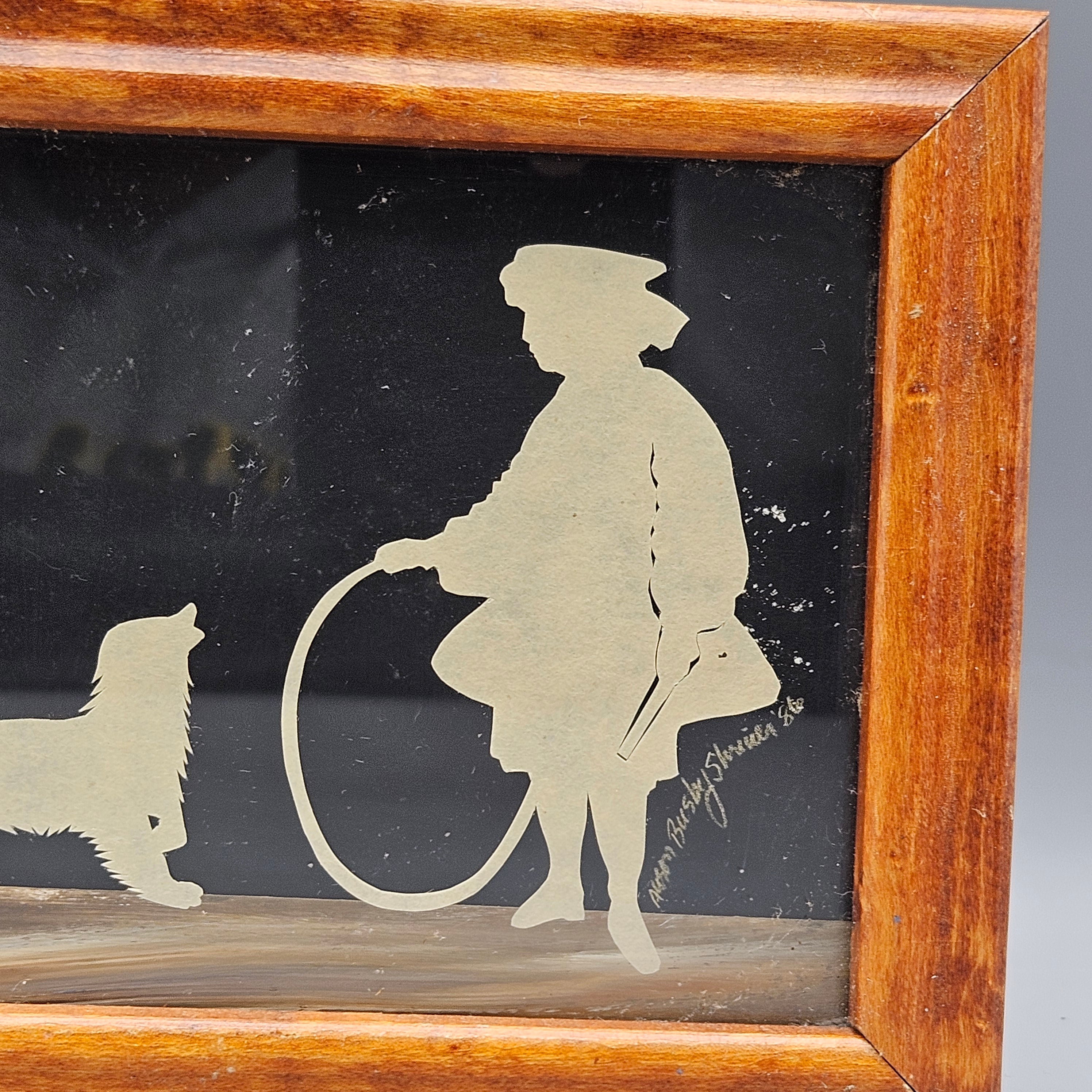 Alison Shriver Design Hand Cut Paper Silhouette of Boy with Hoop Toy and Dog