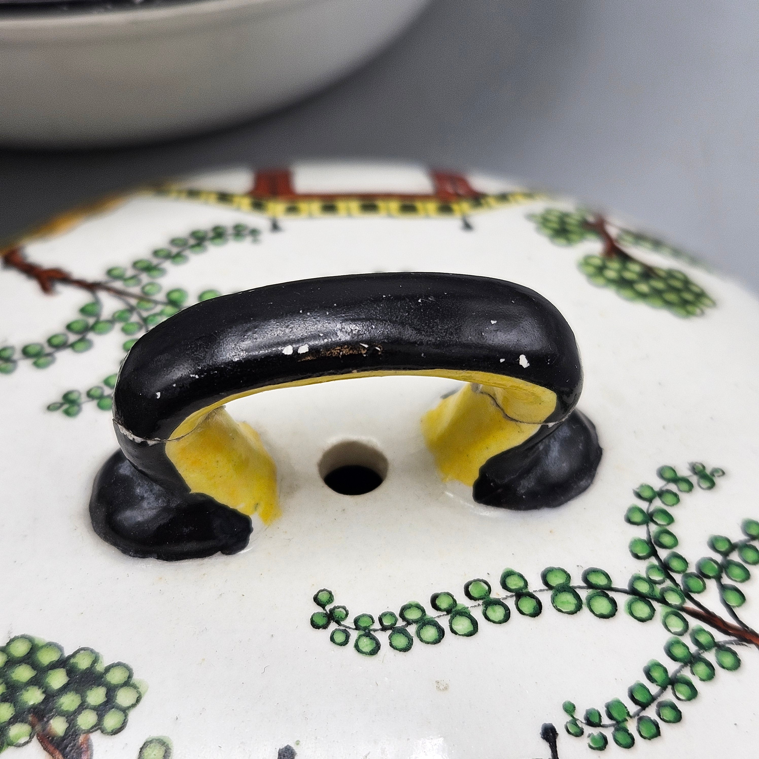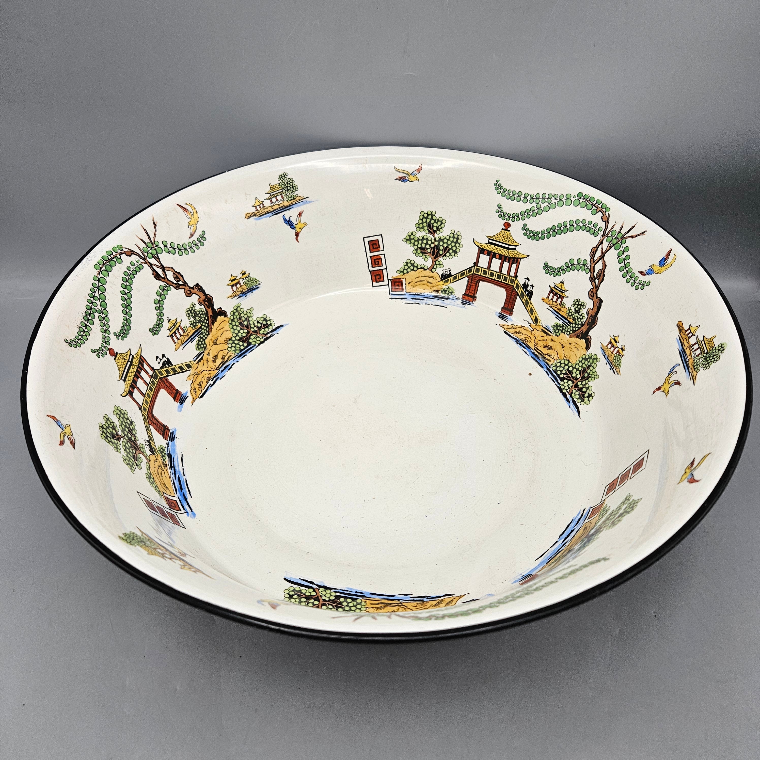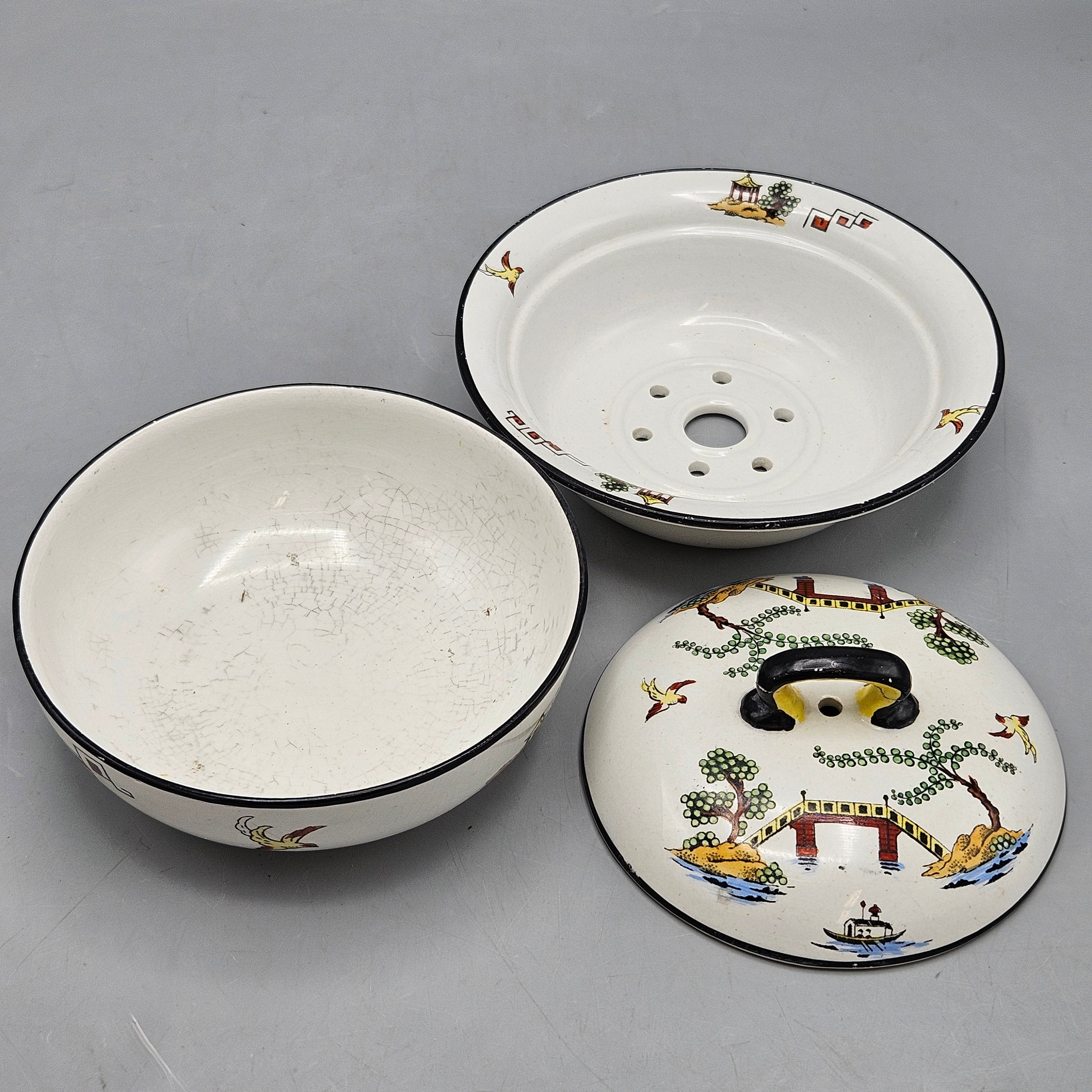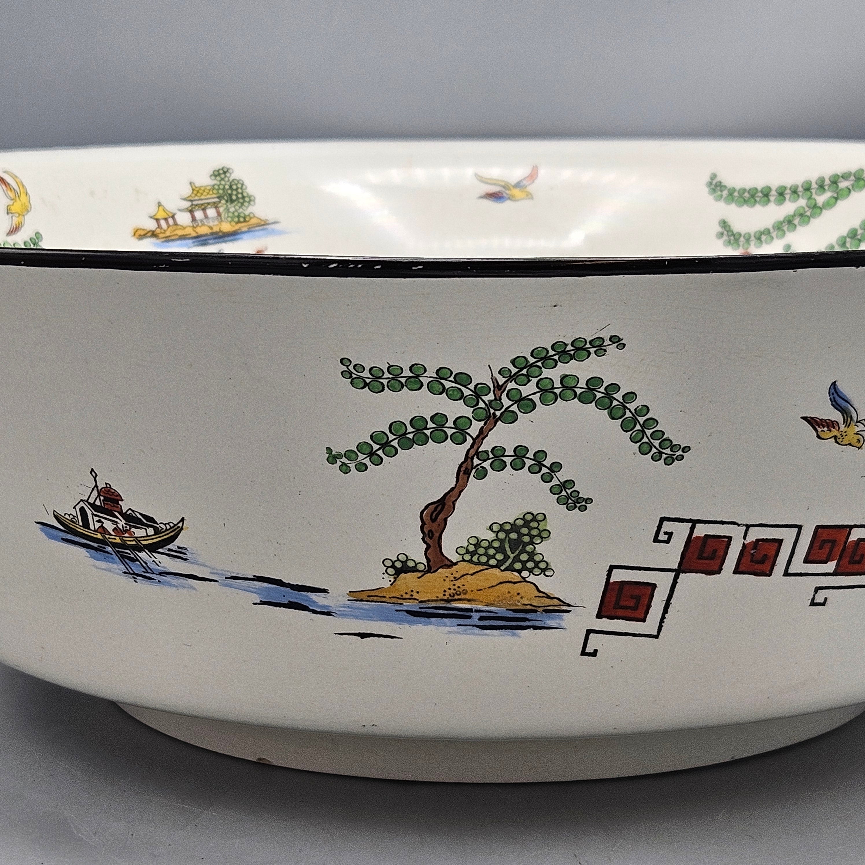 Antique Bisto England Maple London Chinoiserie Pattern Wash Set and Covered Soap Dish