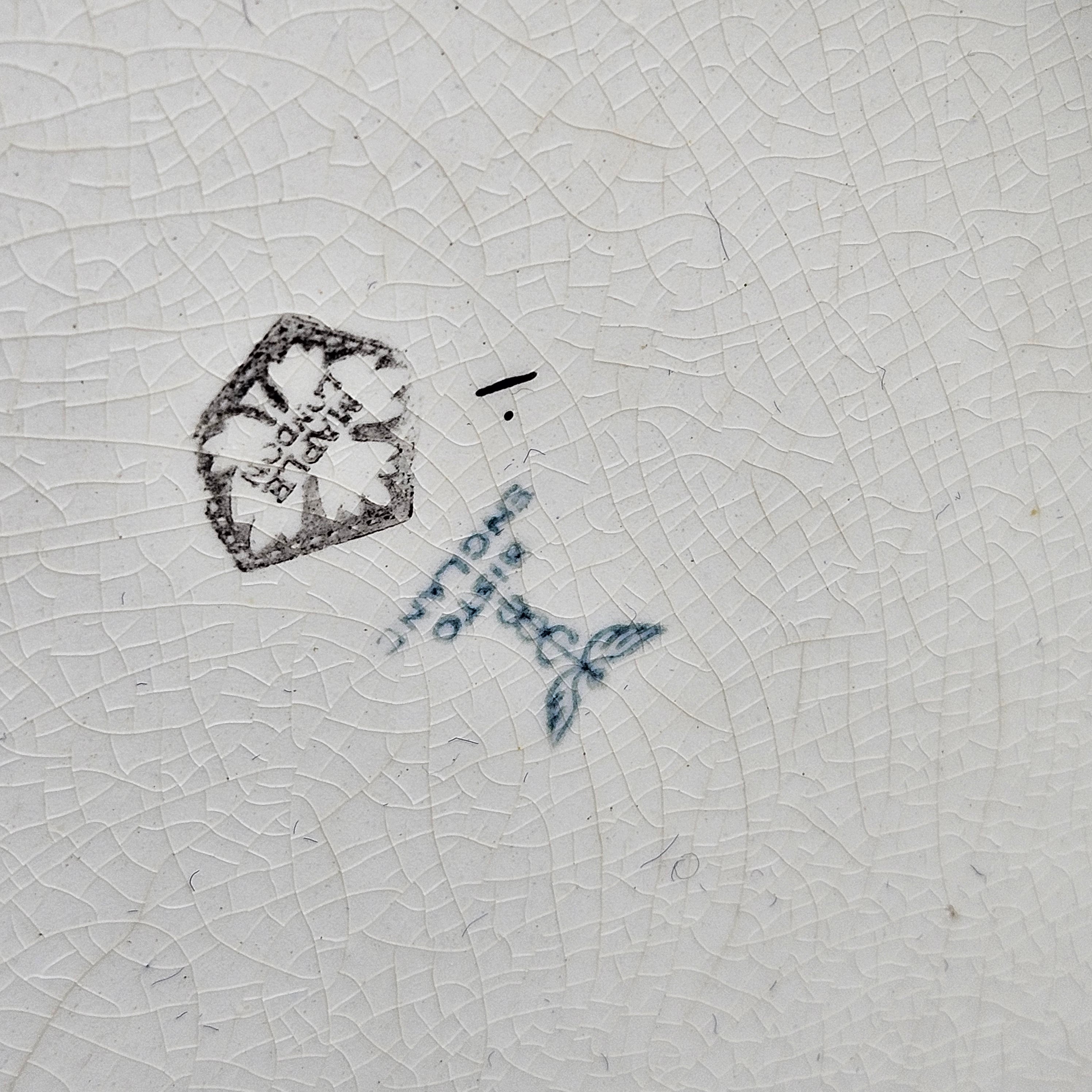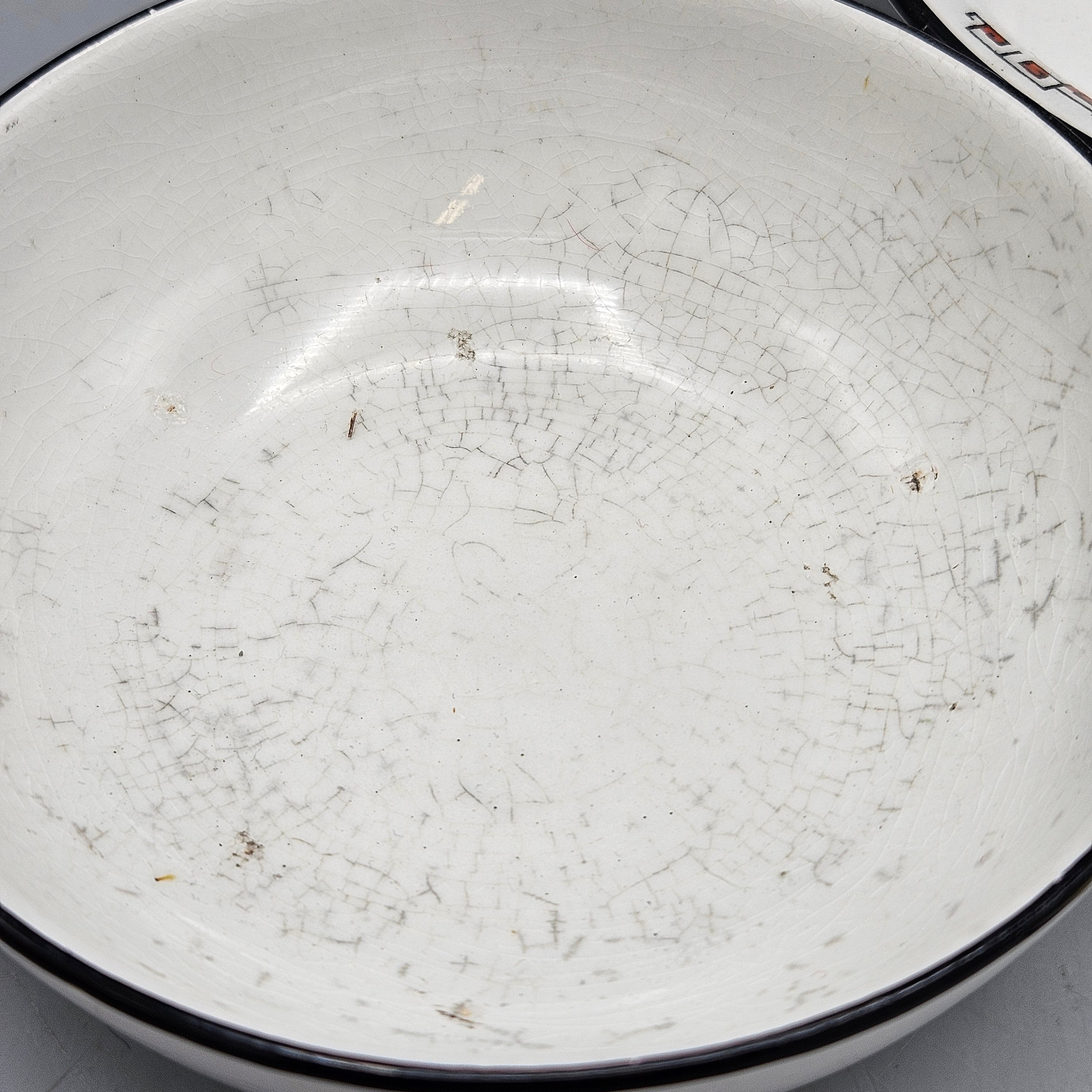 • Good condition, all-over crazing, light wear; soap dish with some soiling and staining