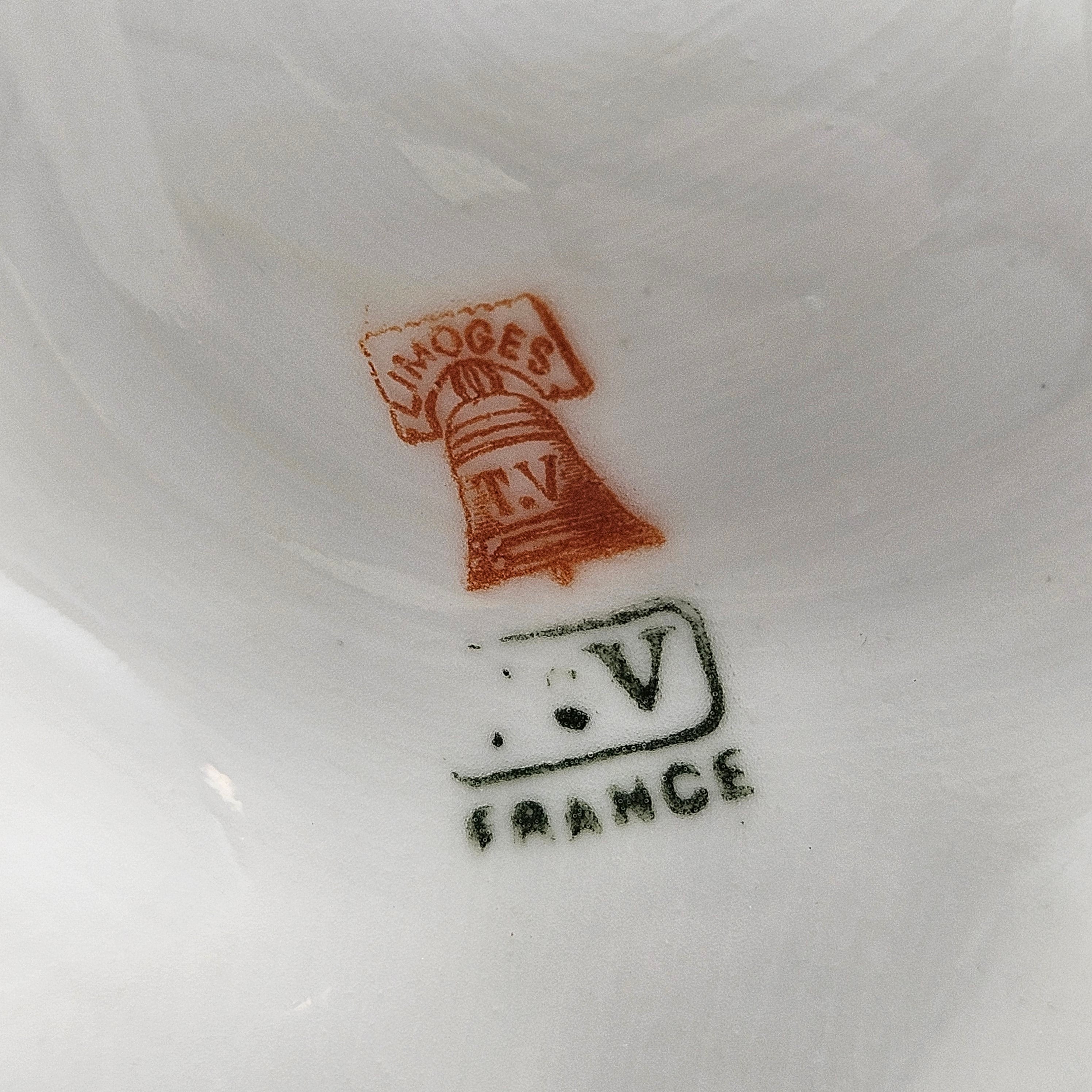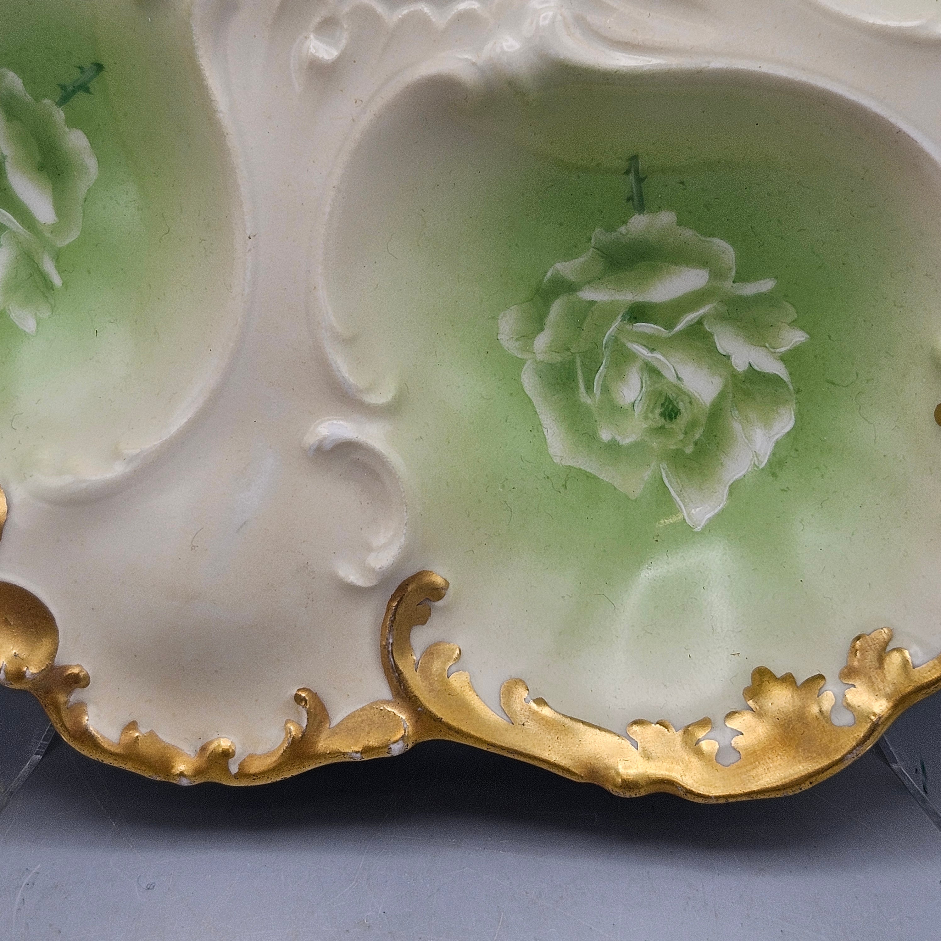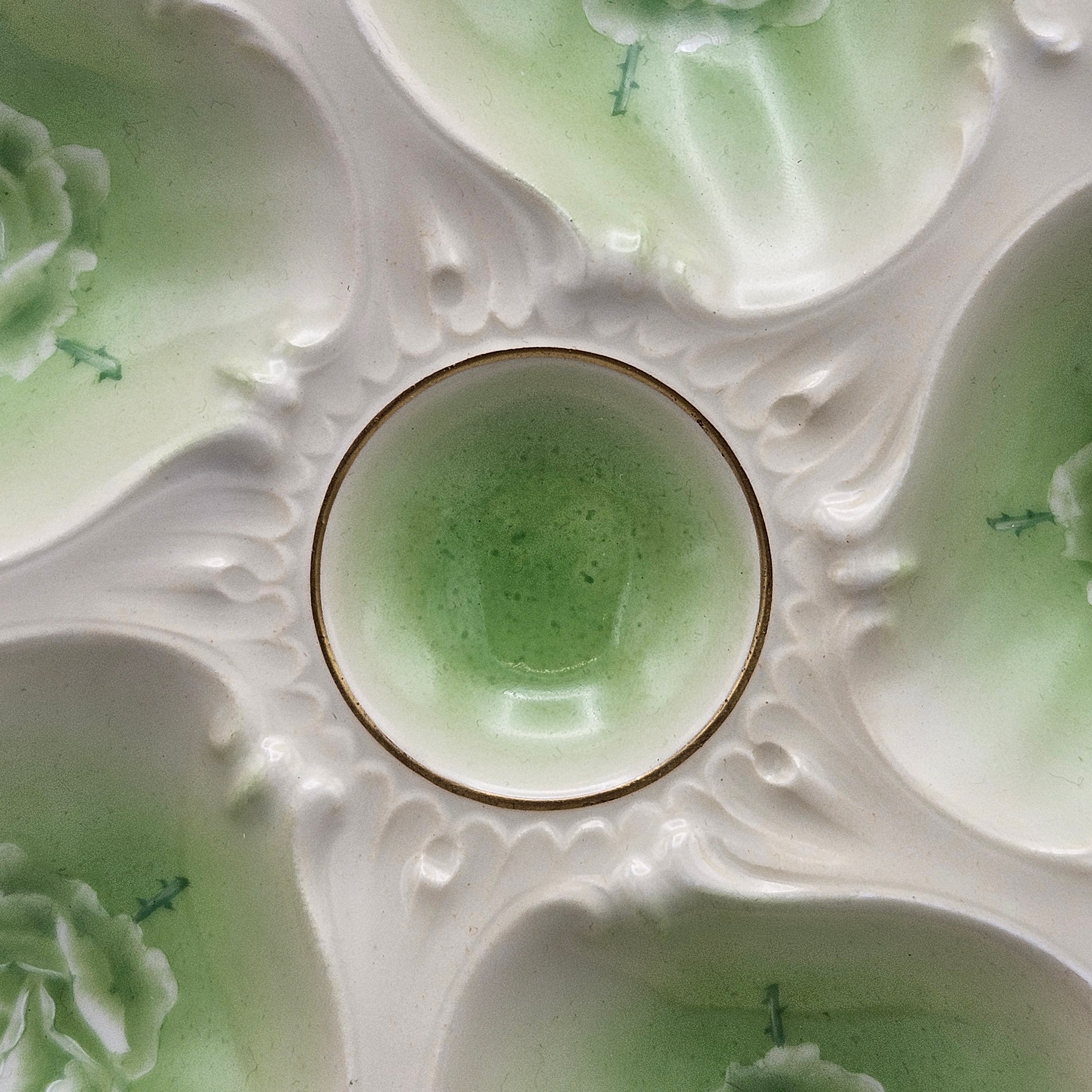 Antique French T&V, Limoges Porcelain Green and Gold Oyster Plate