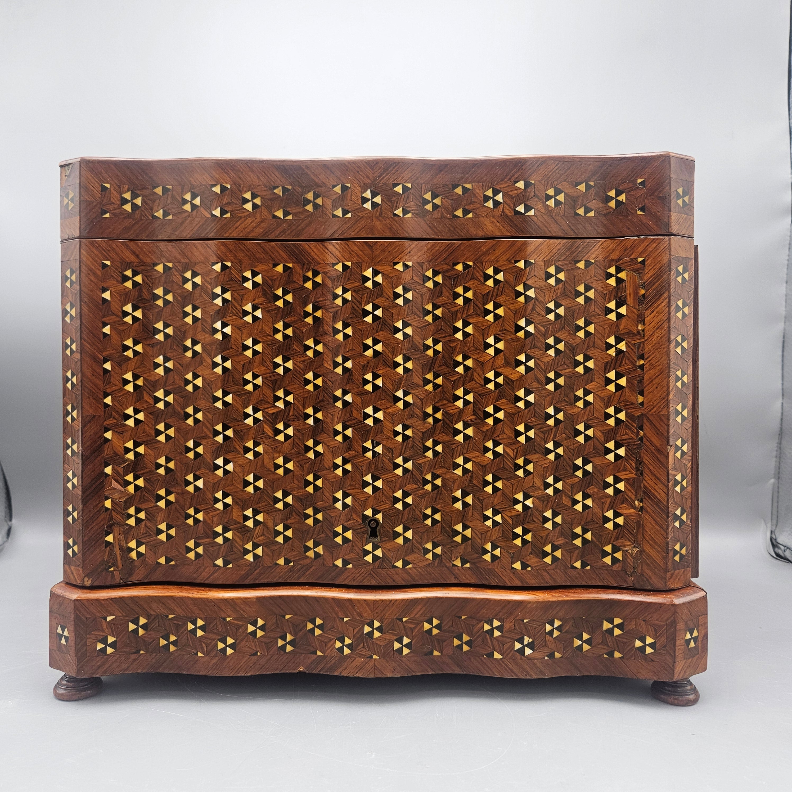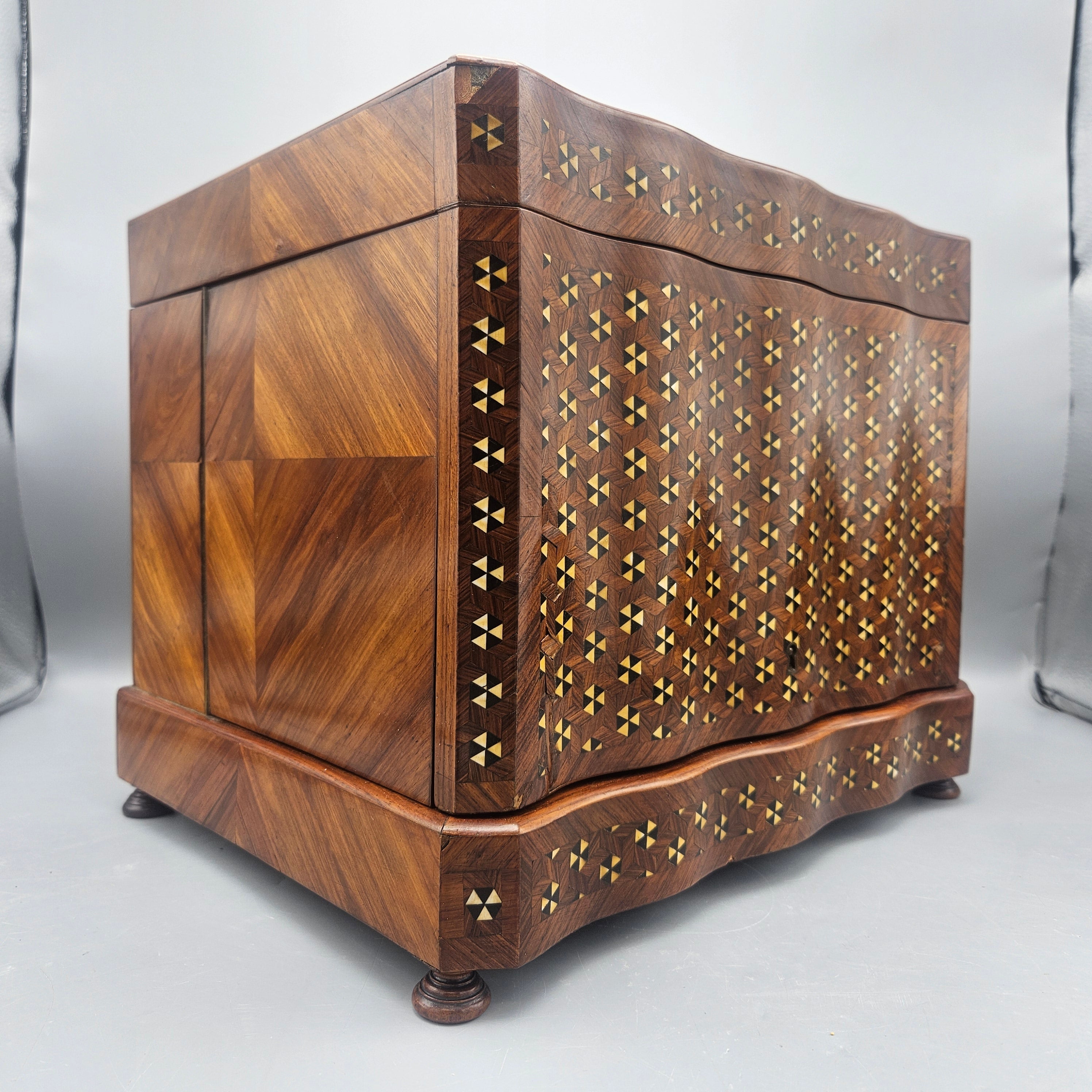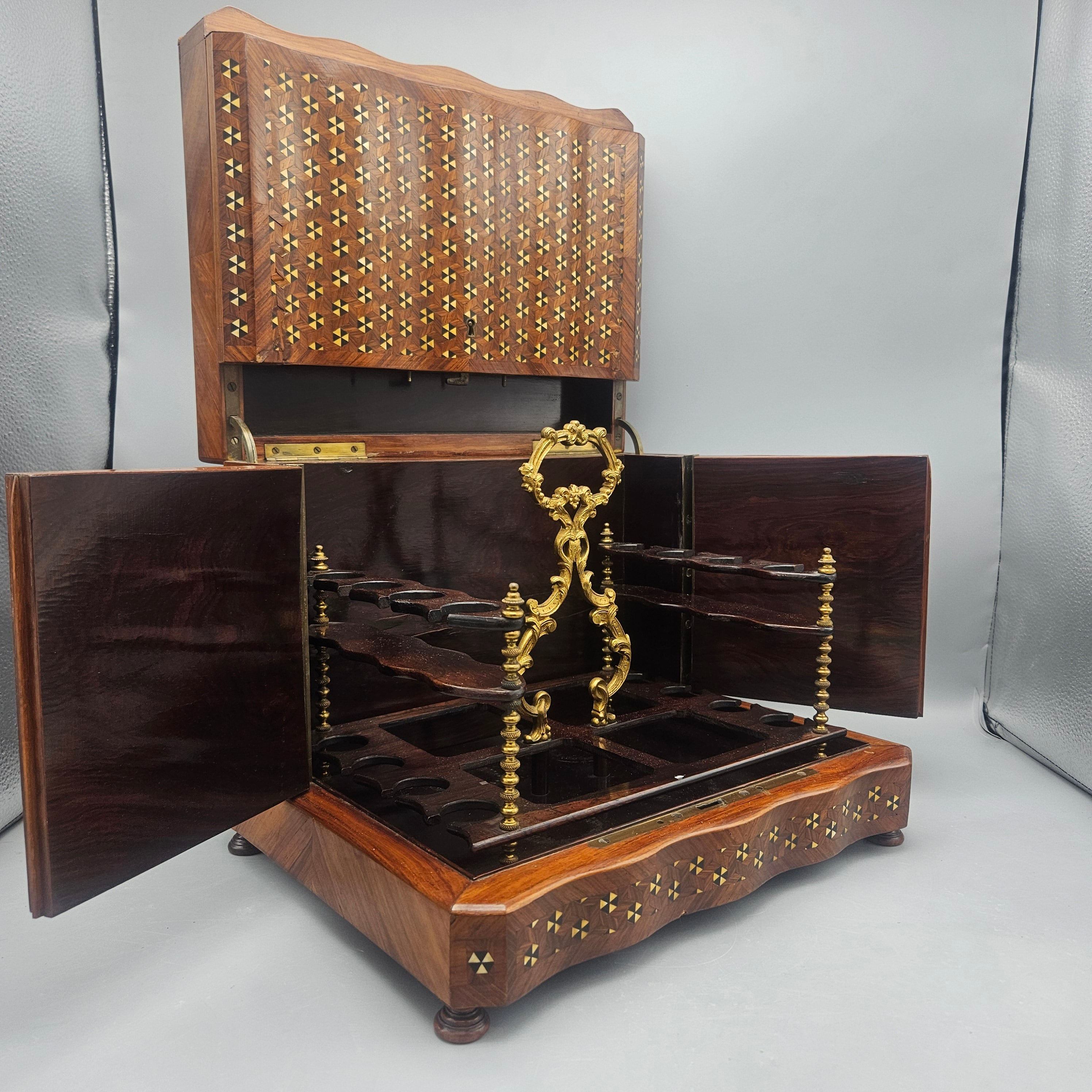 Antique Marquetry Inlaid Liquor Tantalus