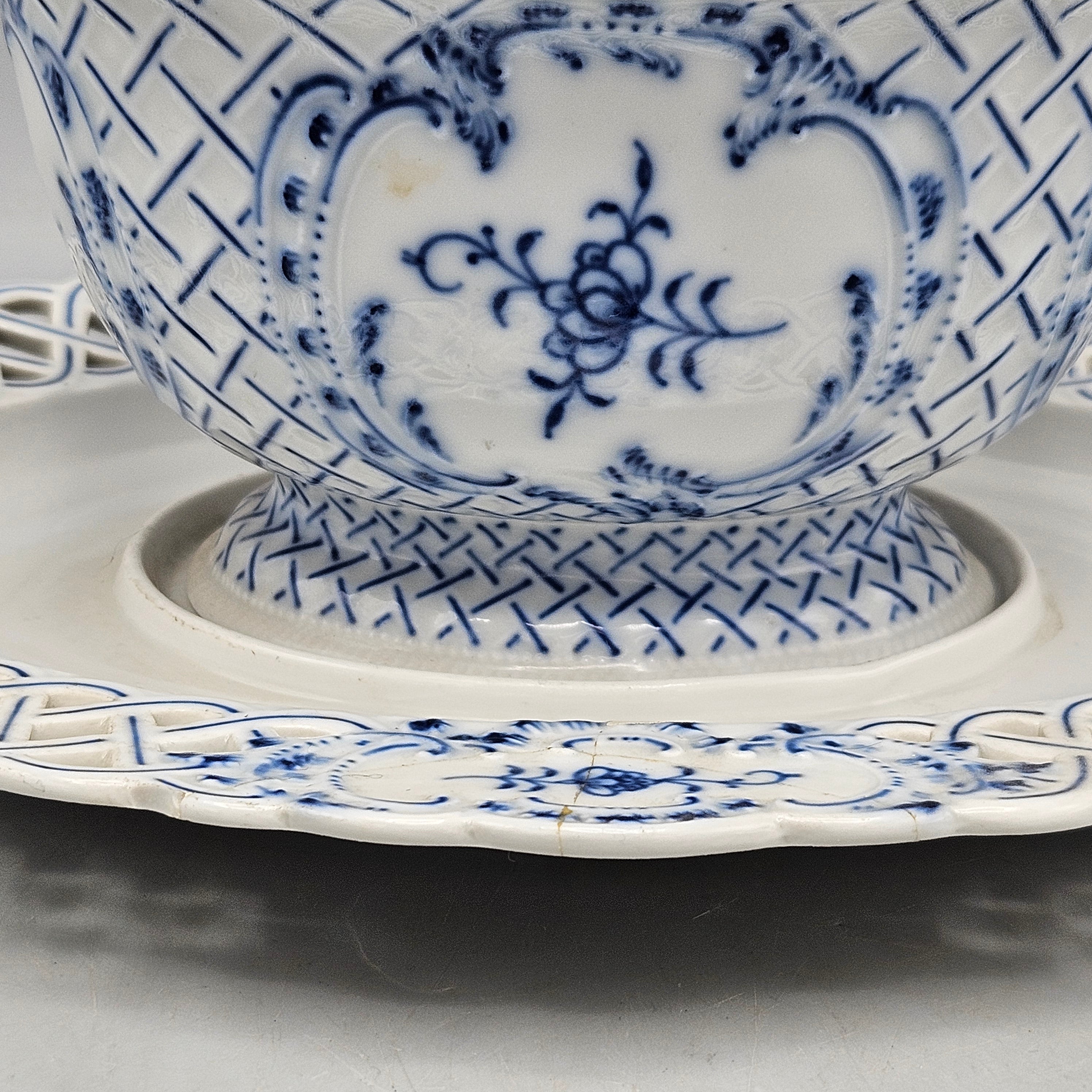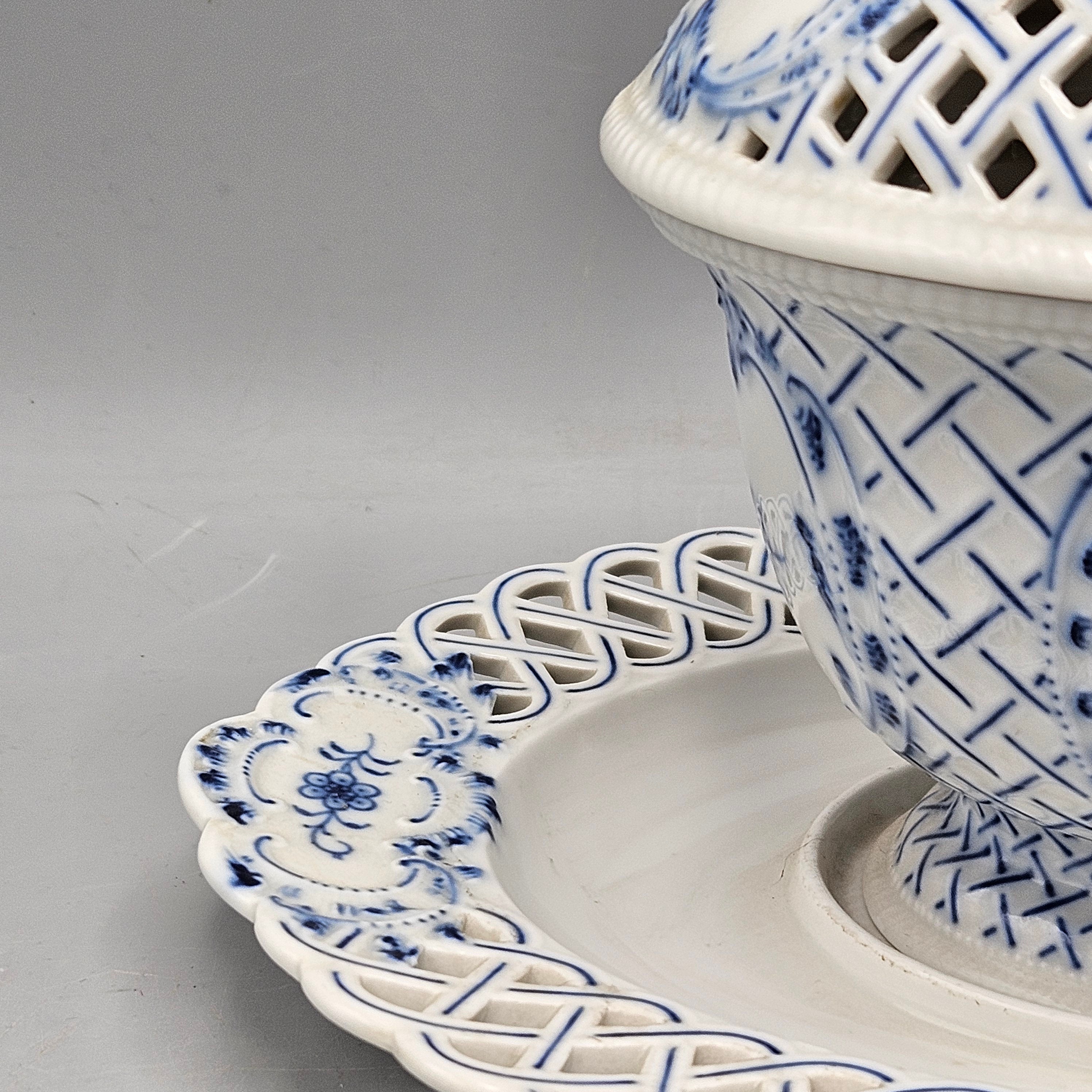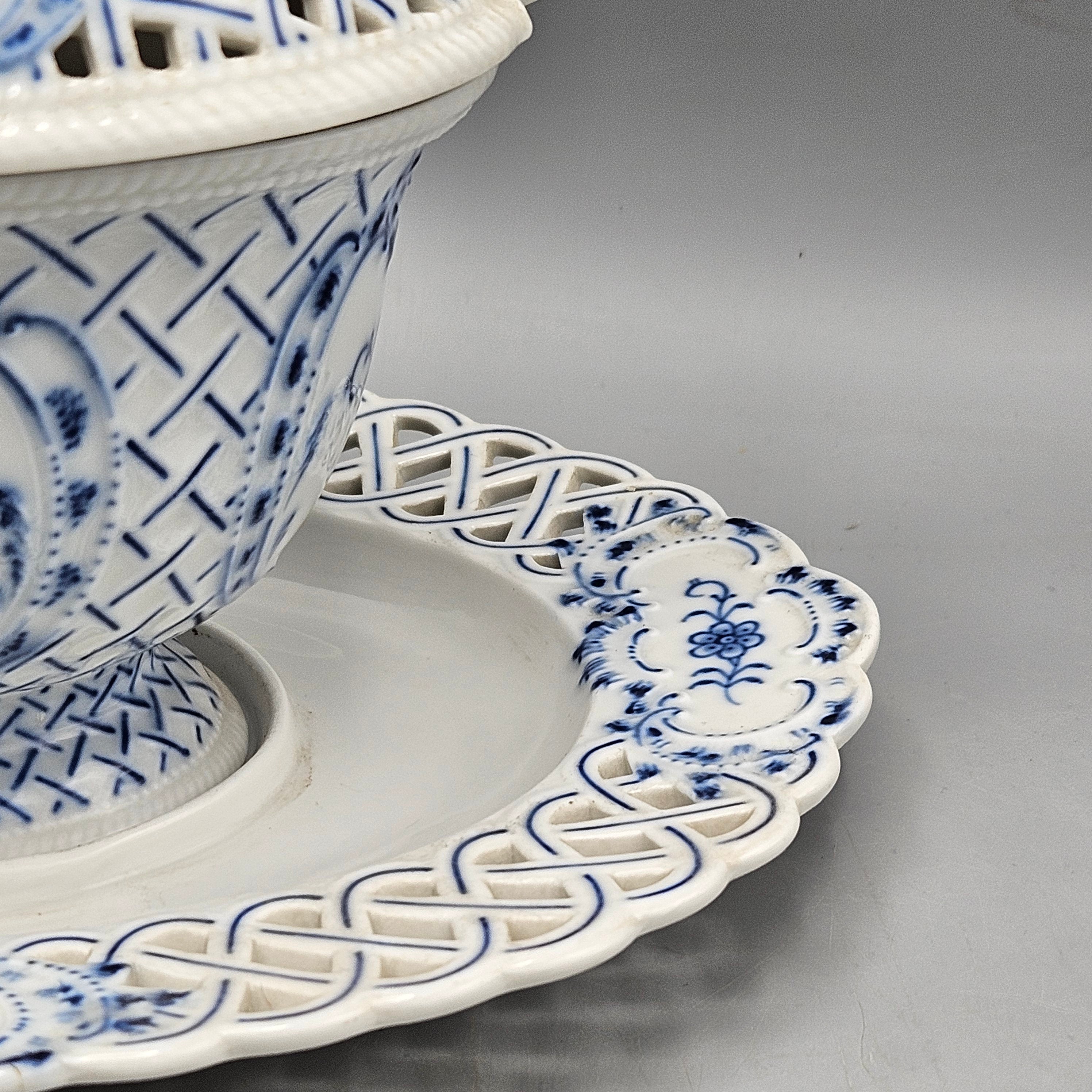 Antique Meissen Blue Onion Sauce Boat with Reticulated Lid
