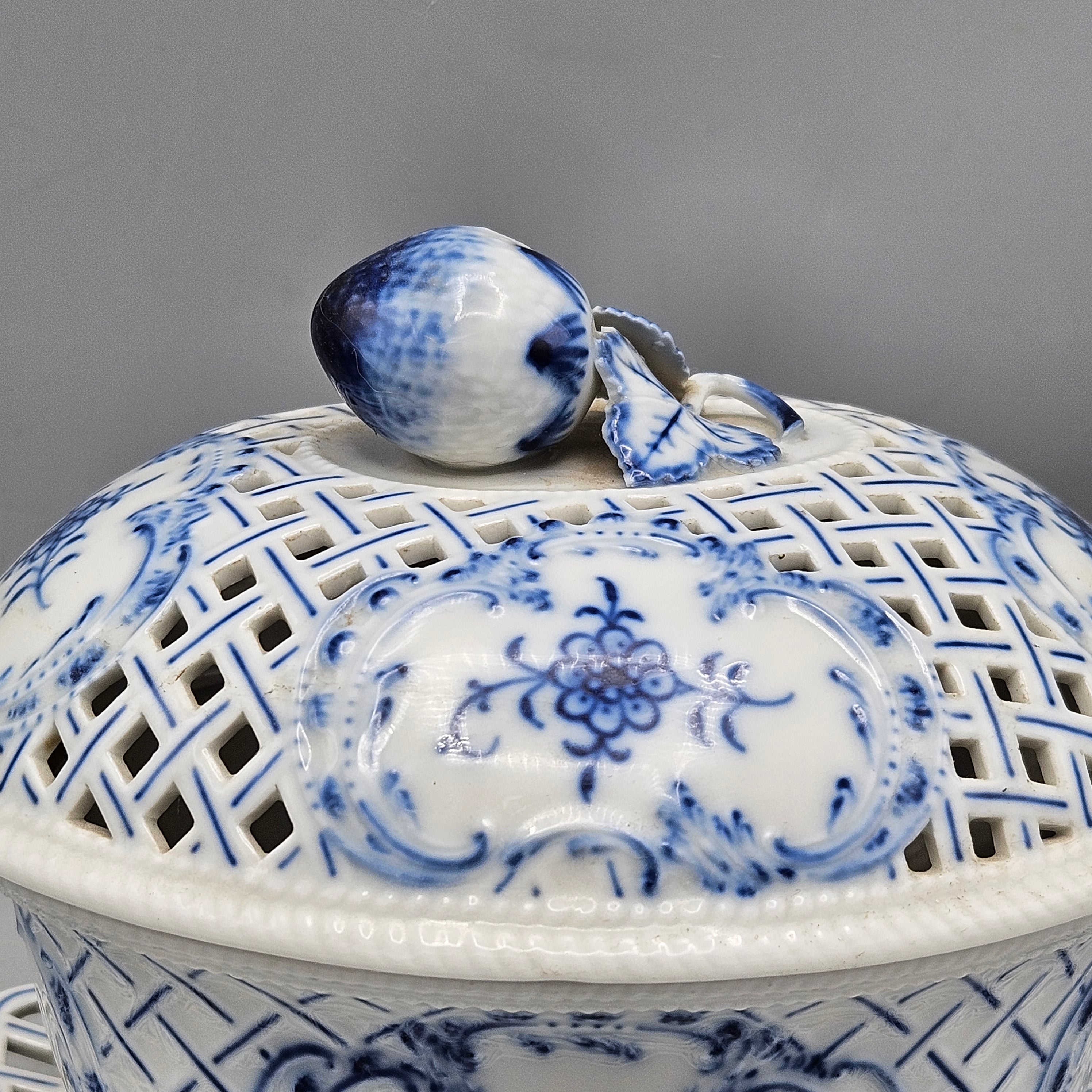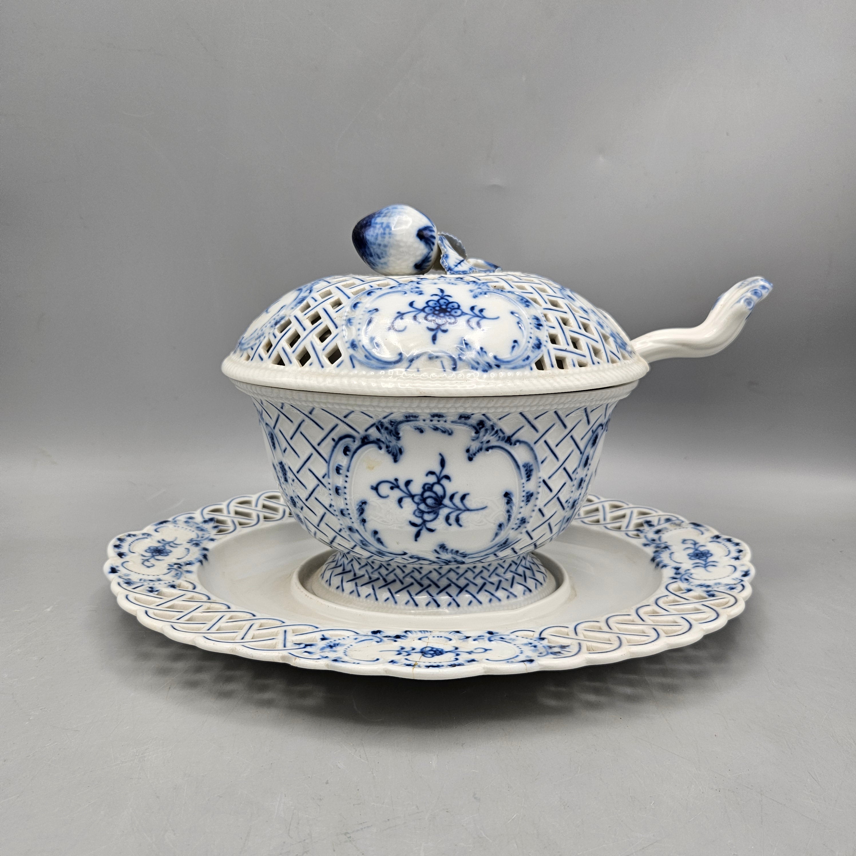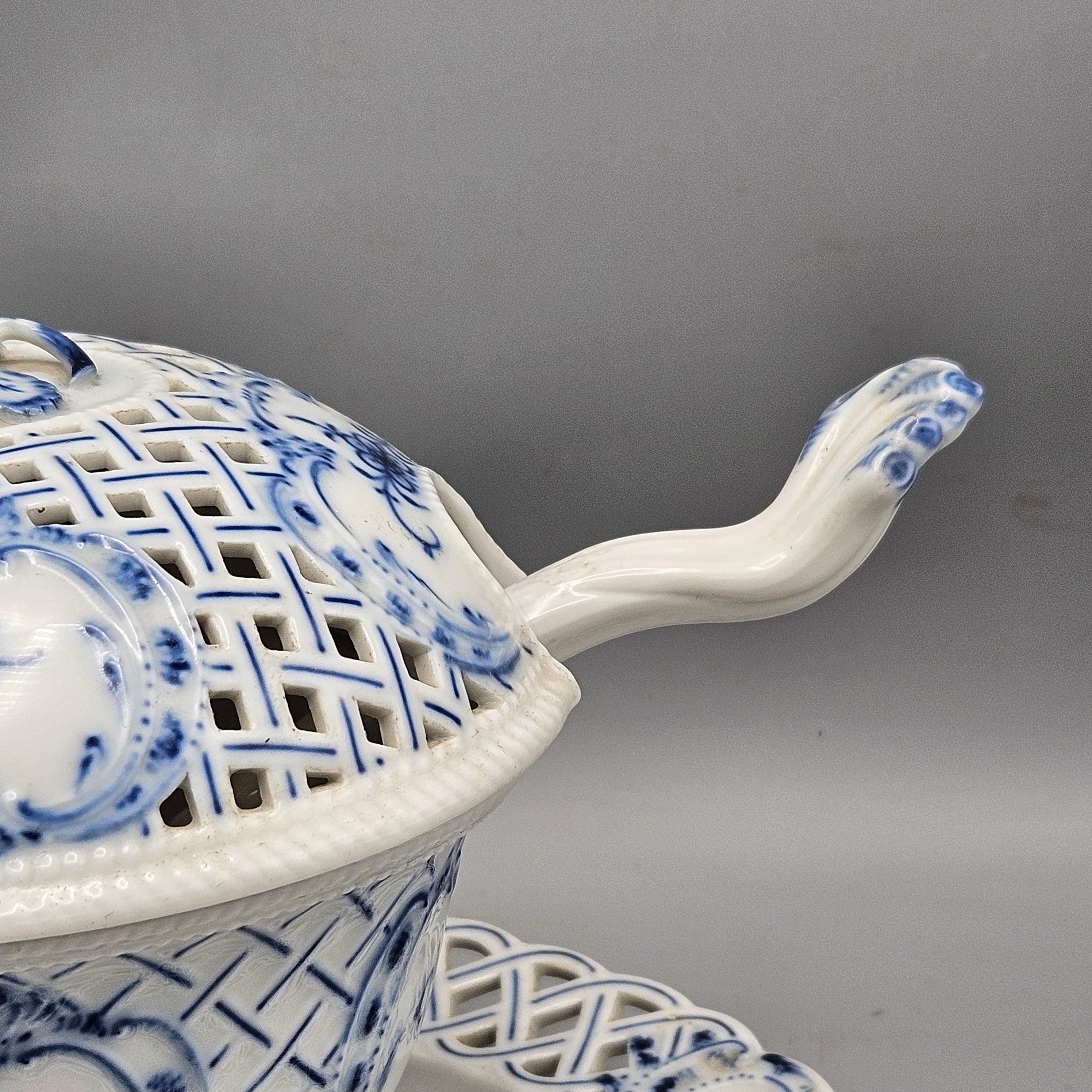 Antique Meissen Blue Onion Sauce Boat with Reticulated Lid
