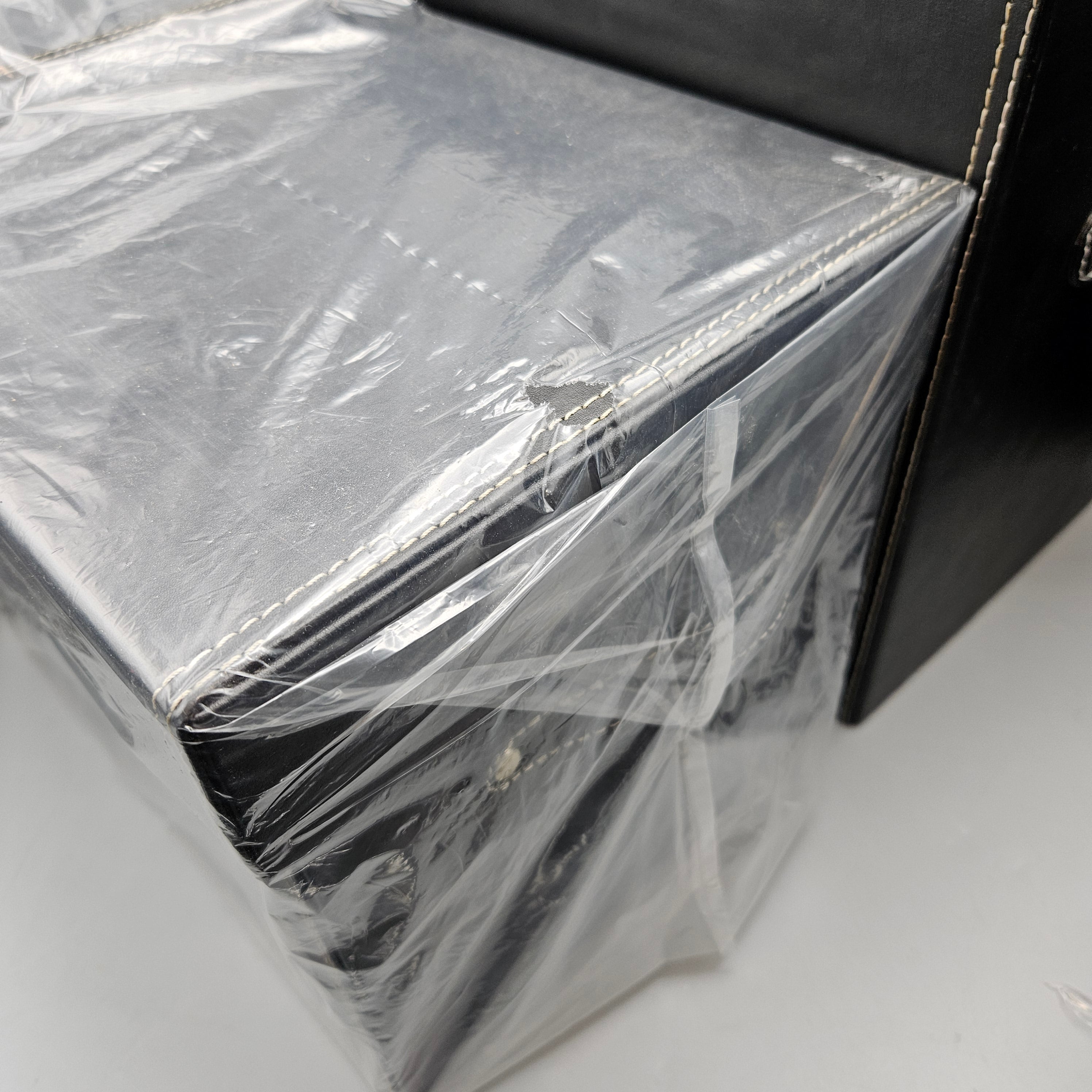 Black Leather-Covered Storage Box