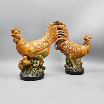 Chalkware Chicken and Rooster Figurines