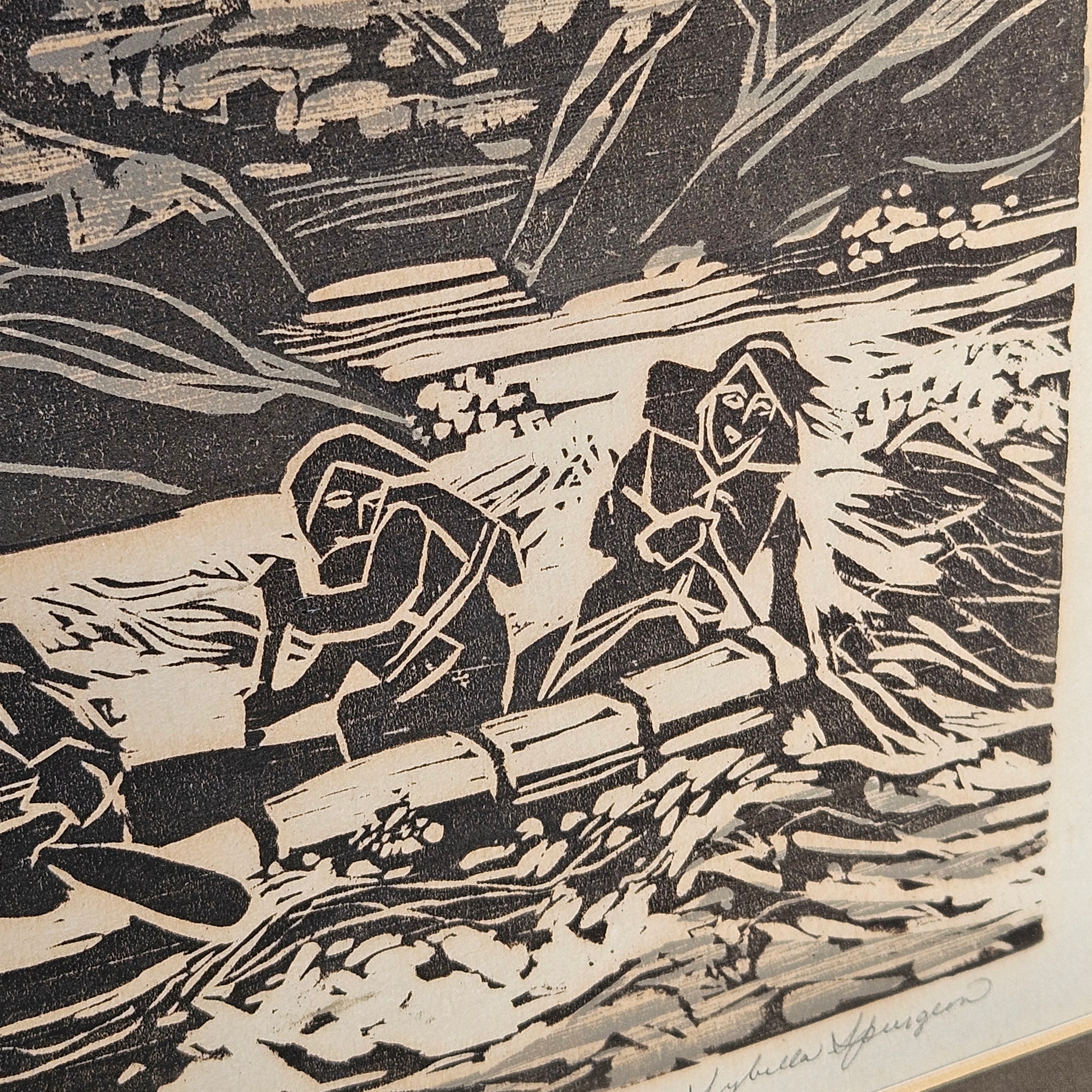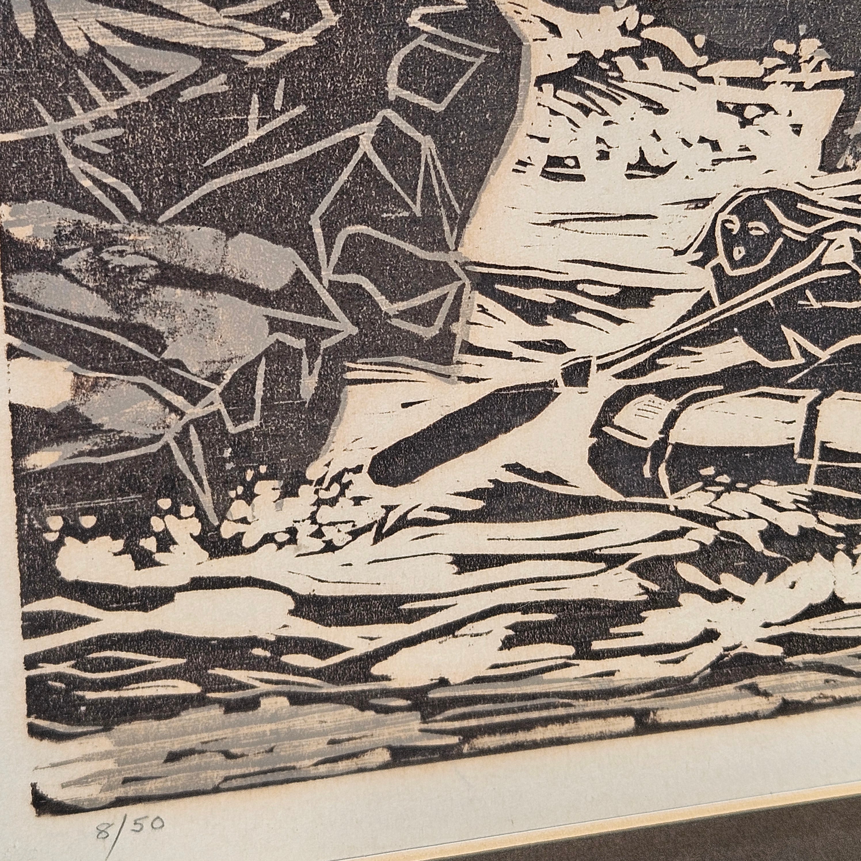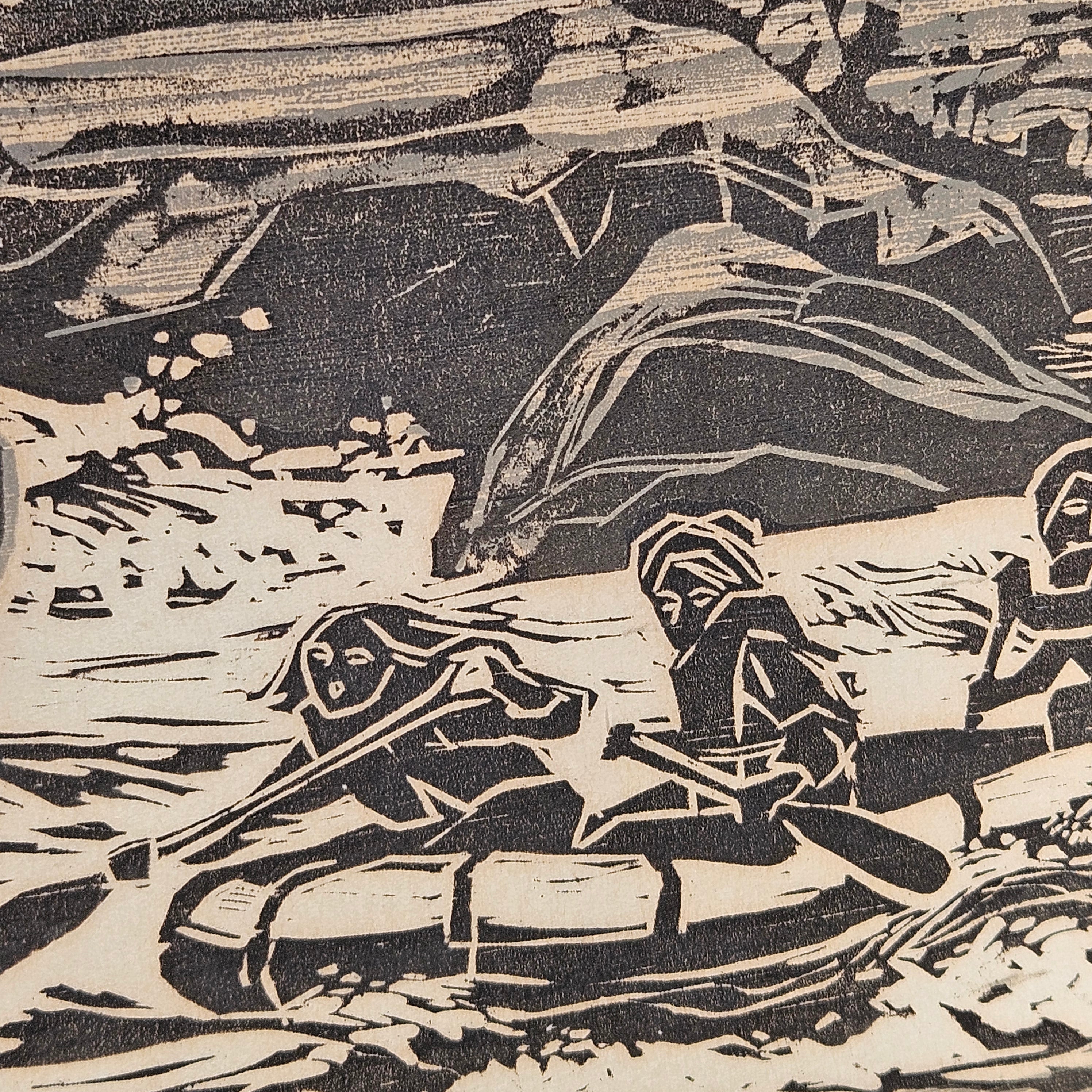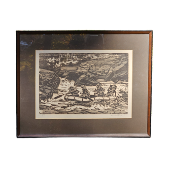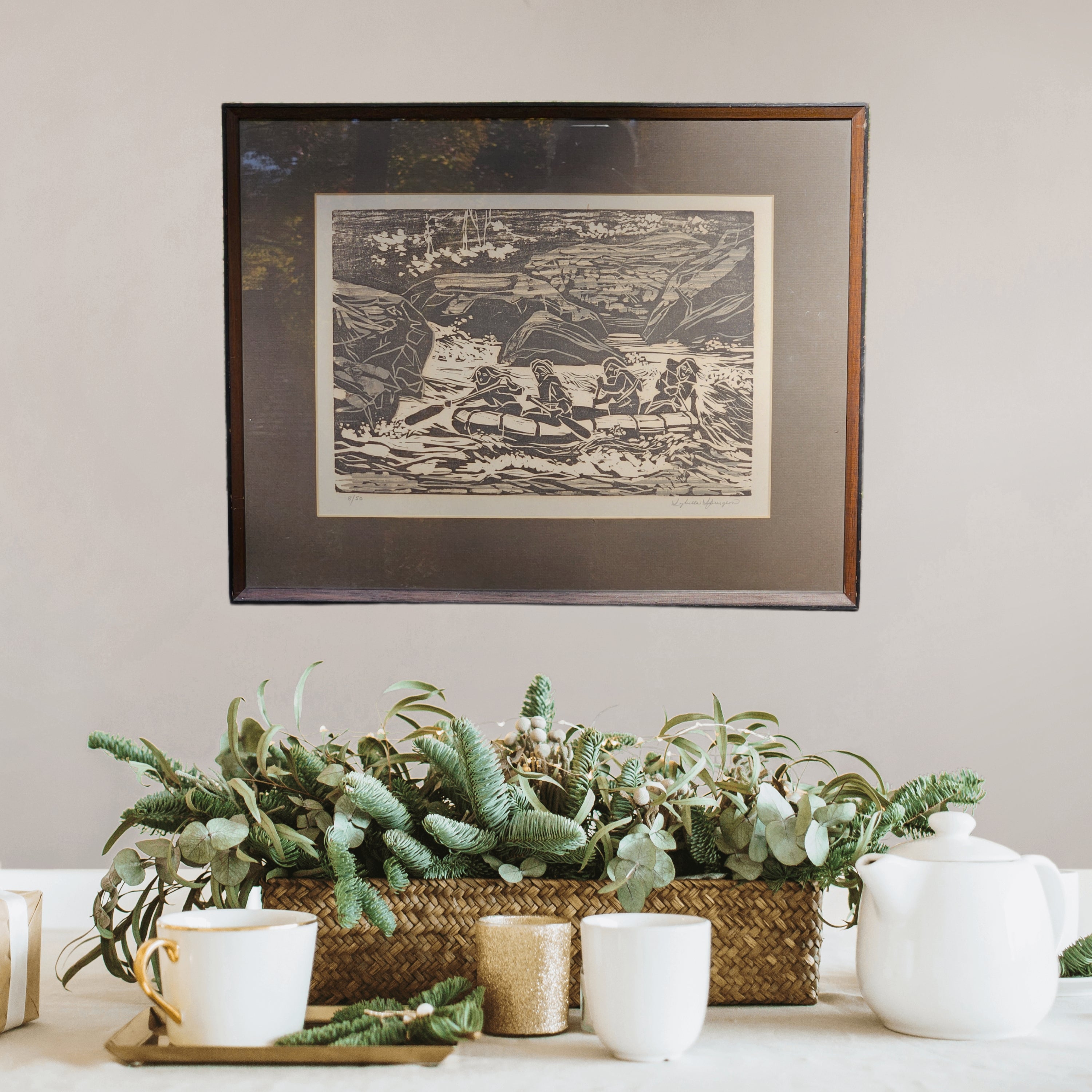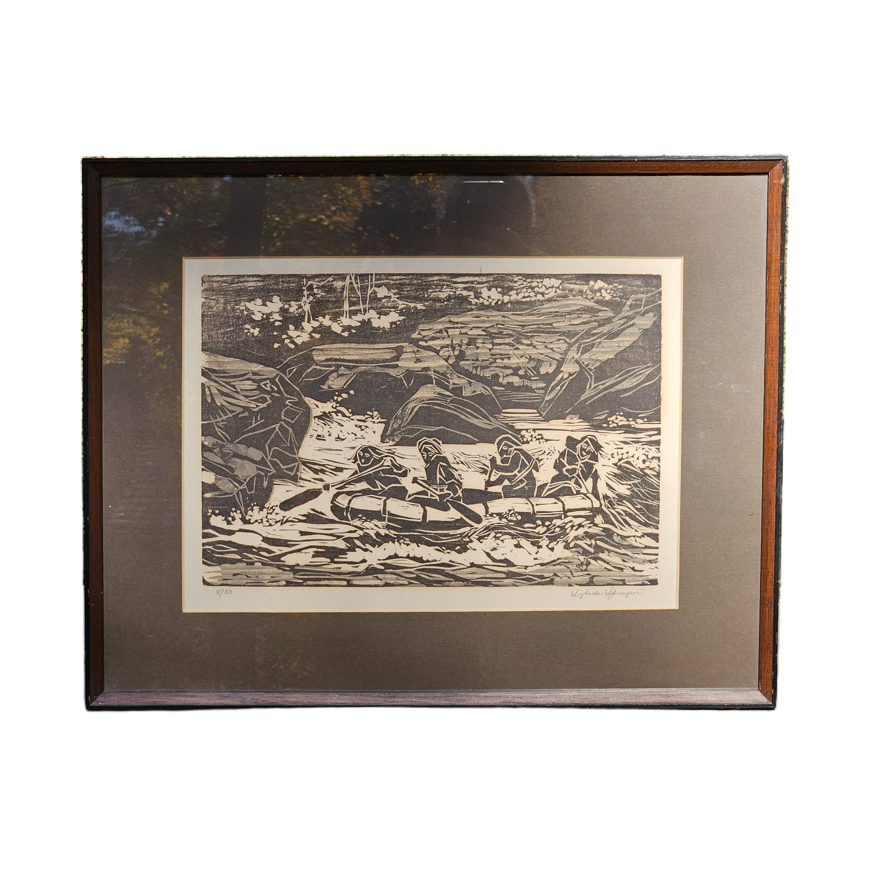Color Woodclock Print White-Water Rafting Signed Spungen