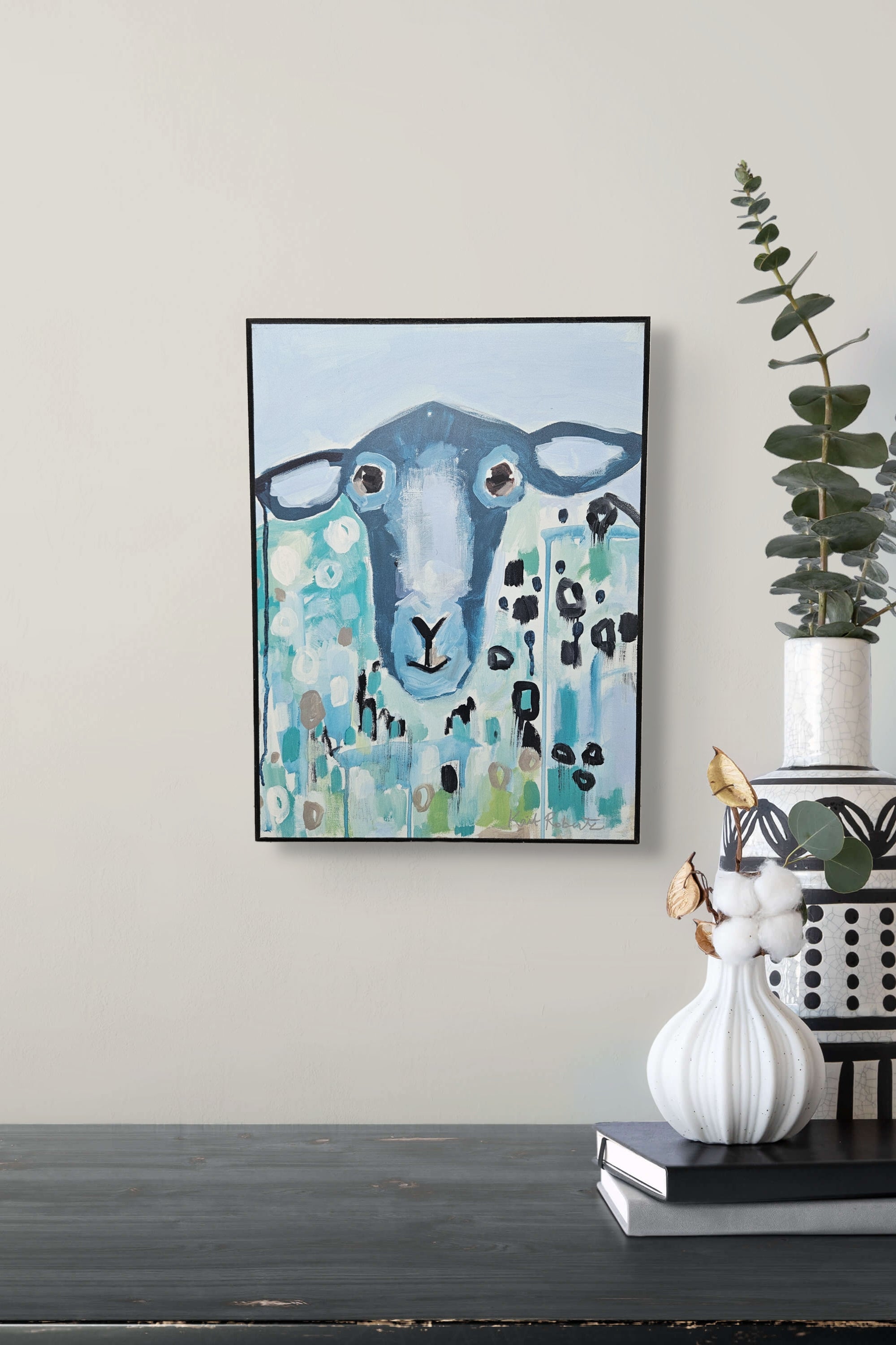 Colorful Signed Artwork on Board by Kait Roberts - "I'll Be Blue"