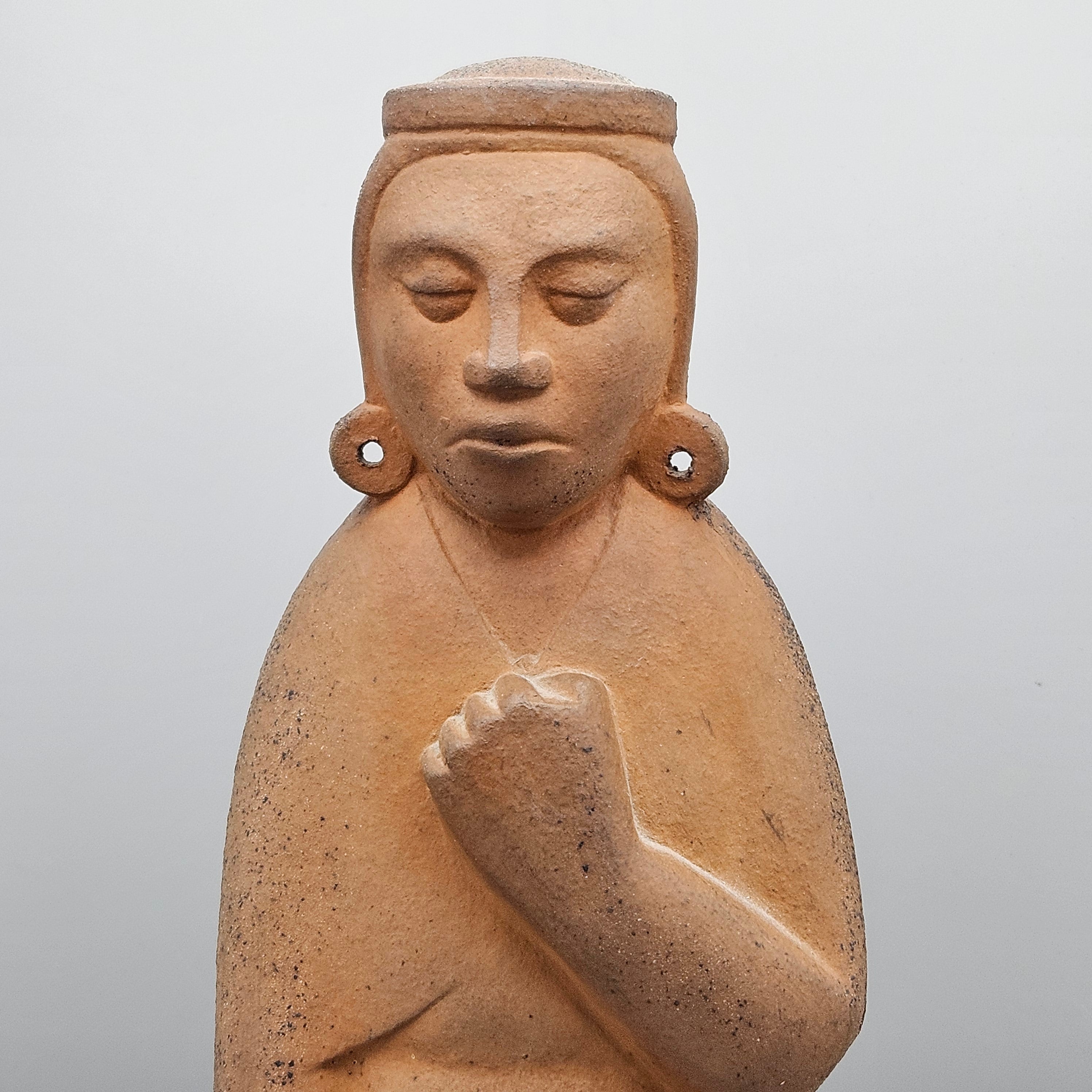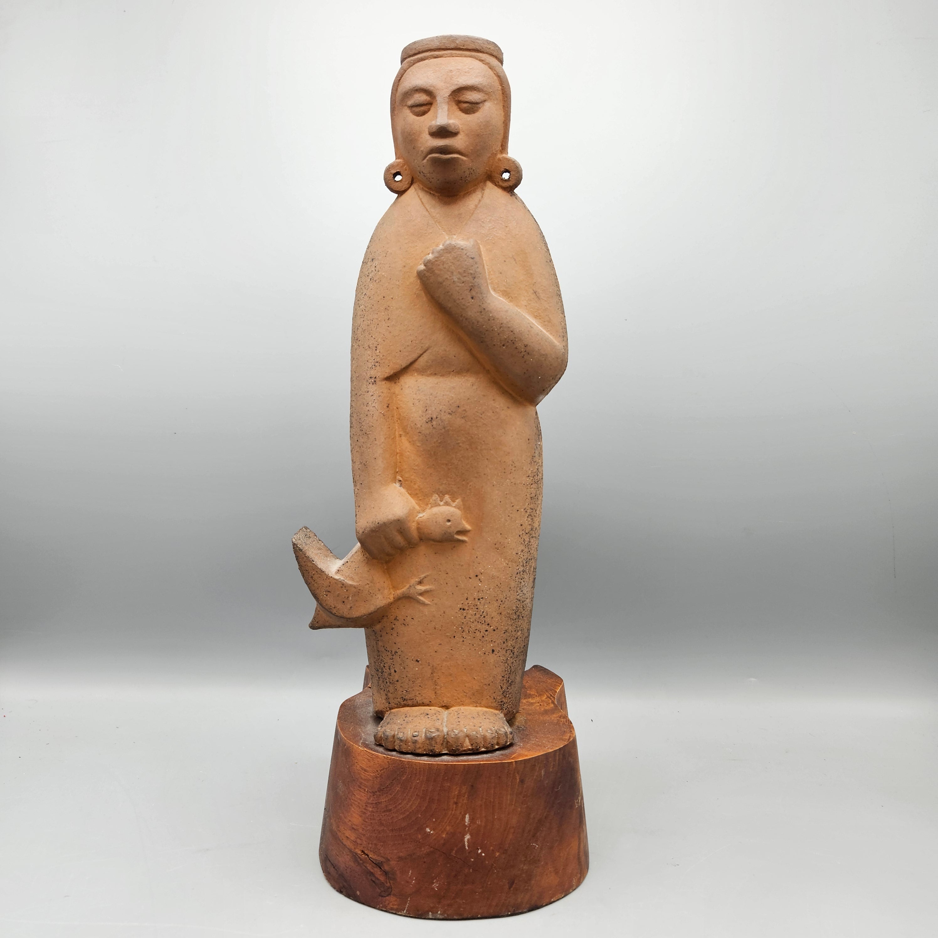 Contemporary Central American Terracotta Sculpture Woman with Chicken