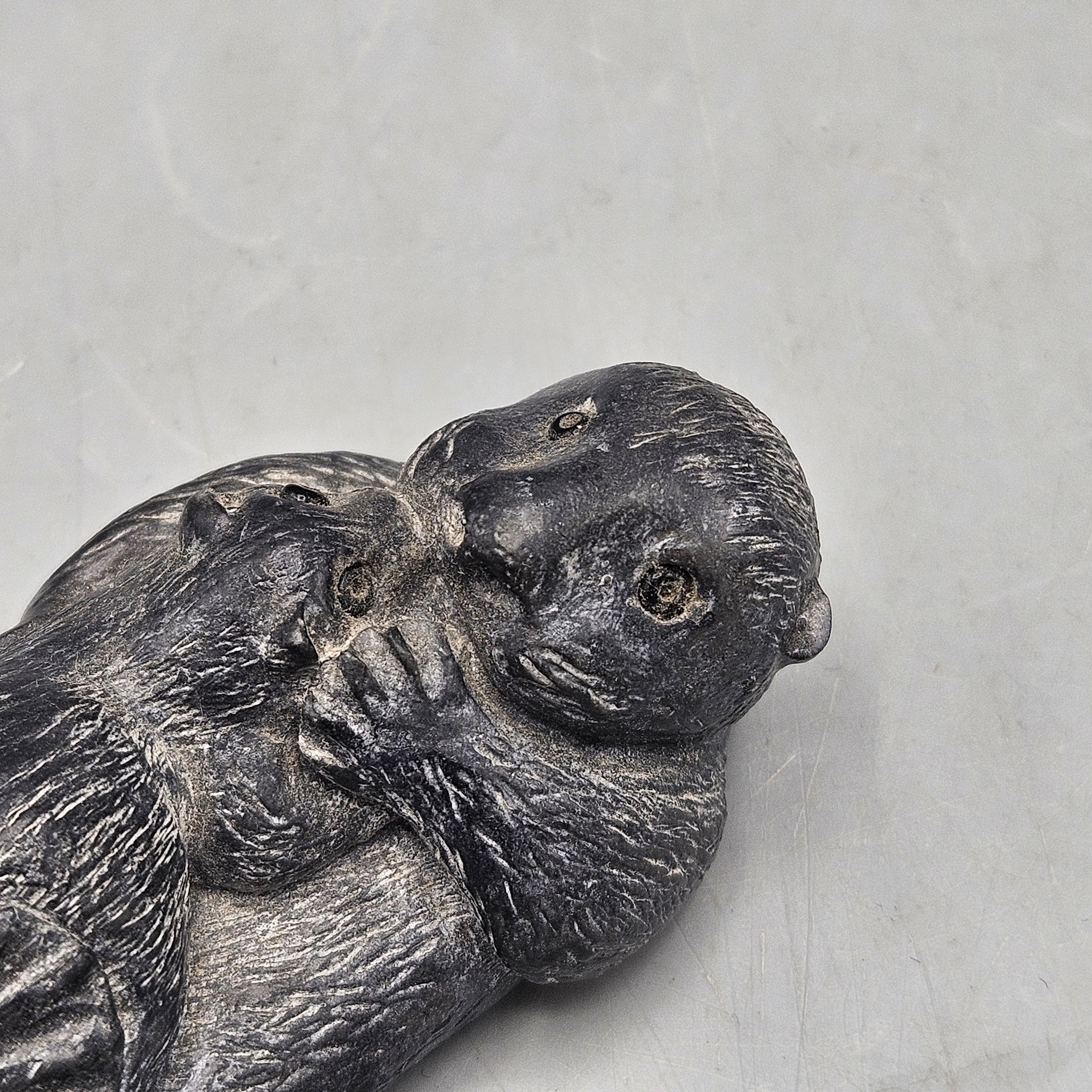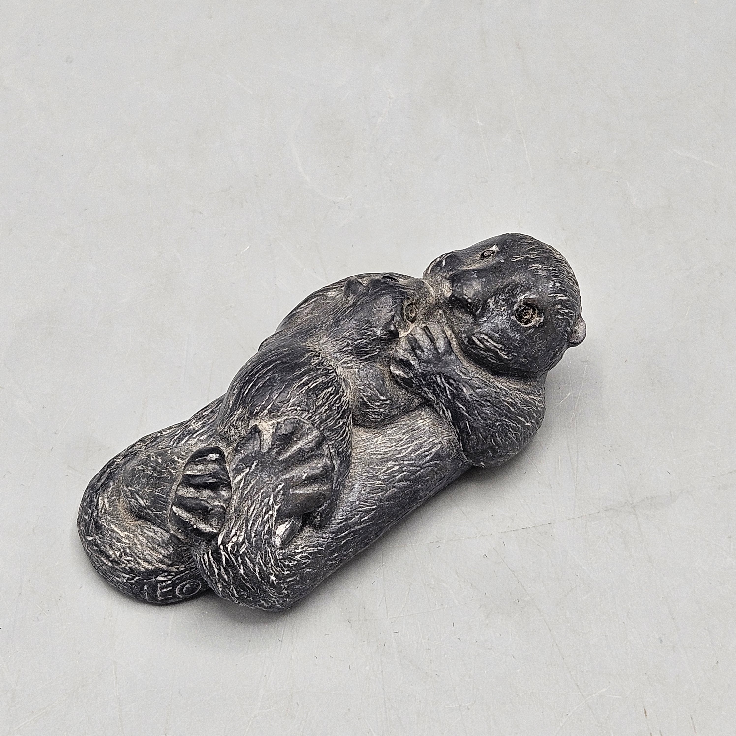 Edmund Wolf Inuit Children Otter and Pup Cast Stone Sculpture