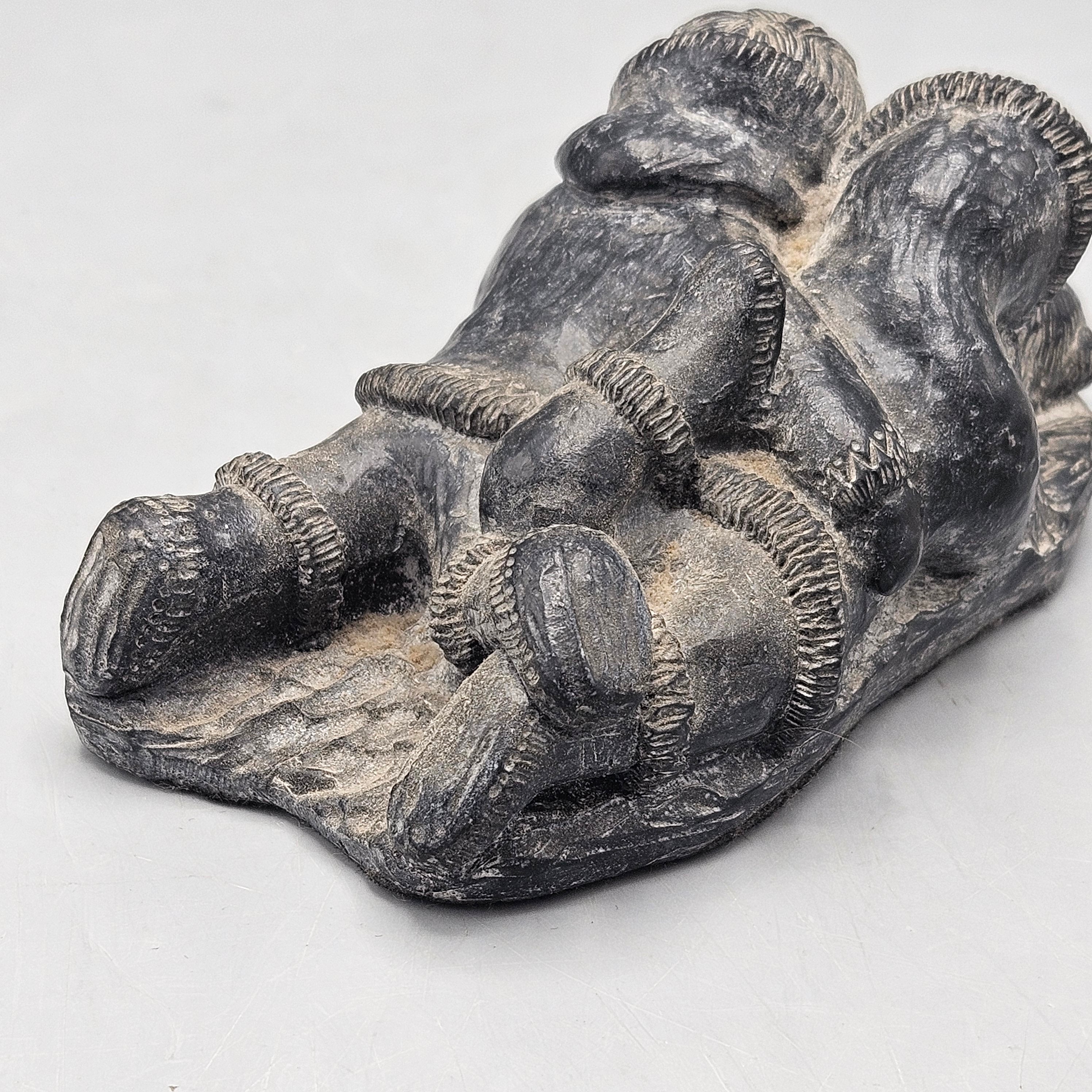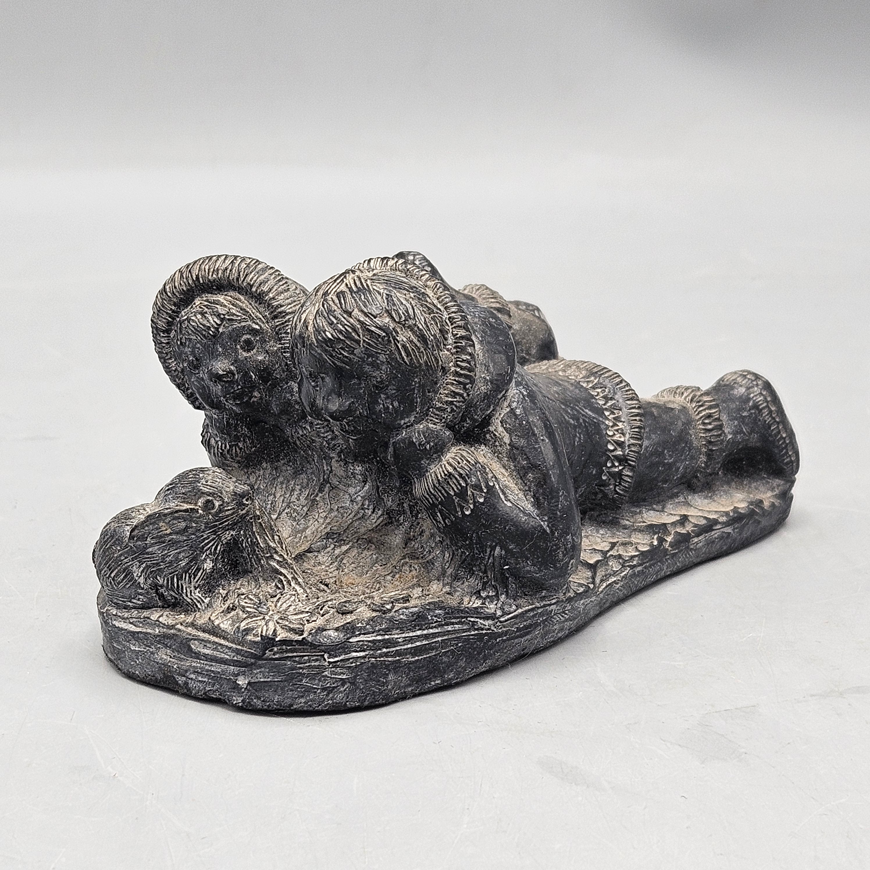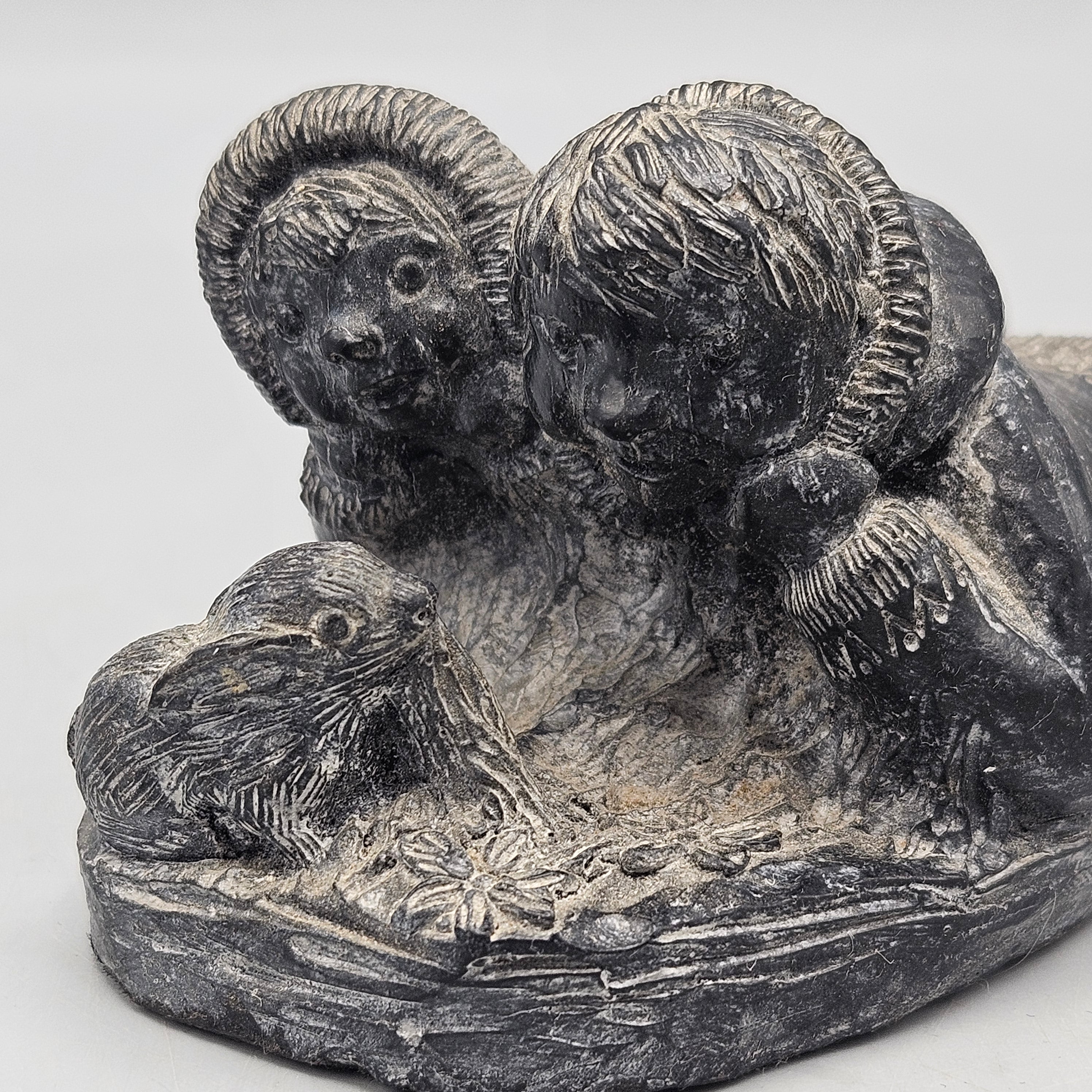 Edmund Wolf Inuit Children Cast Stone Sculpture