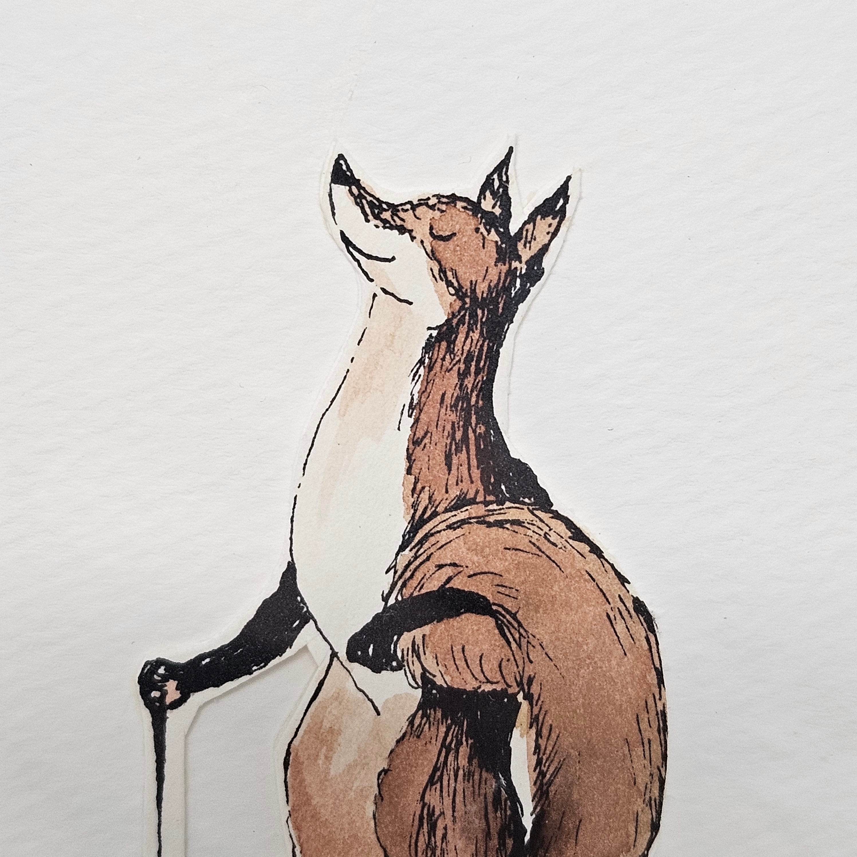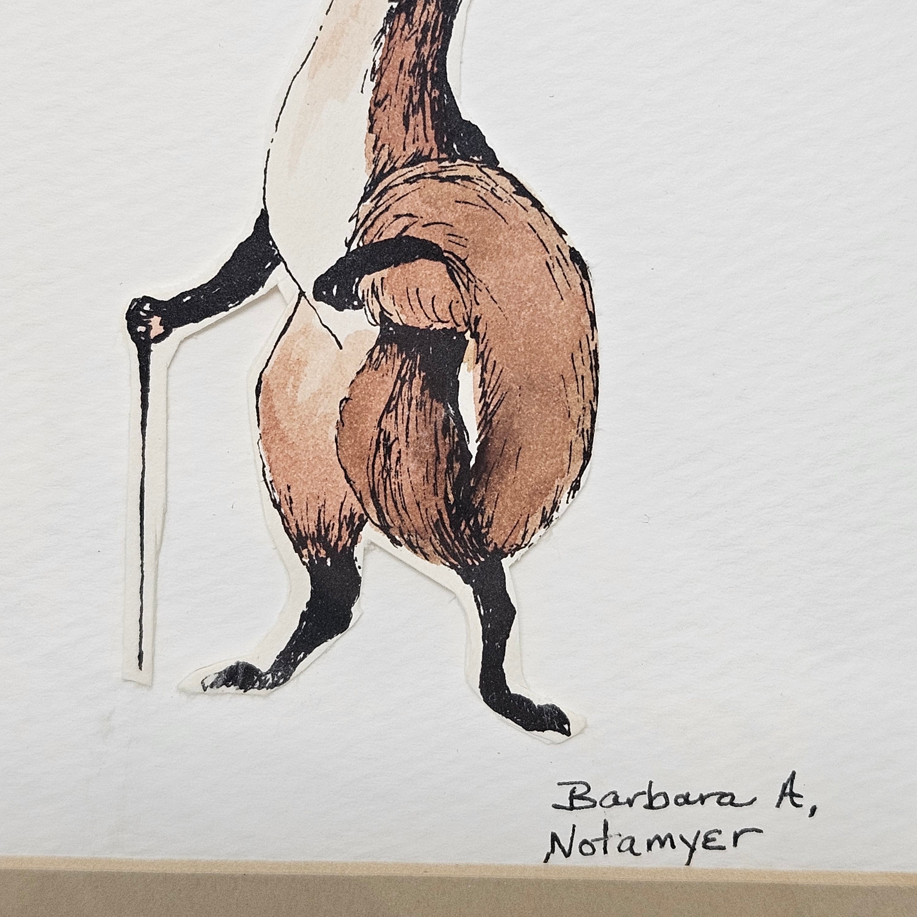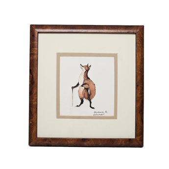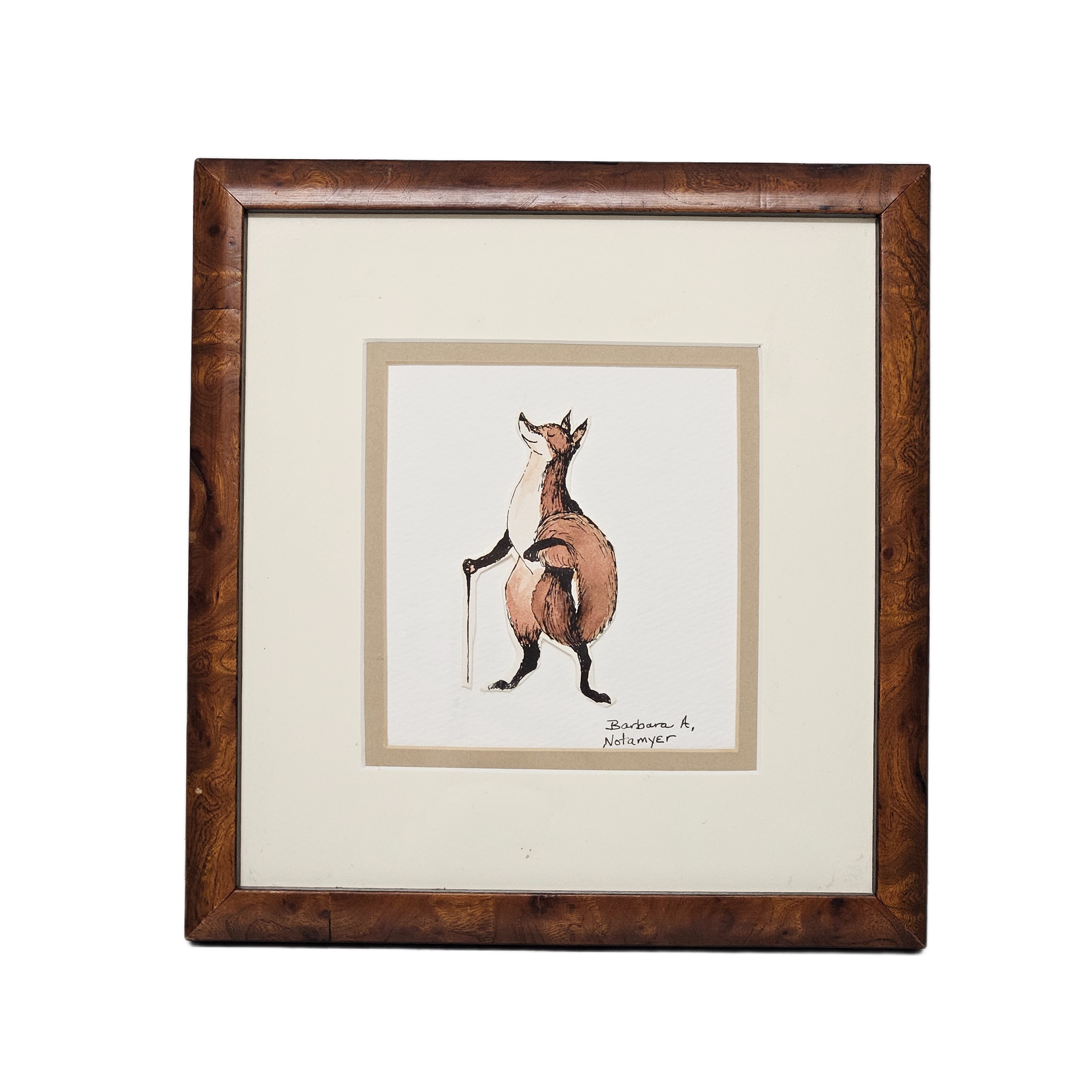 Framed Painting of Fox Holding a Walking Stick Signed by Barbara A. Notamyer