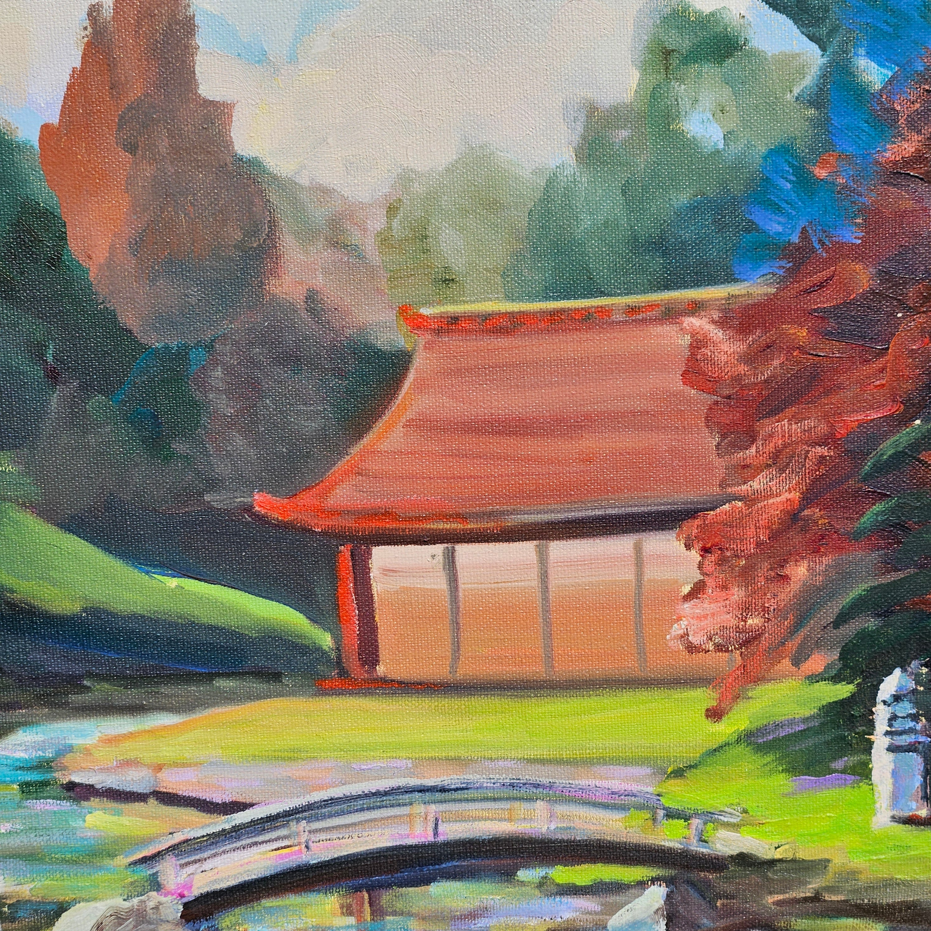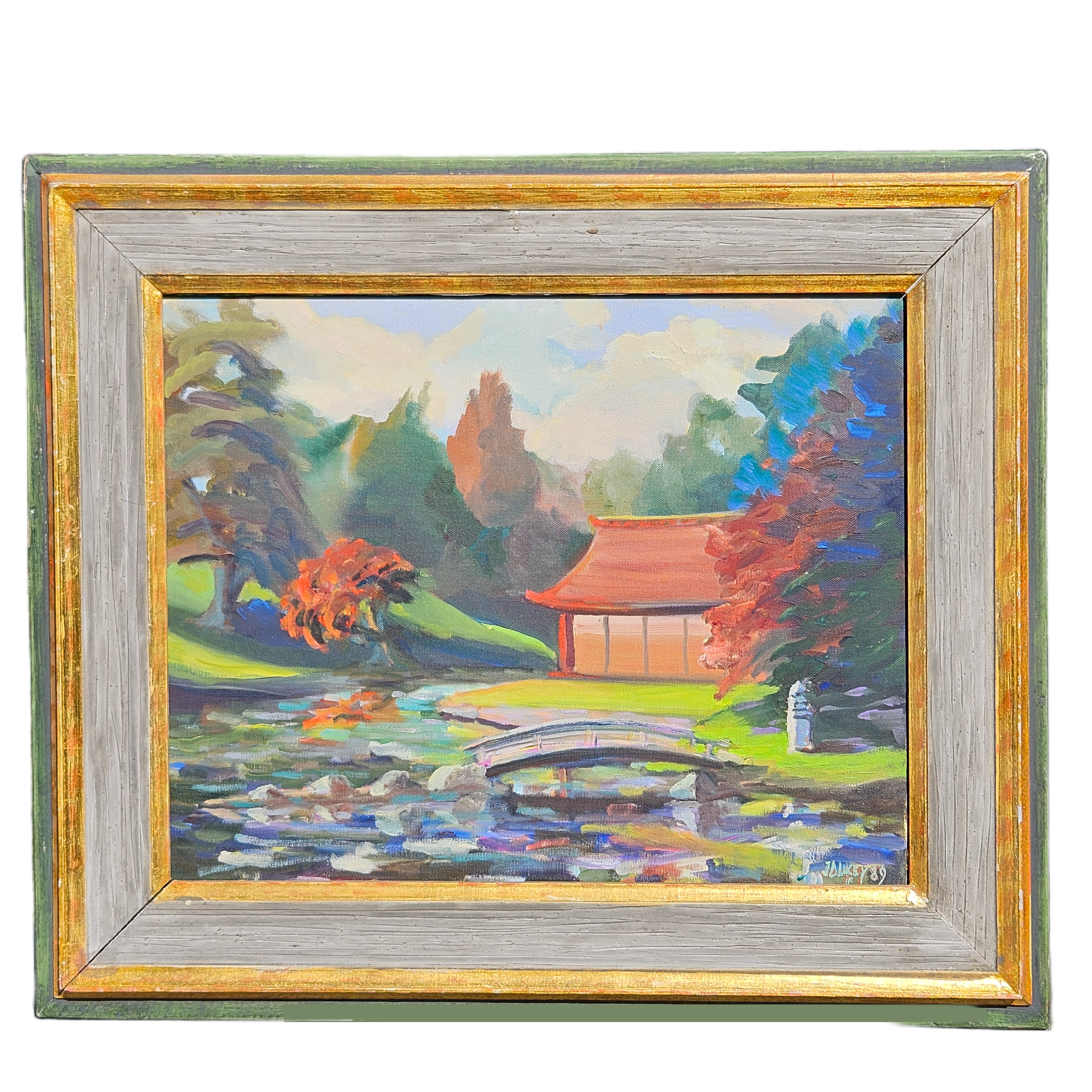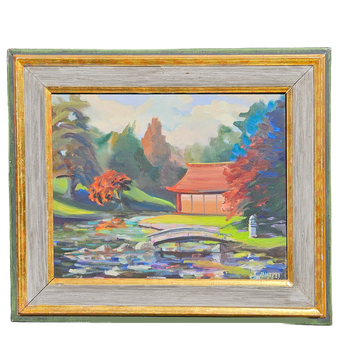 John D. Lucey, Jr., “Jack” (American 1930-2025) Oil on Canvas Painting of Japanese Tea House Philadelphia