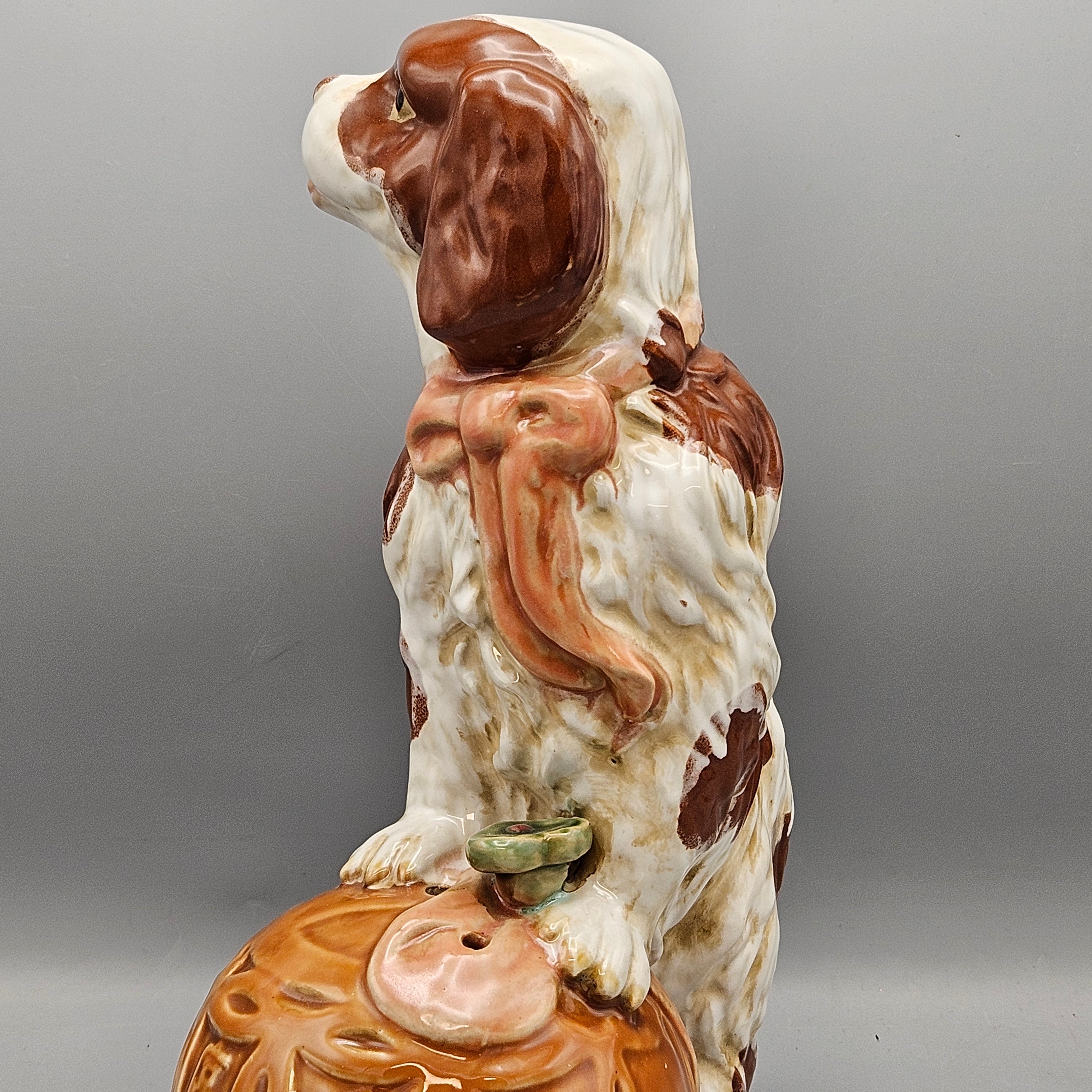Large King Charles Spaniel Dog with Ball Figurine