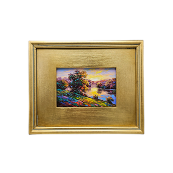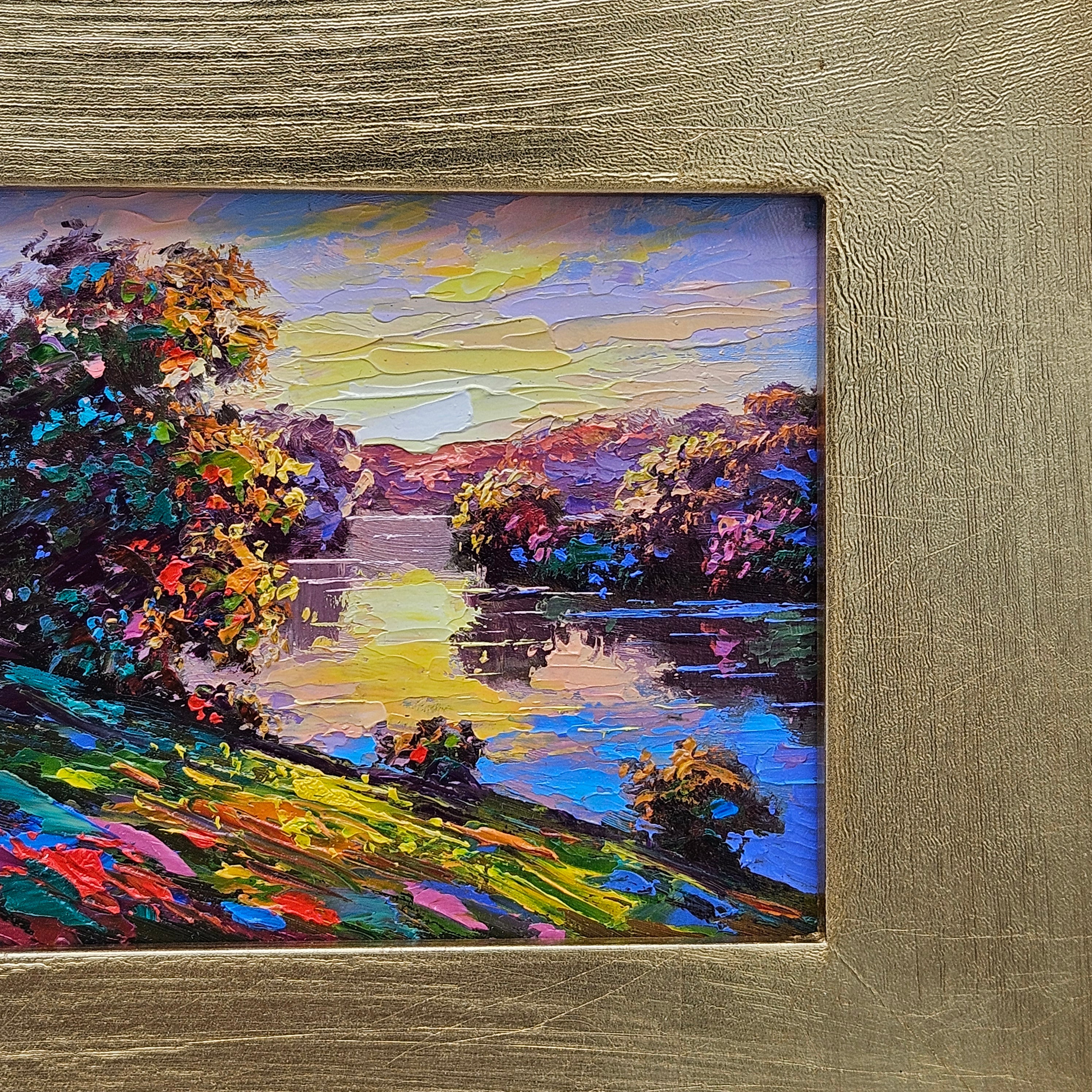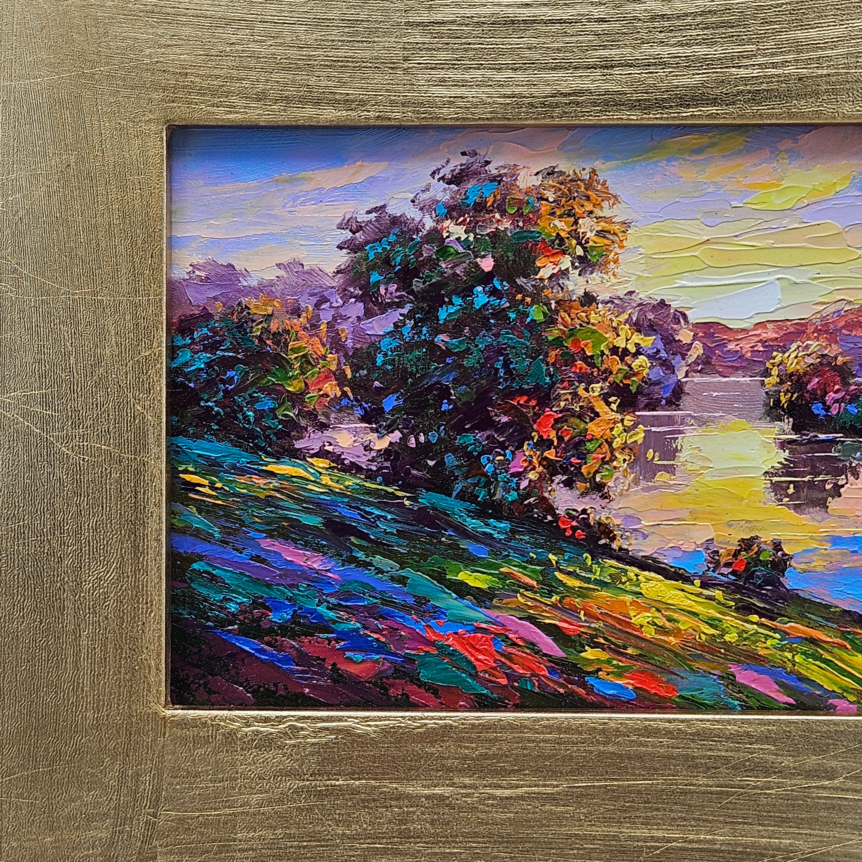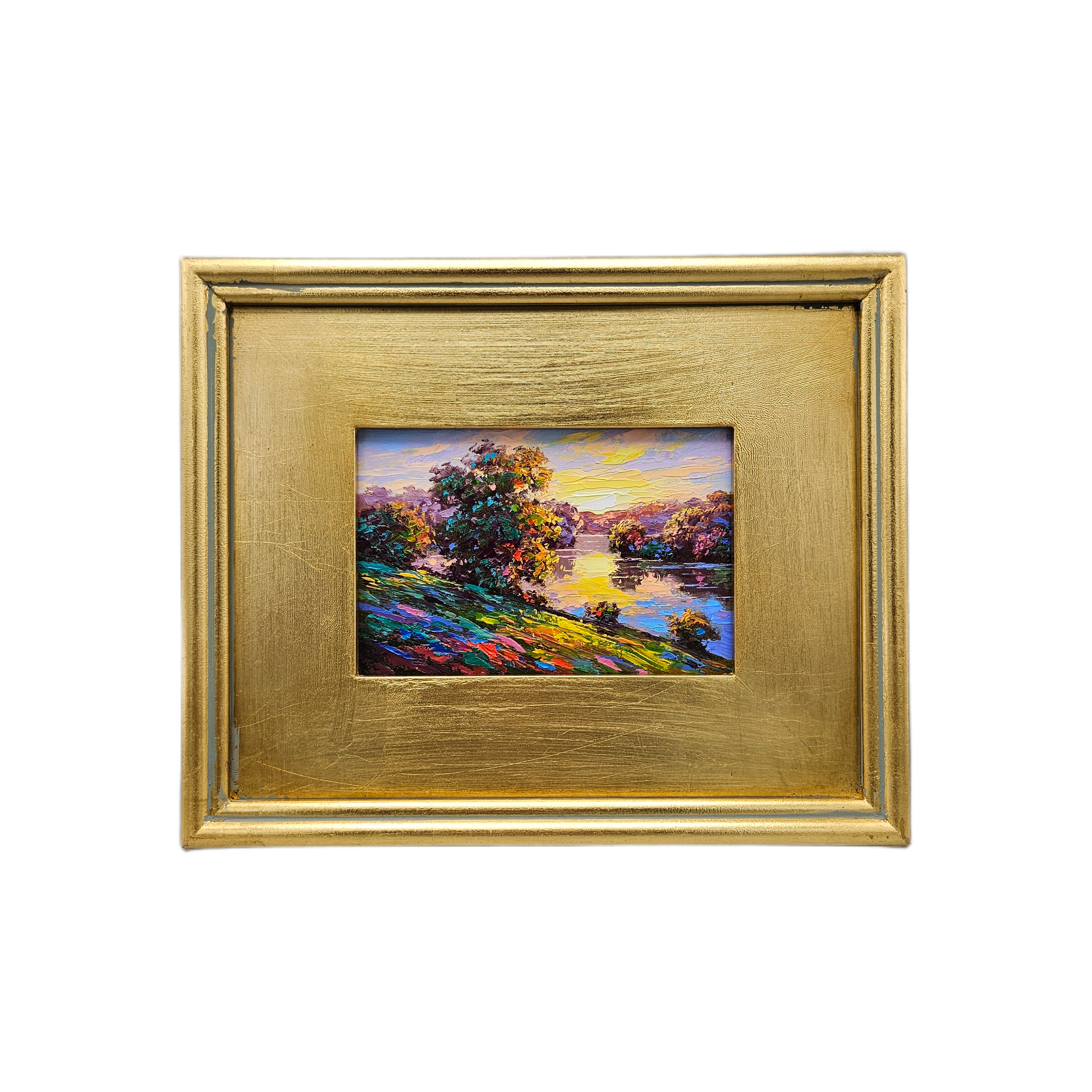 Original Landscape Painting with Purples in Gold Frame - Stream and Trees