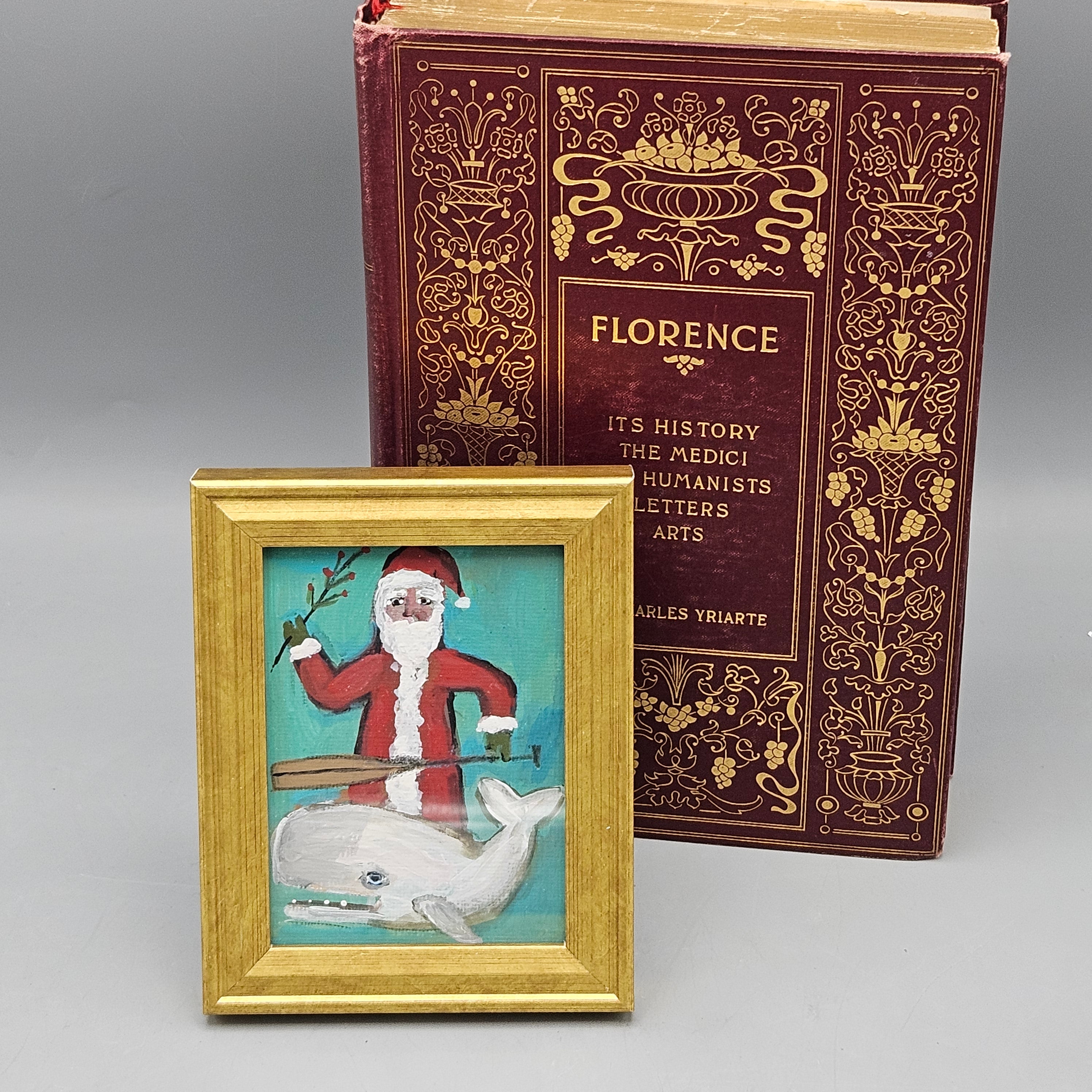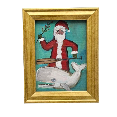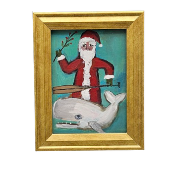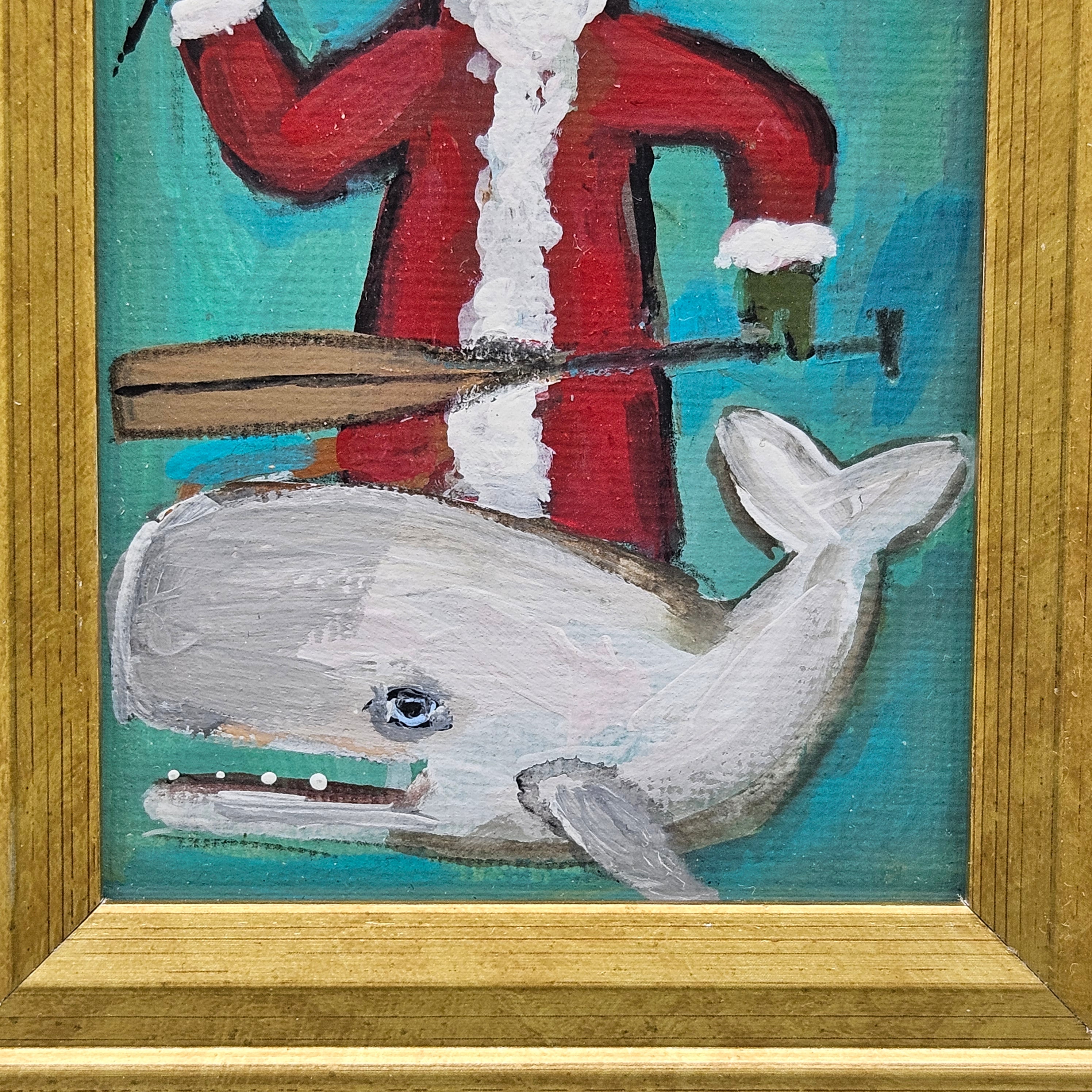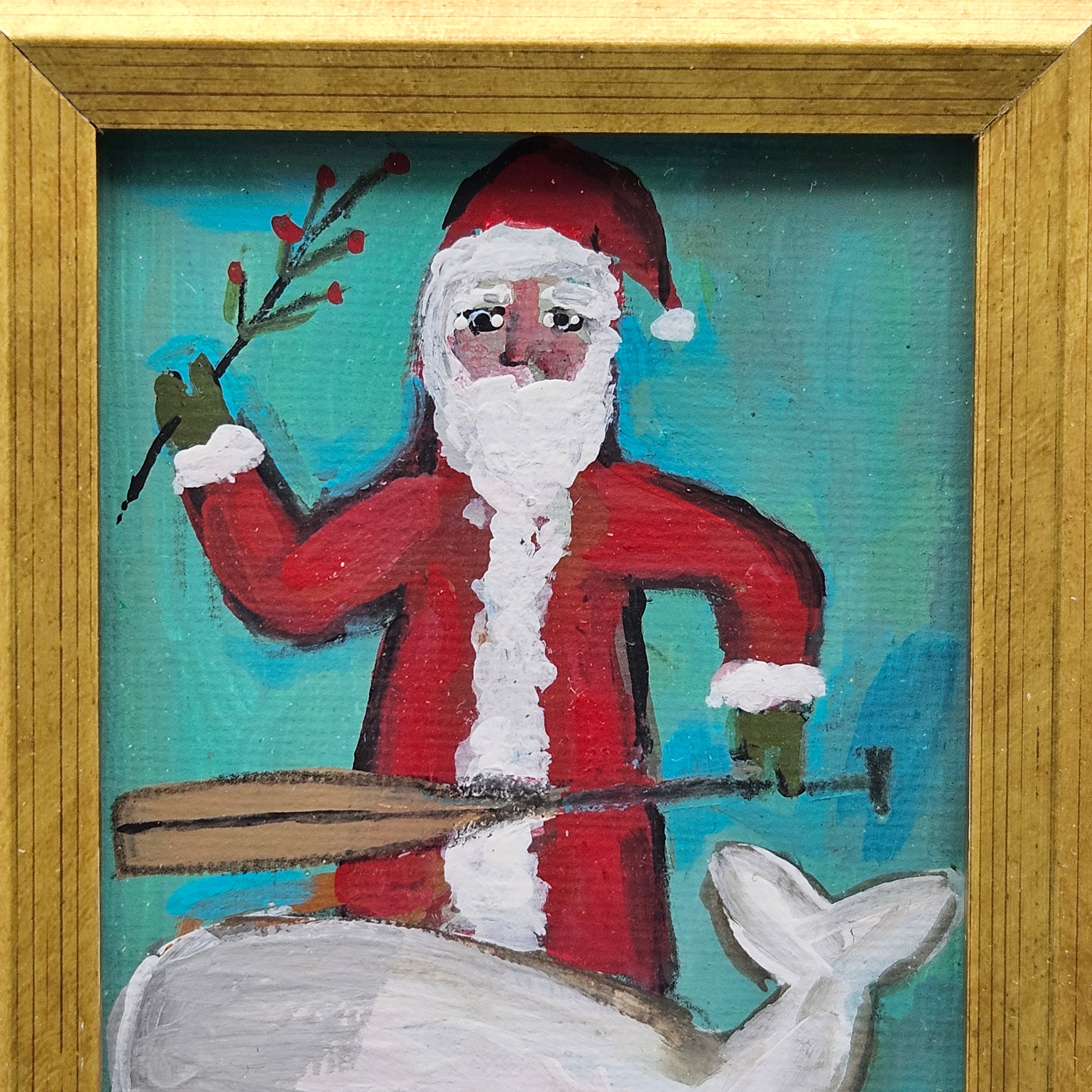 Original Miniature Framed New England Folk Art Painting of Santa and Whale