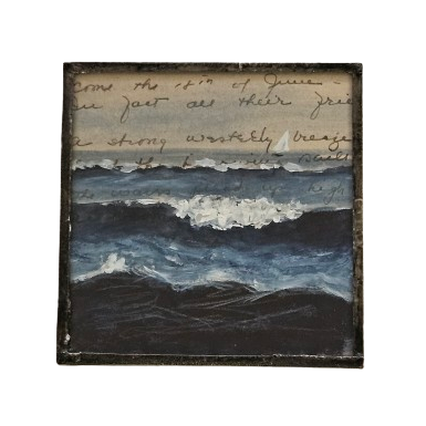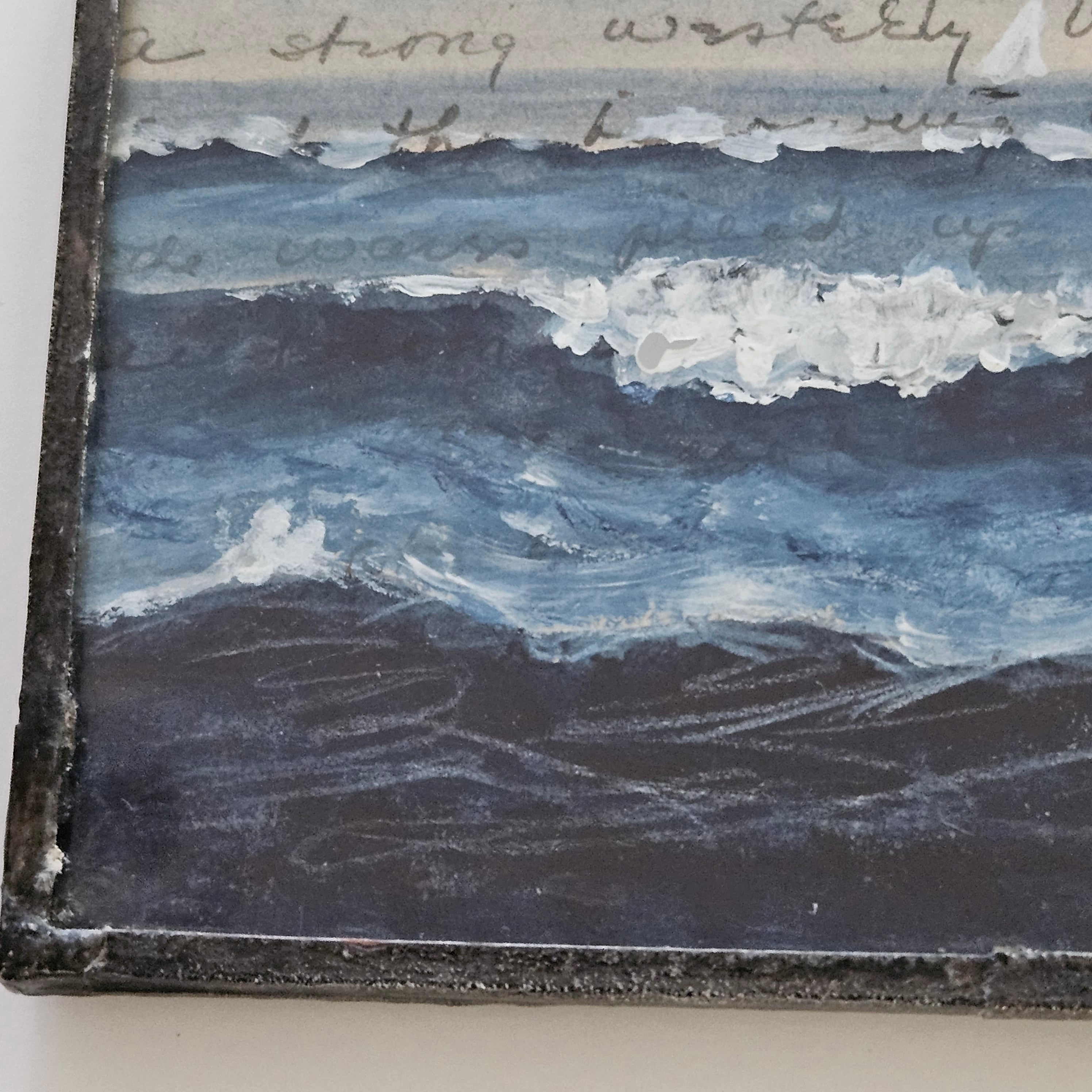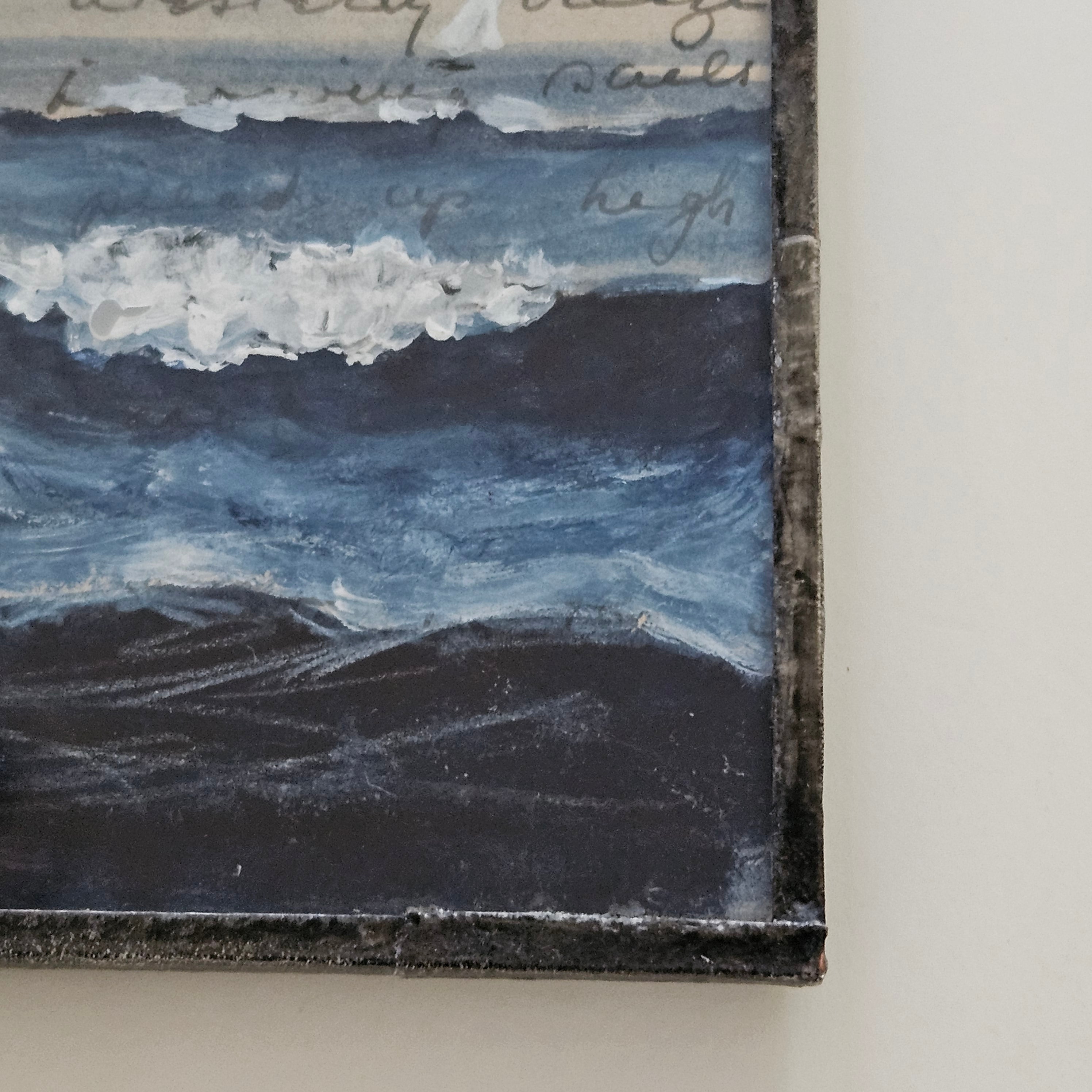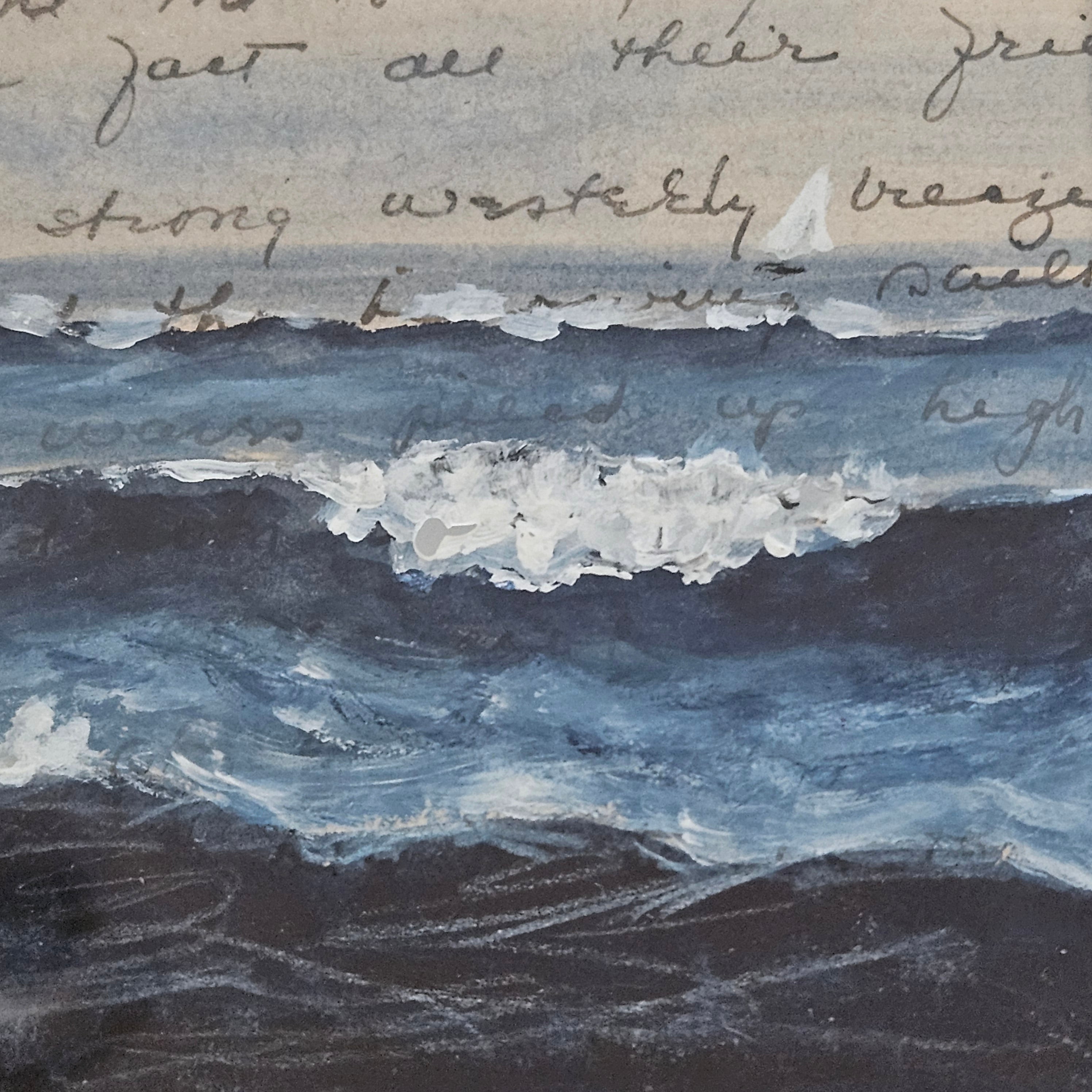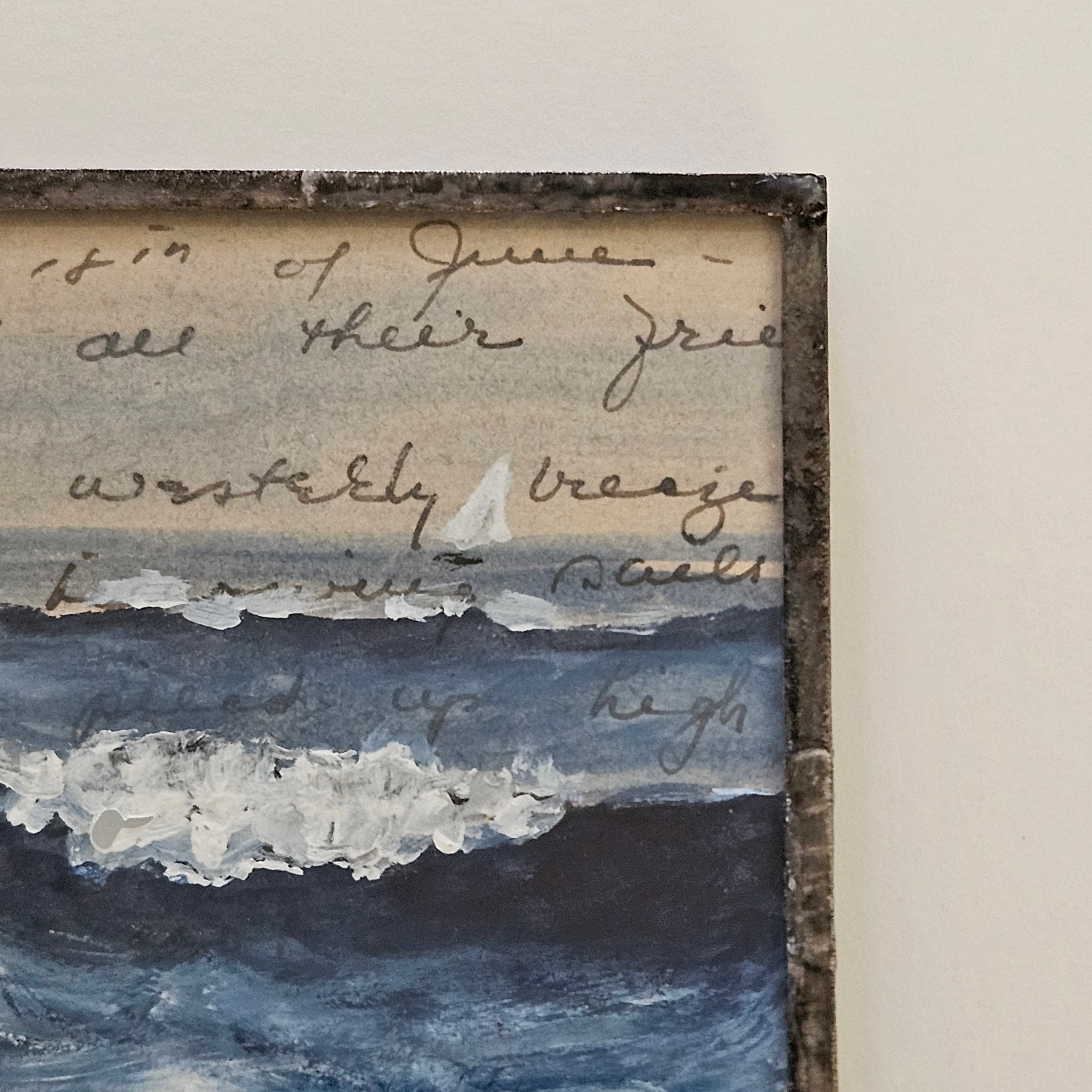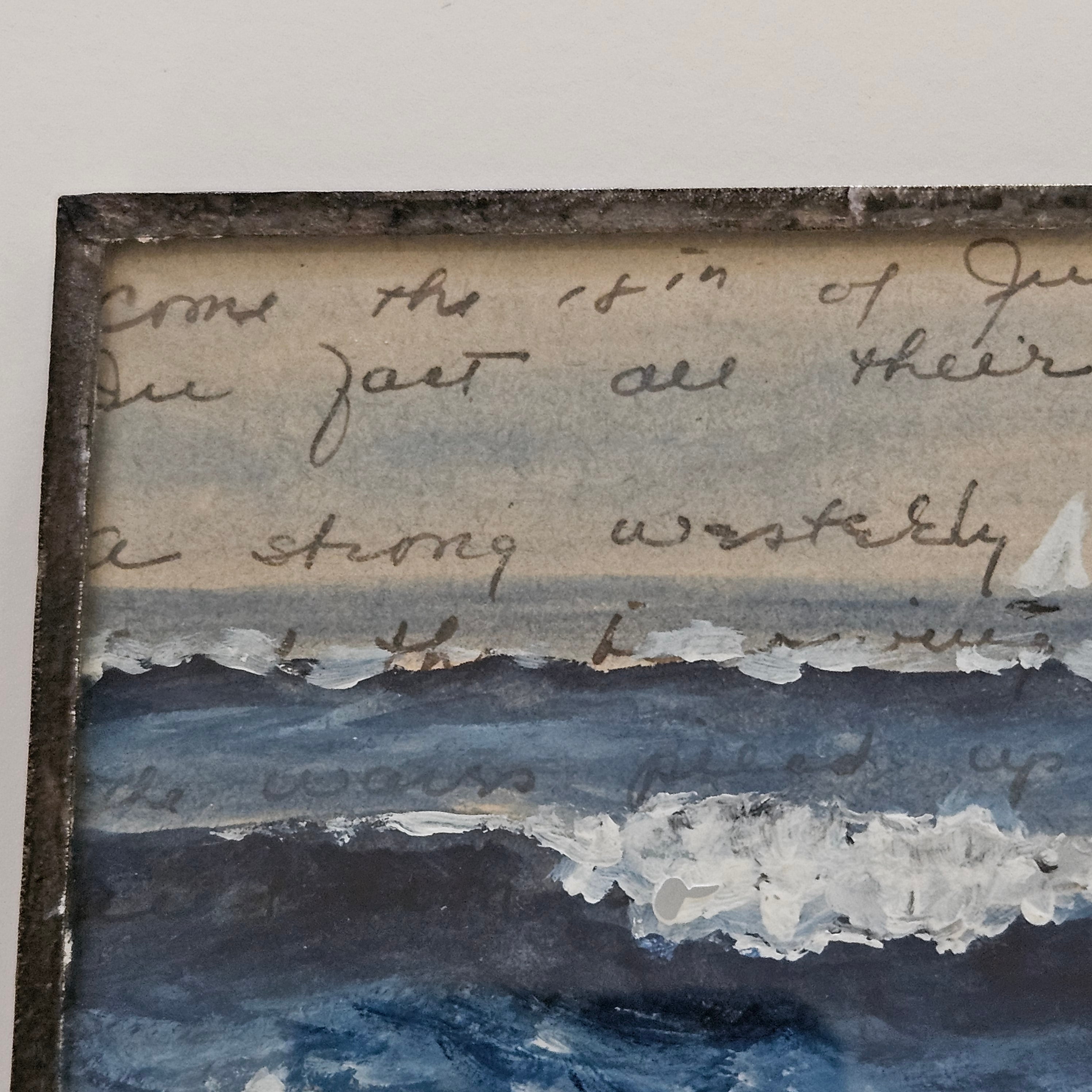 Original New England Ocean & Sailboat Watercolor Gouache Painting on Antique Print Framed Under Glass