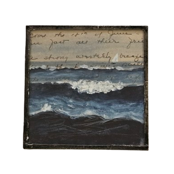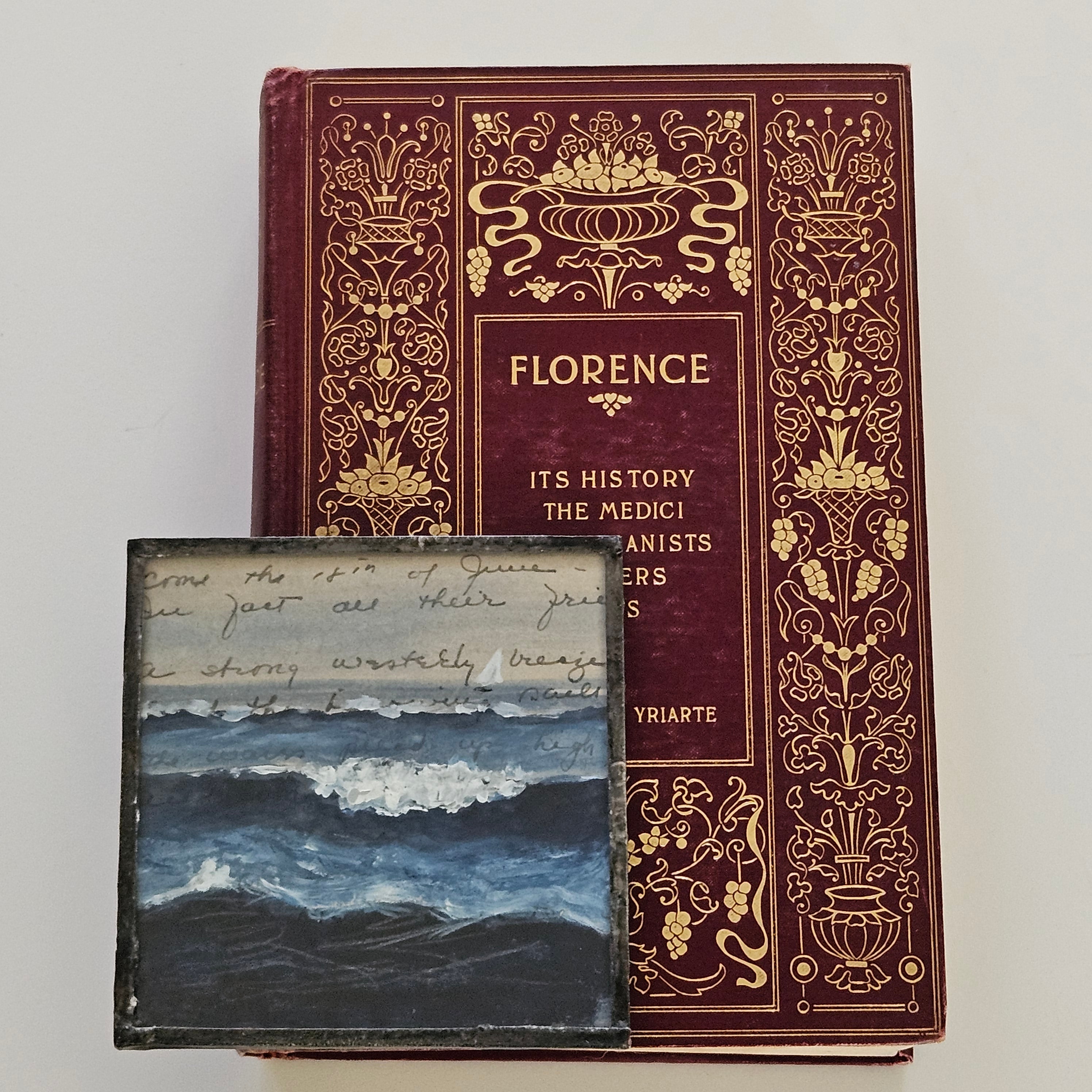 • This is an original painting that was done on antique book pages, they were then framed under glass and framed in tin.