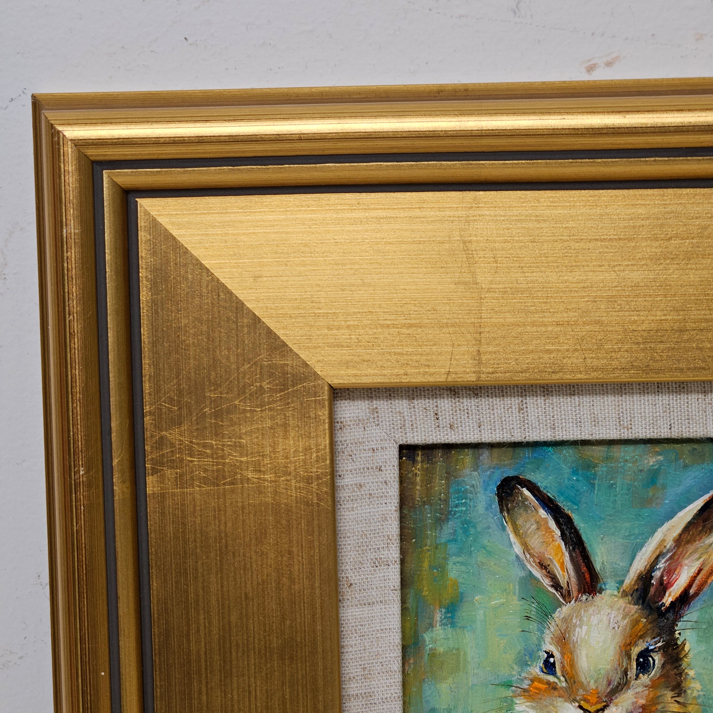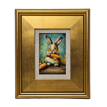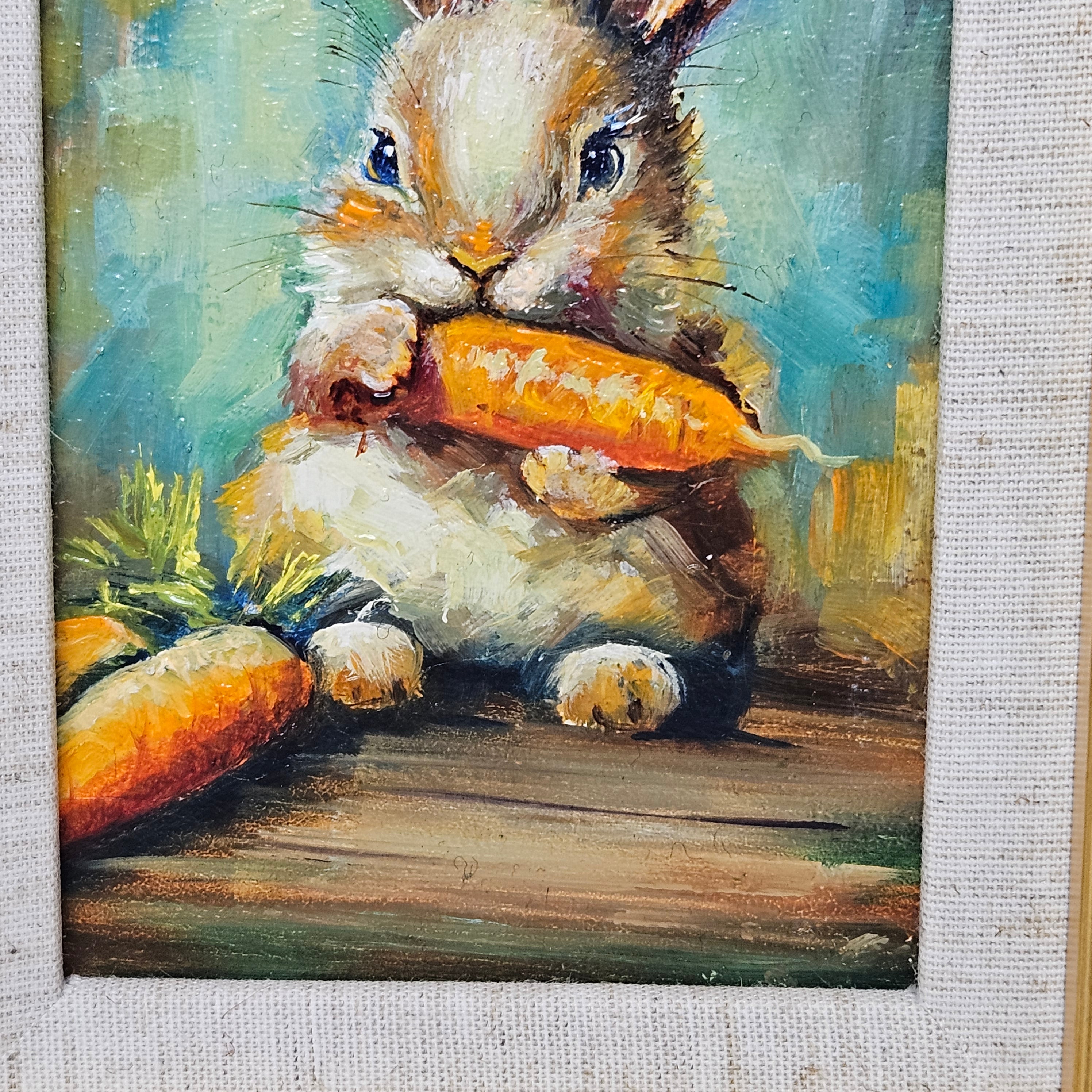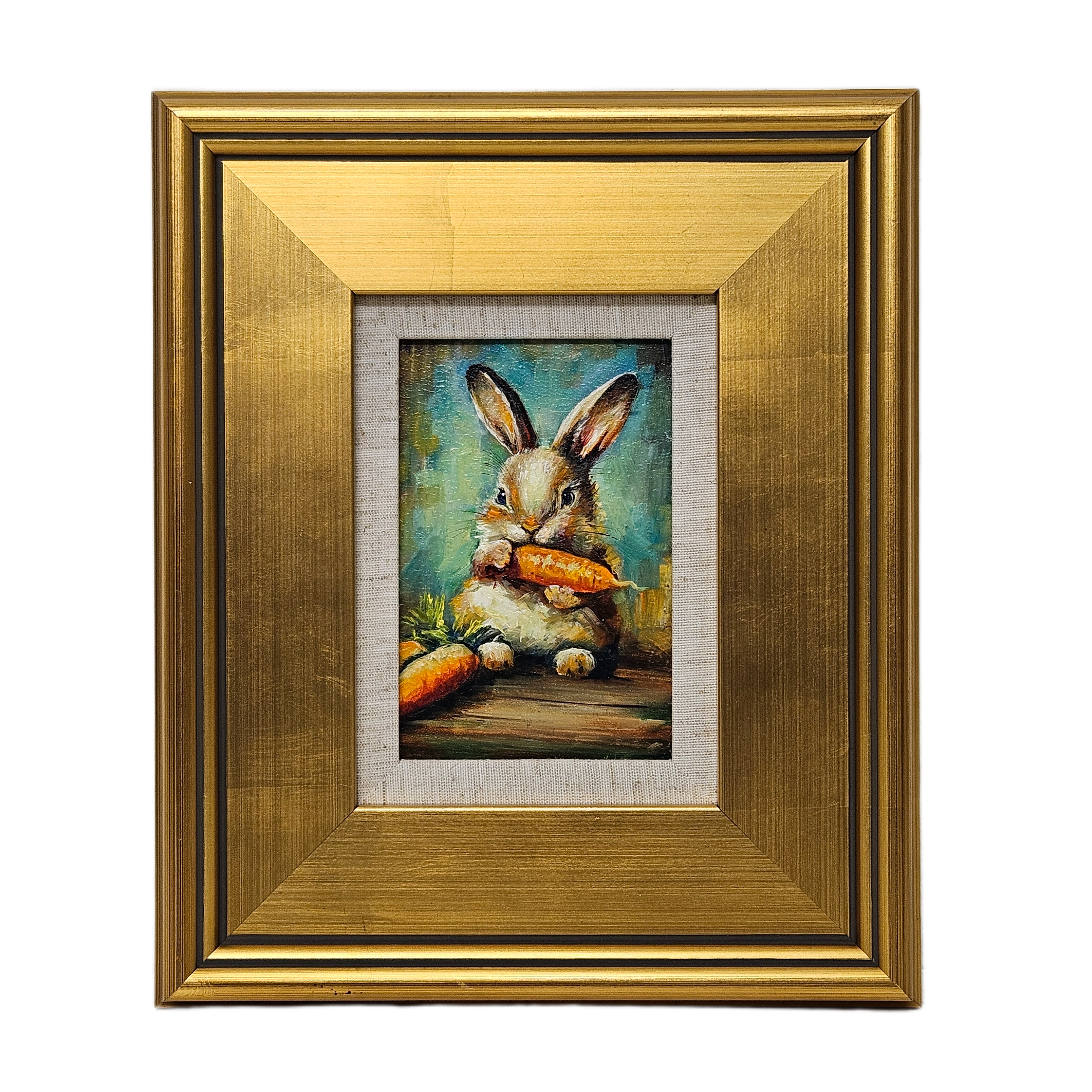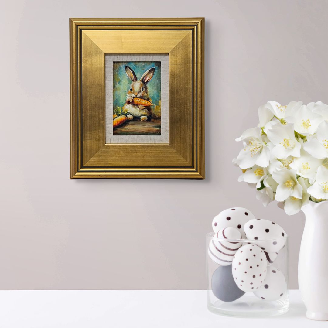 Original Painting of Bunny Eating Carrot in Gold Frame