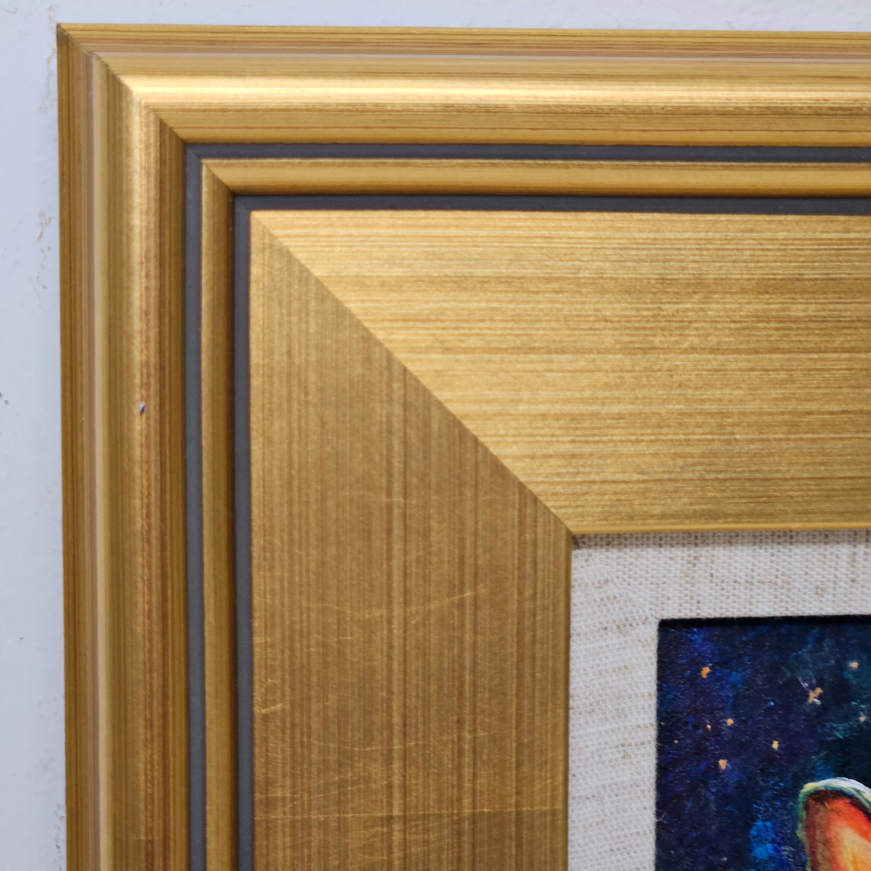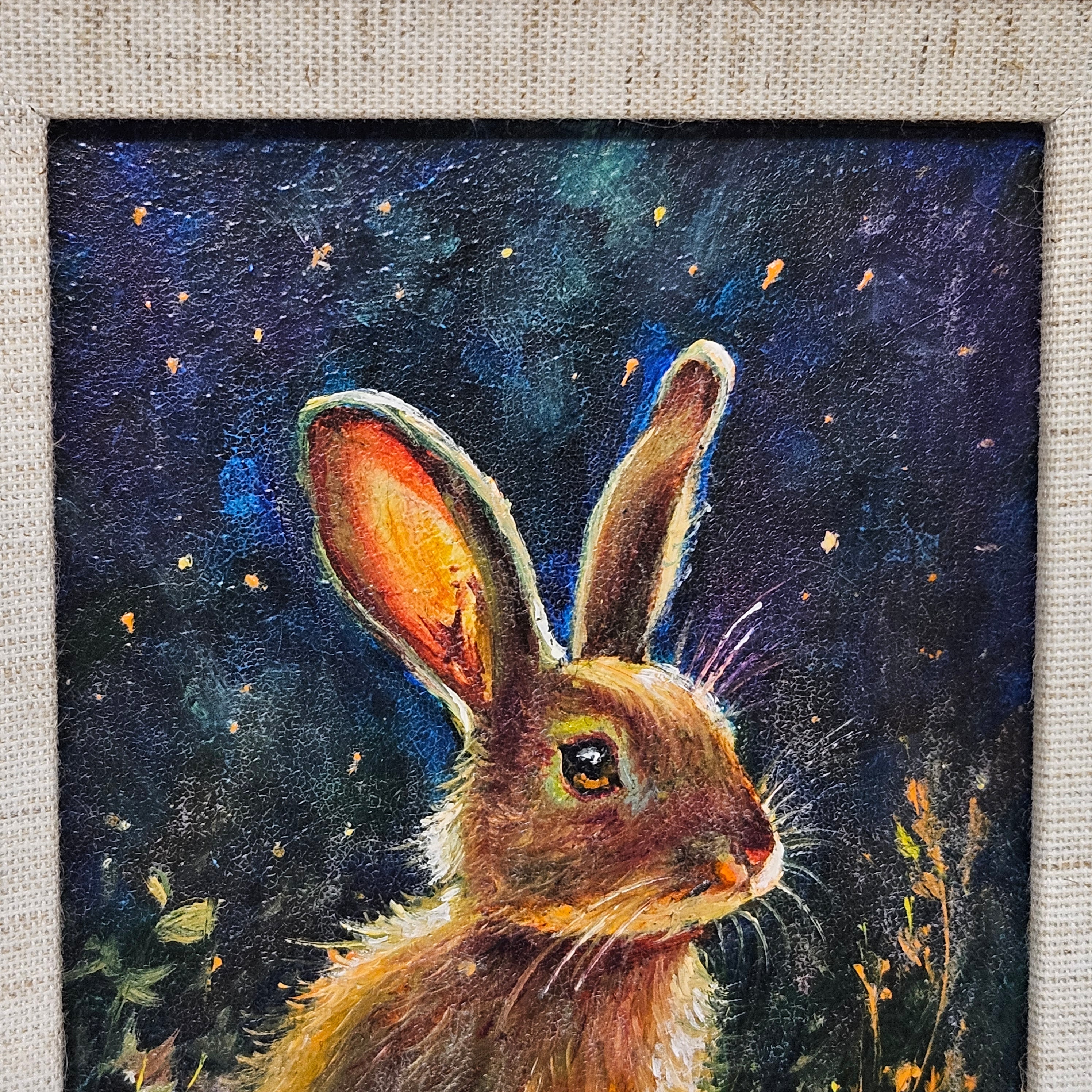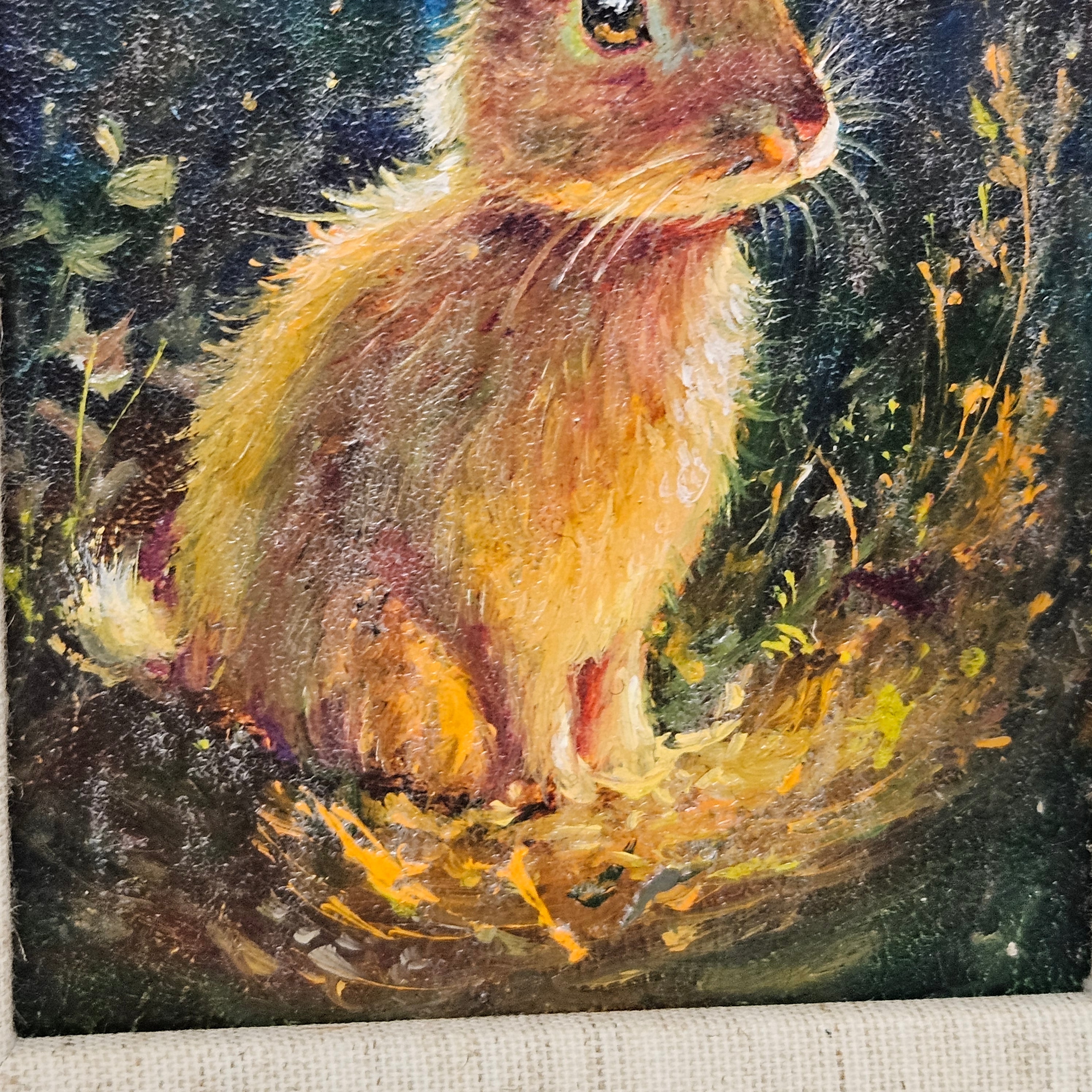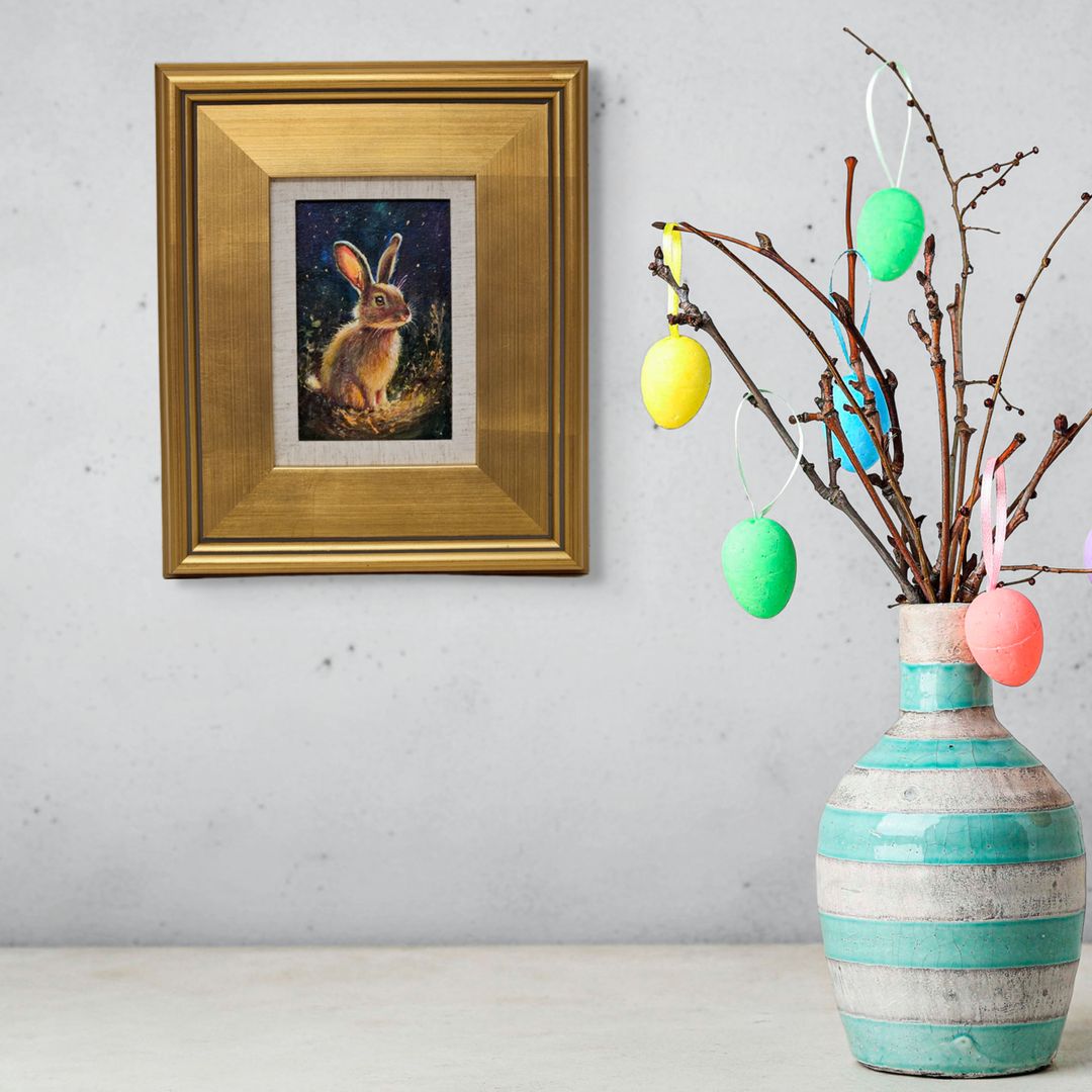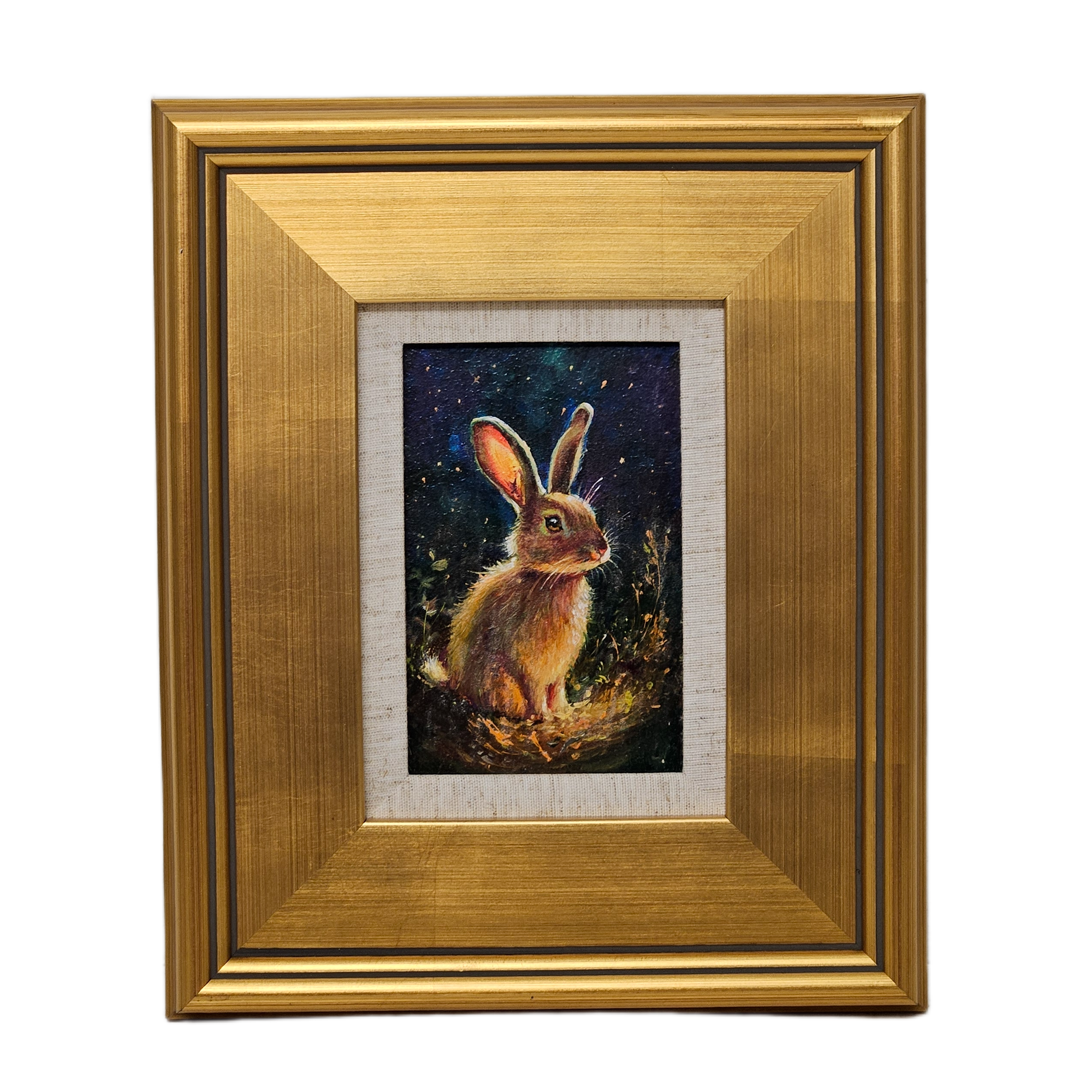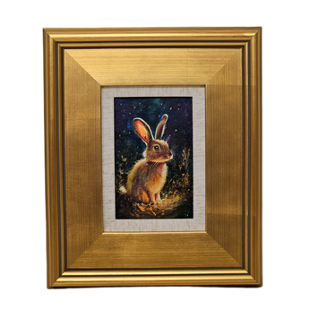 Original Painting of Bunny in Forest in Gold Frame