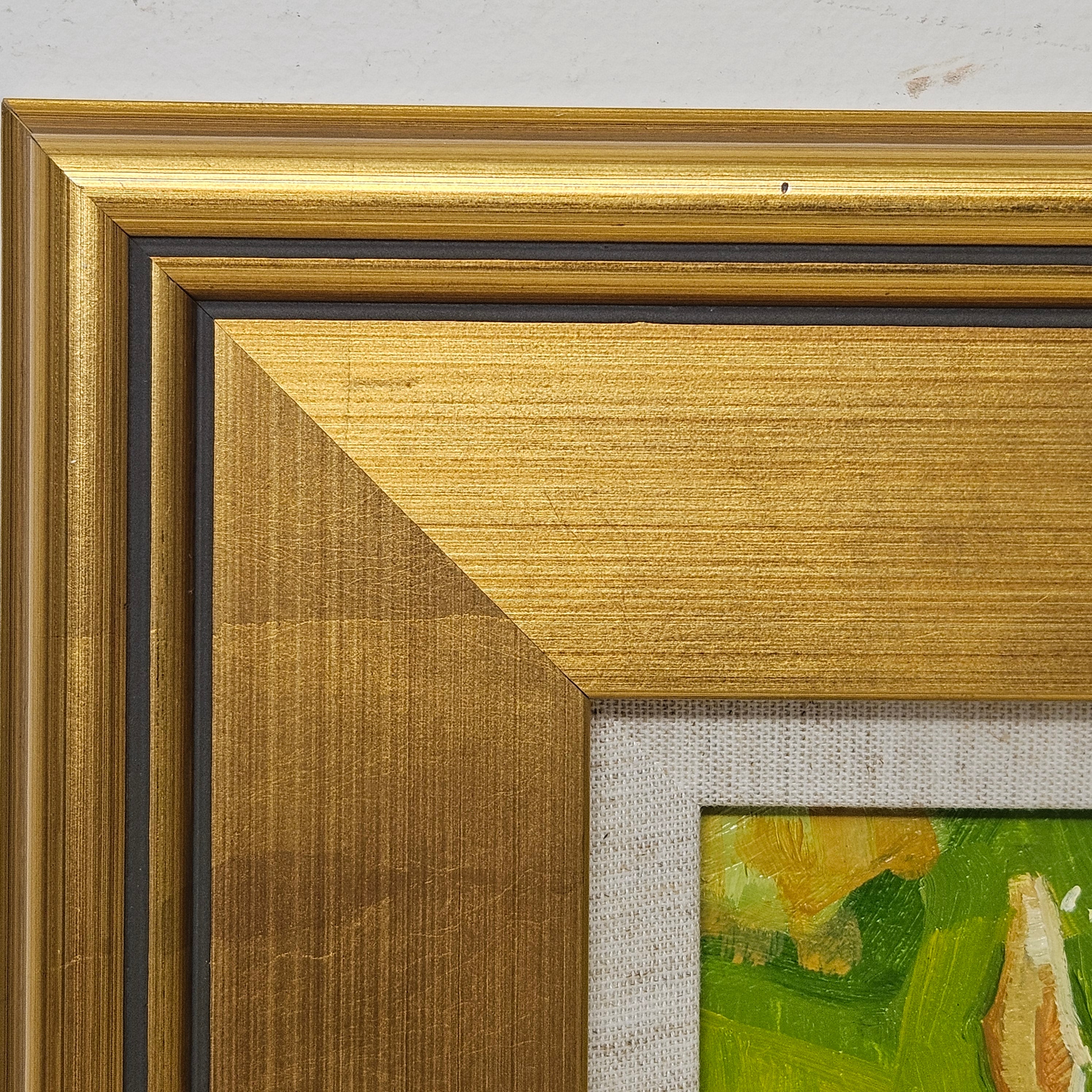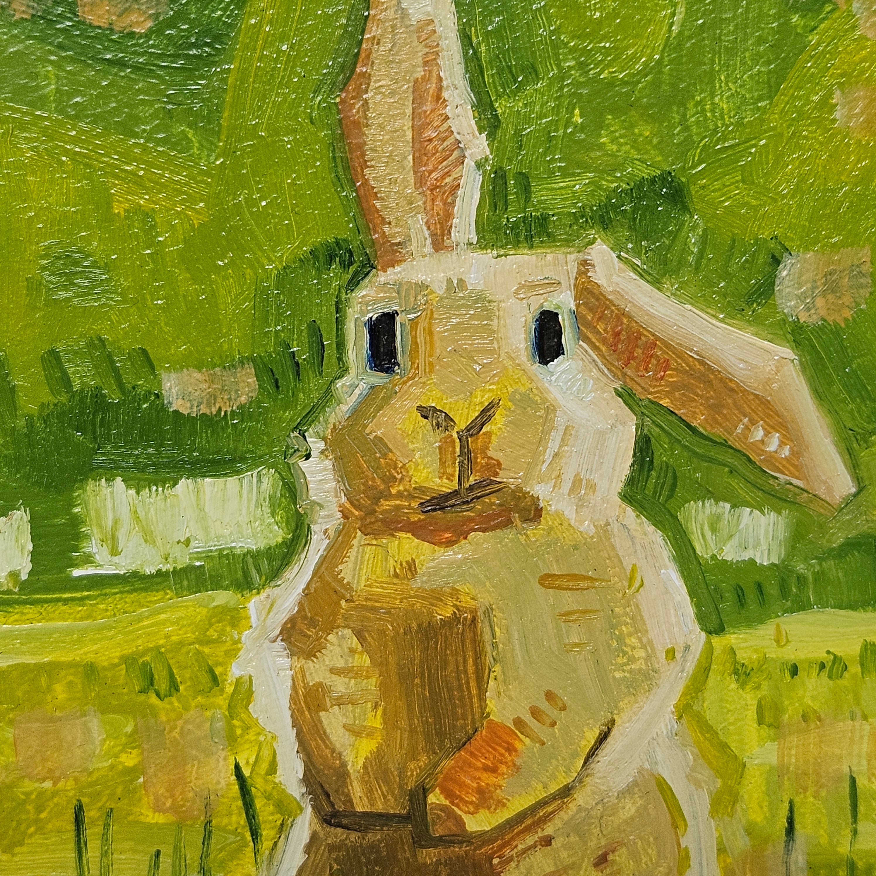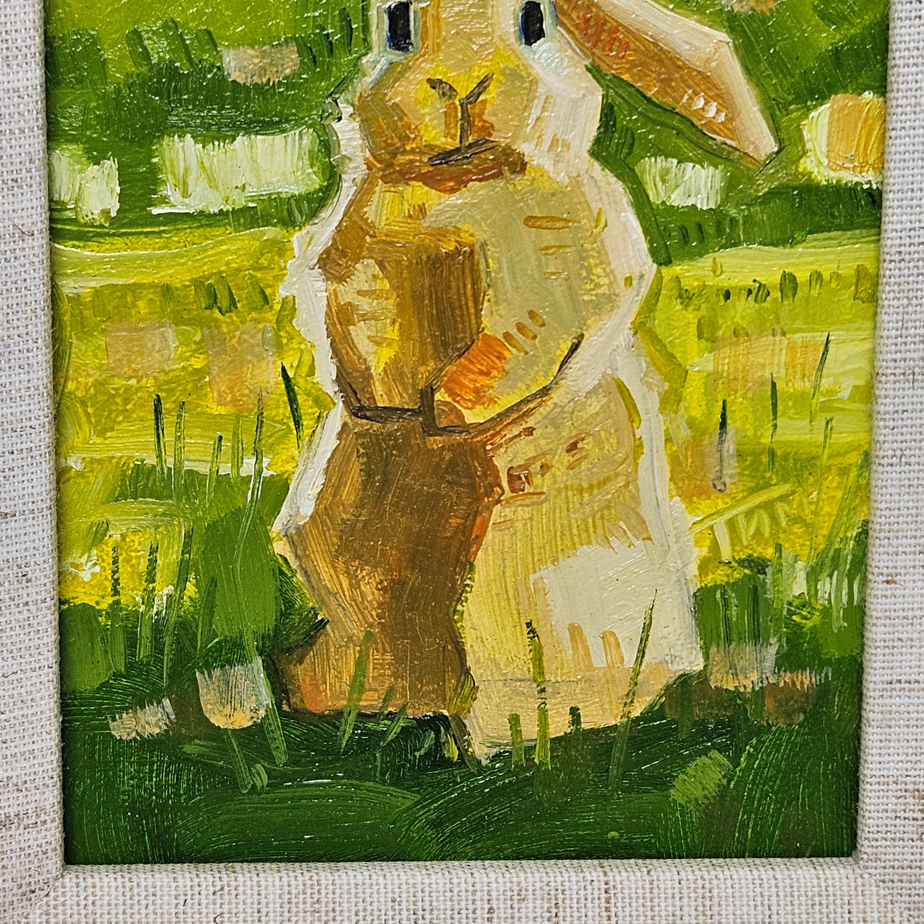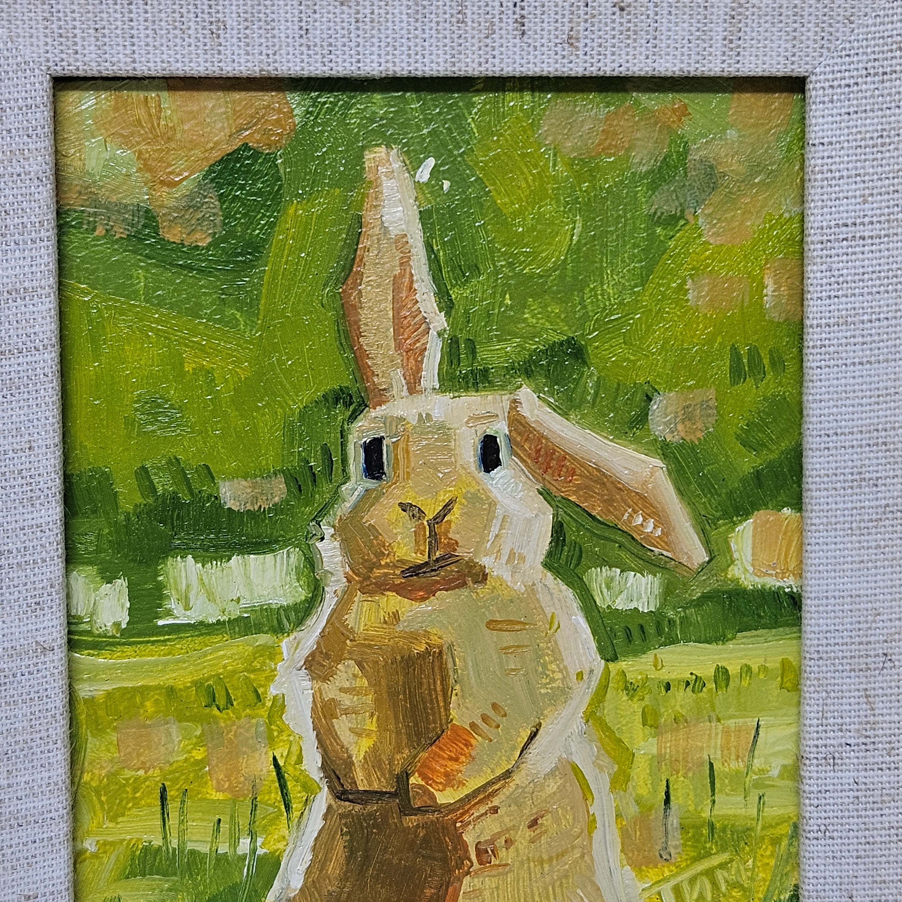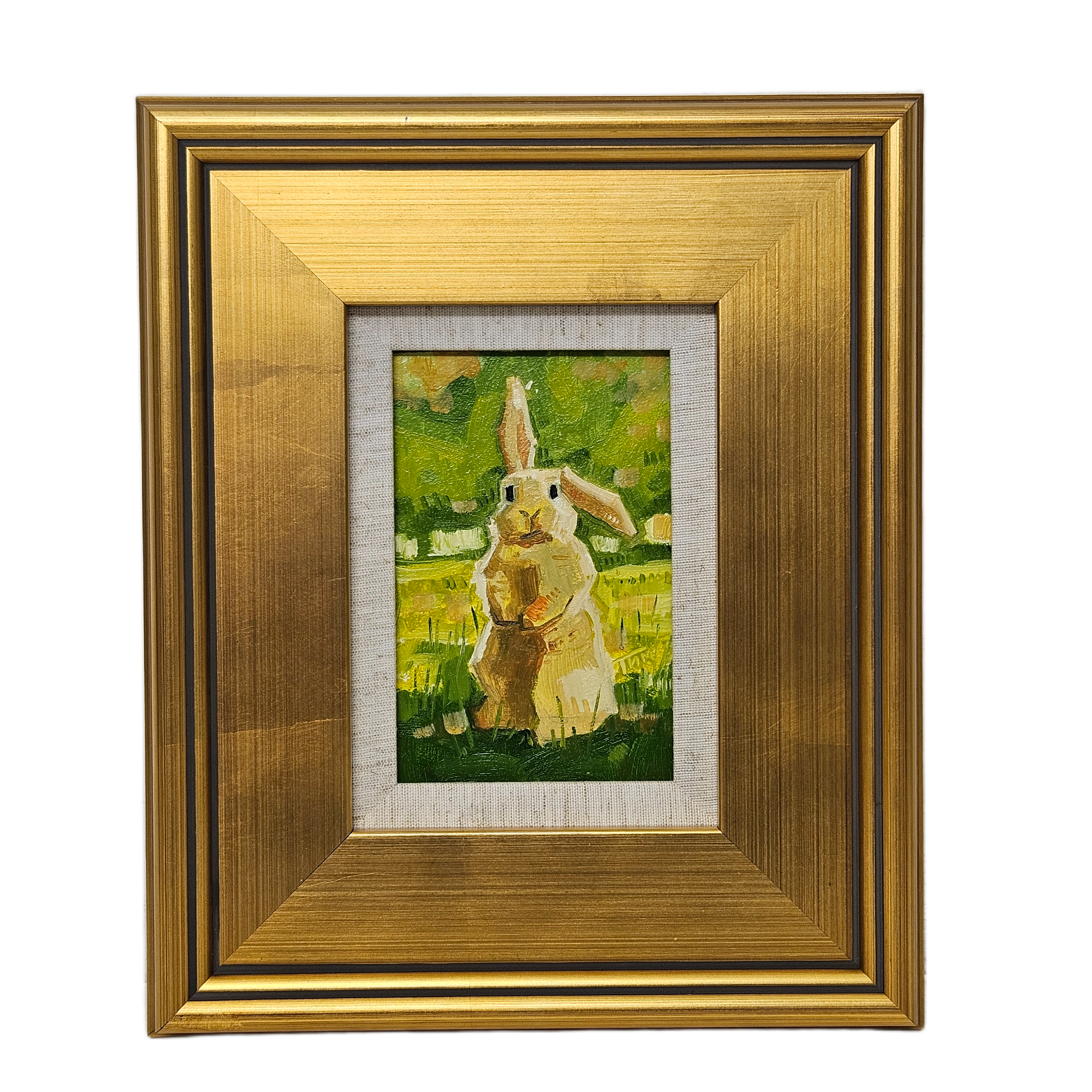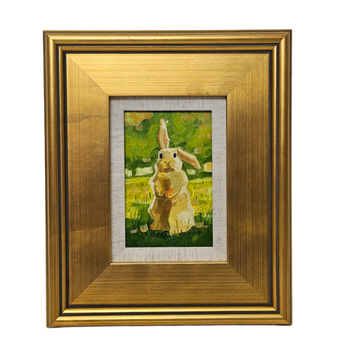 Original Painting of Bunny Standing in Field in Gold Frame