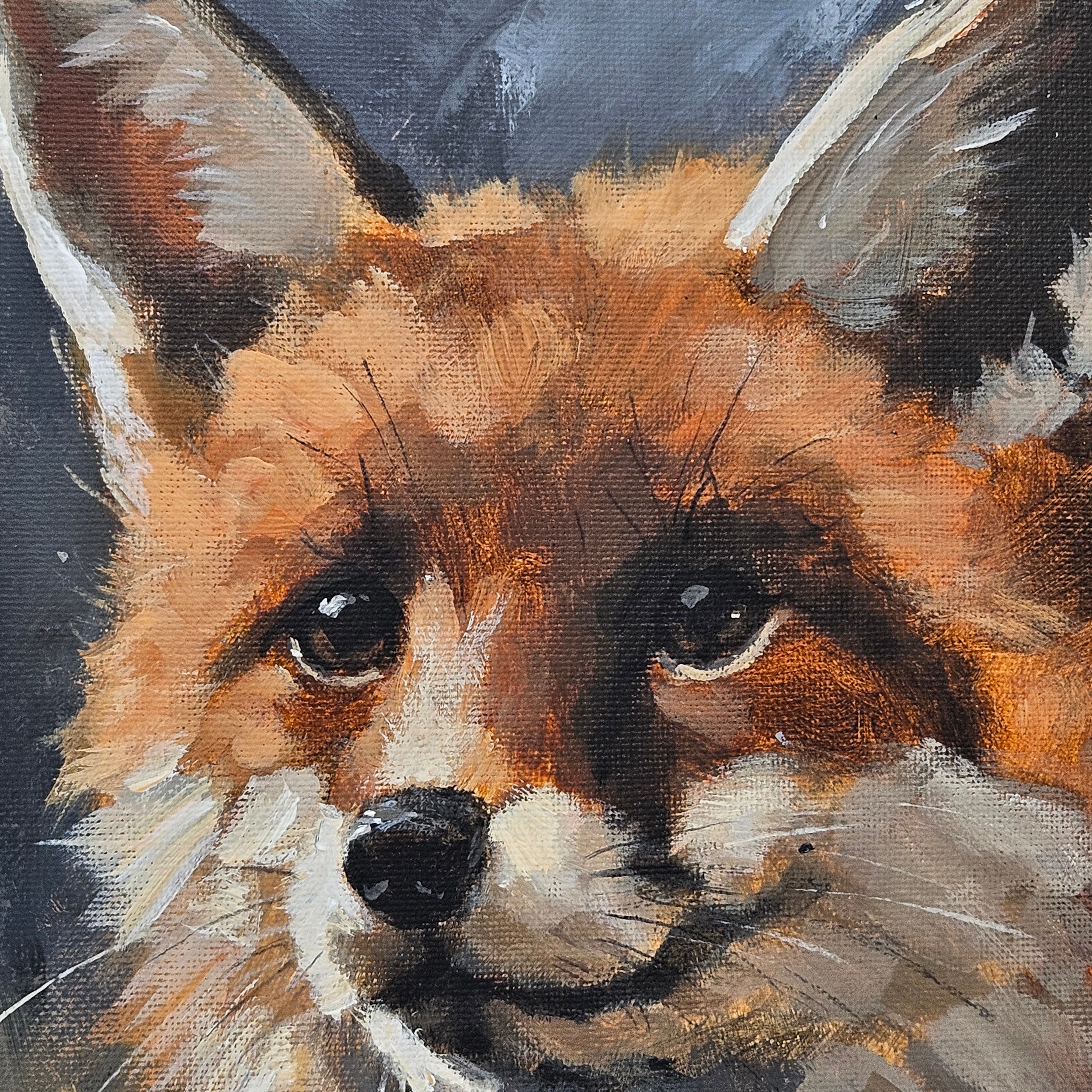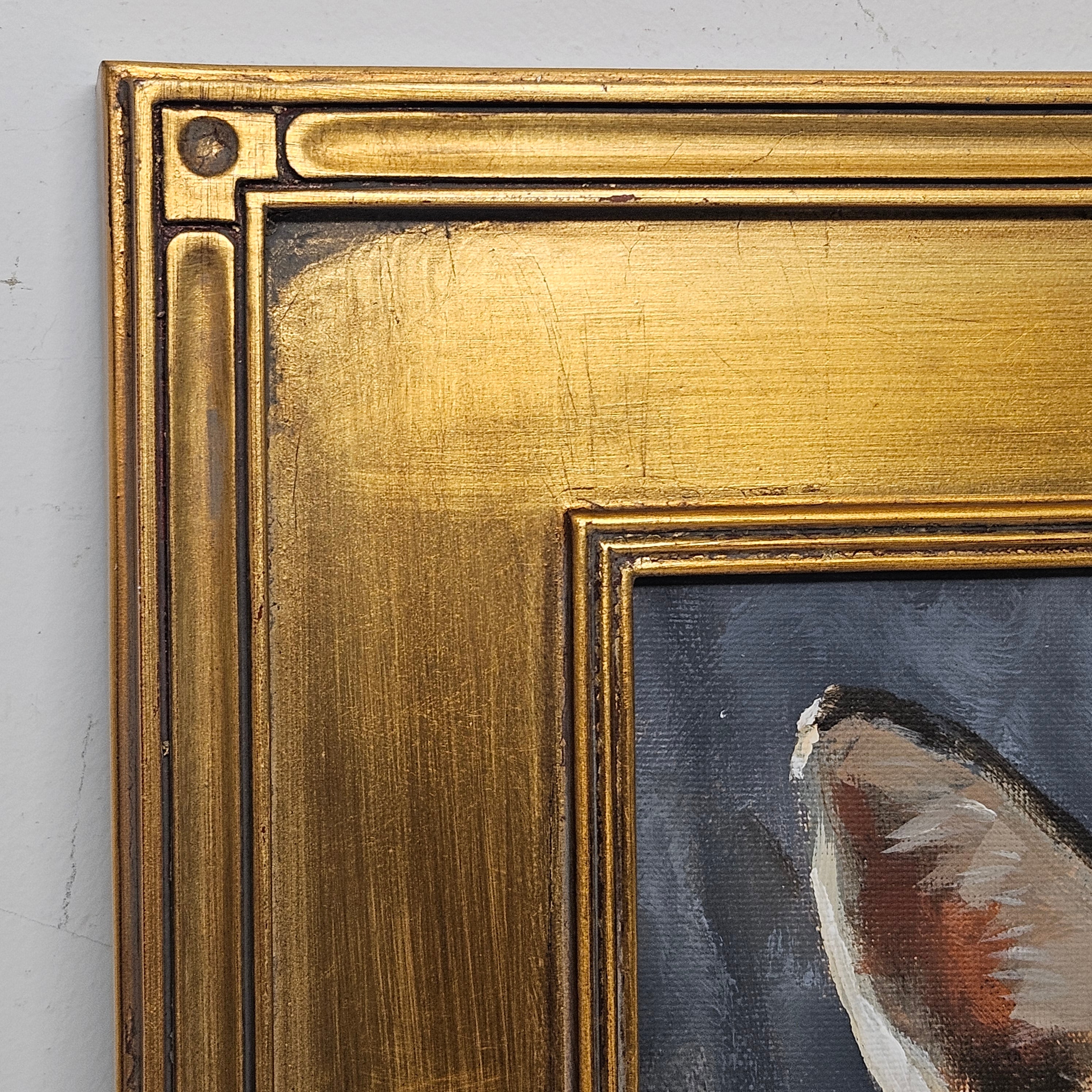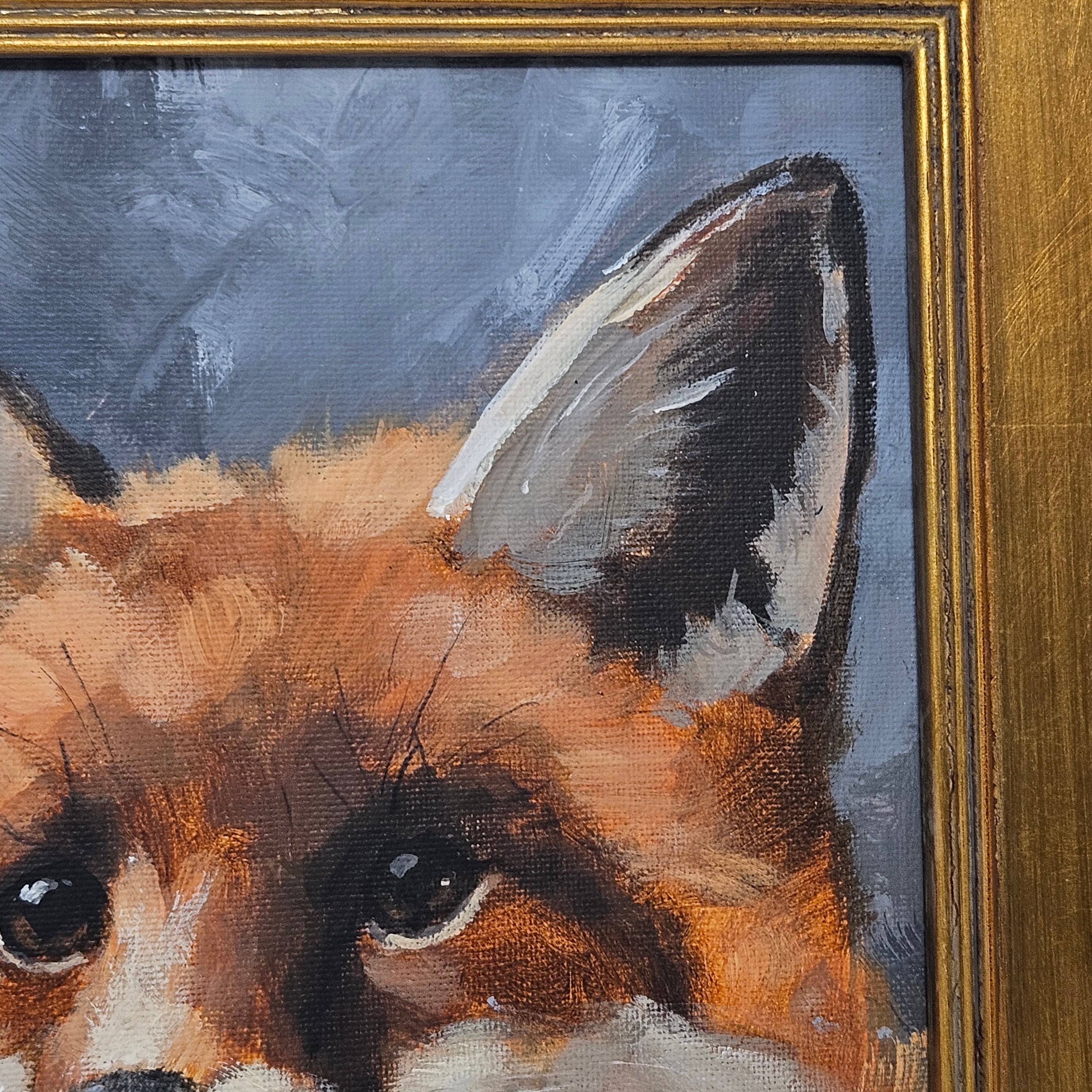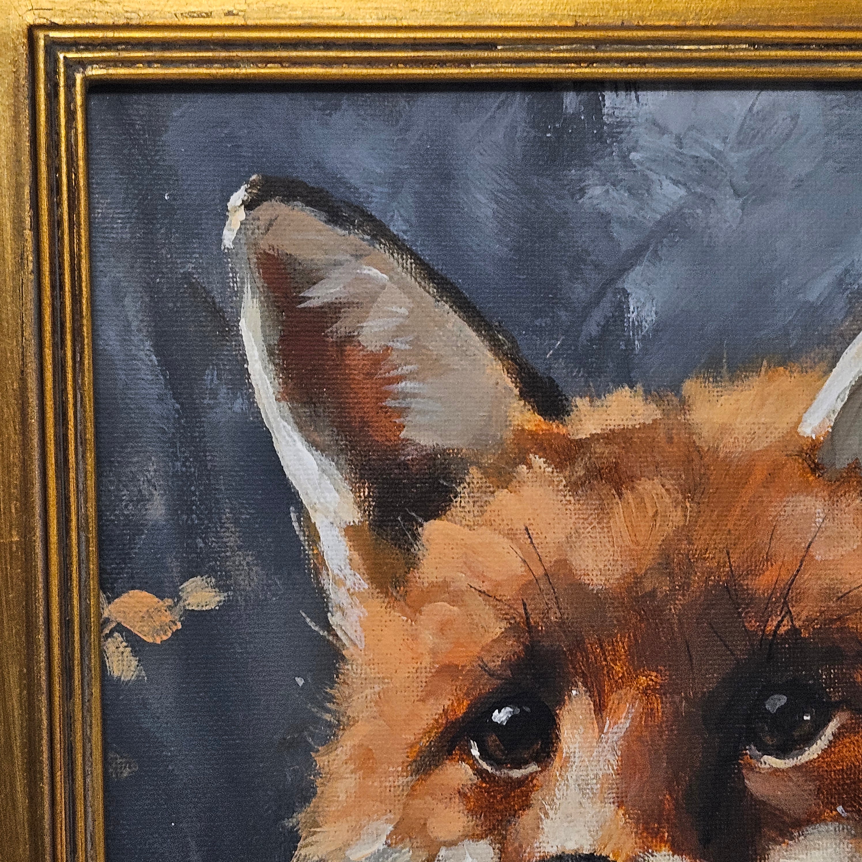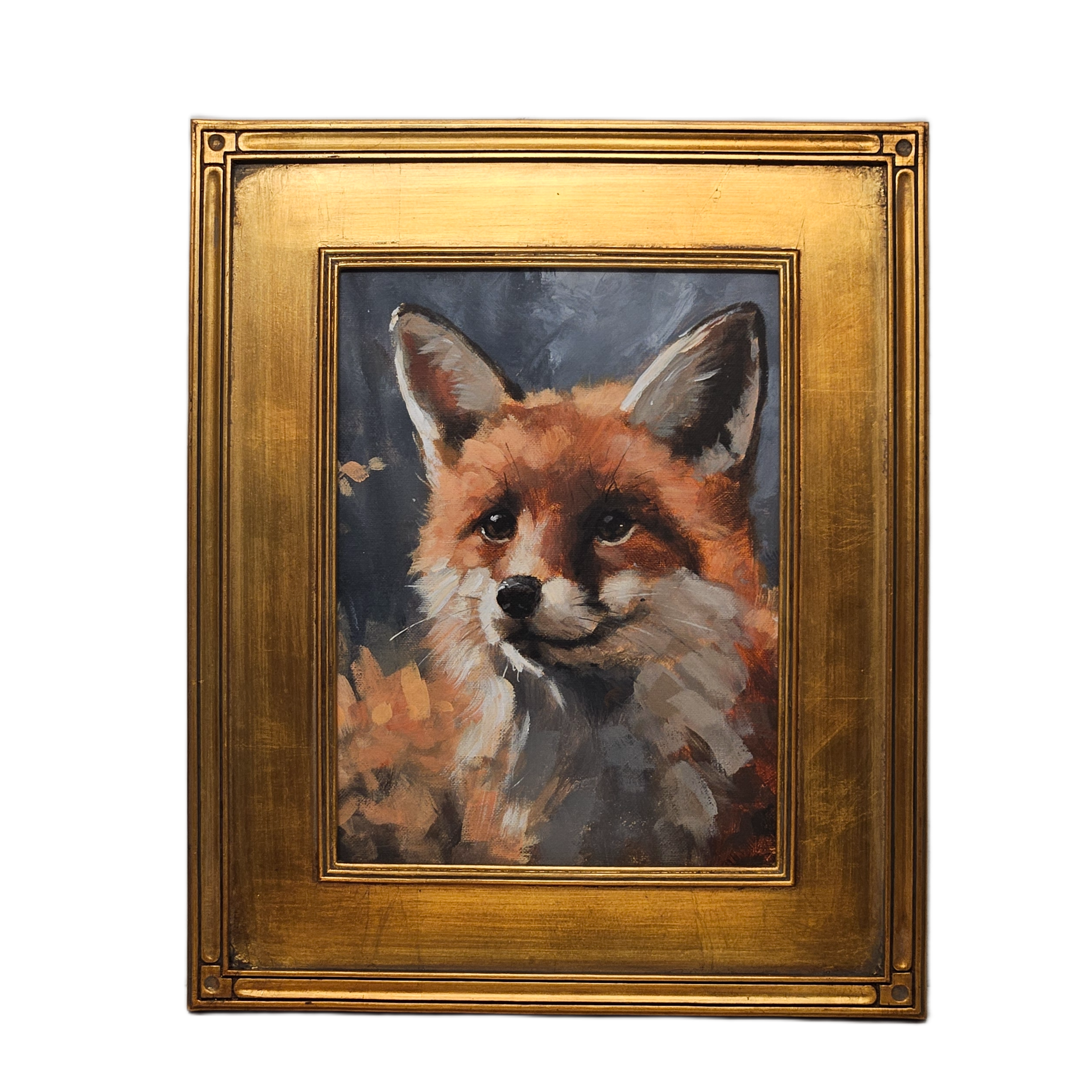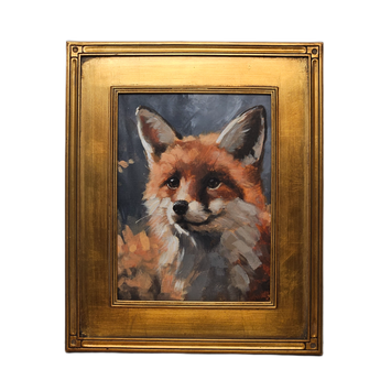 Original Realistic Painting of a Fox in Gold Plein Air Frame