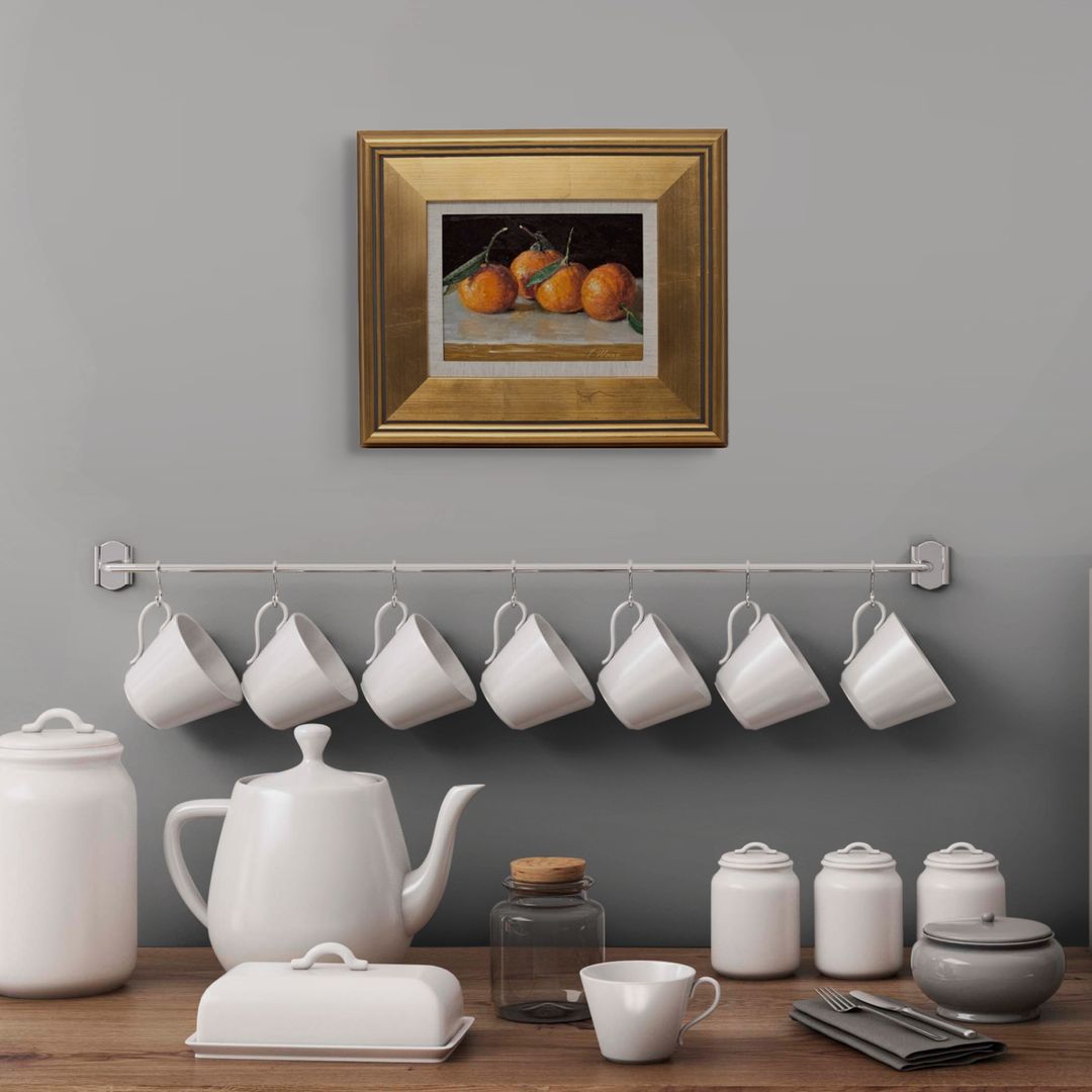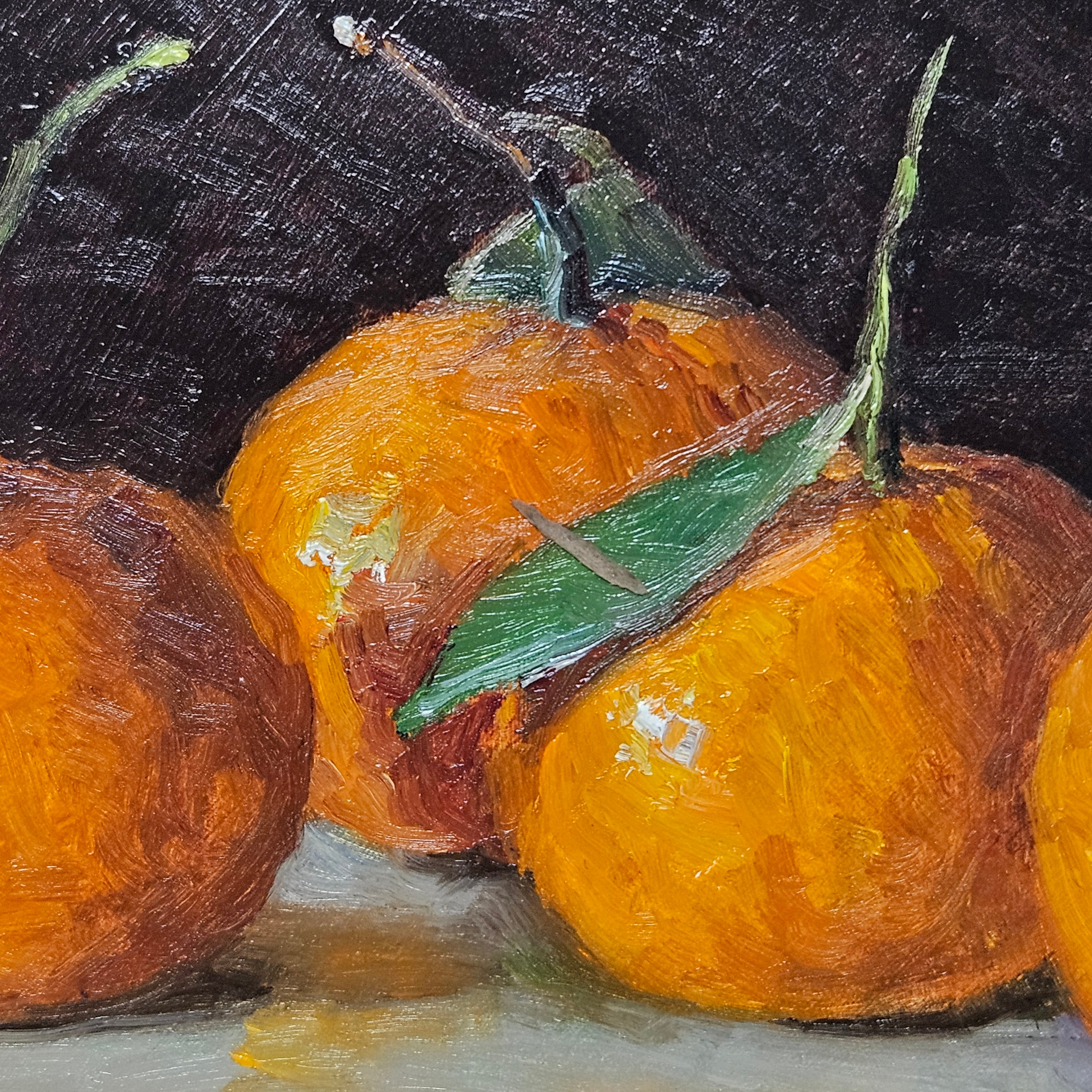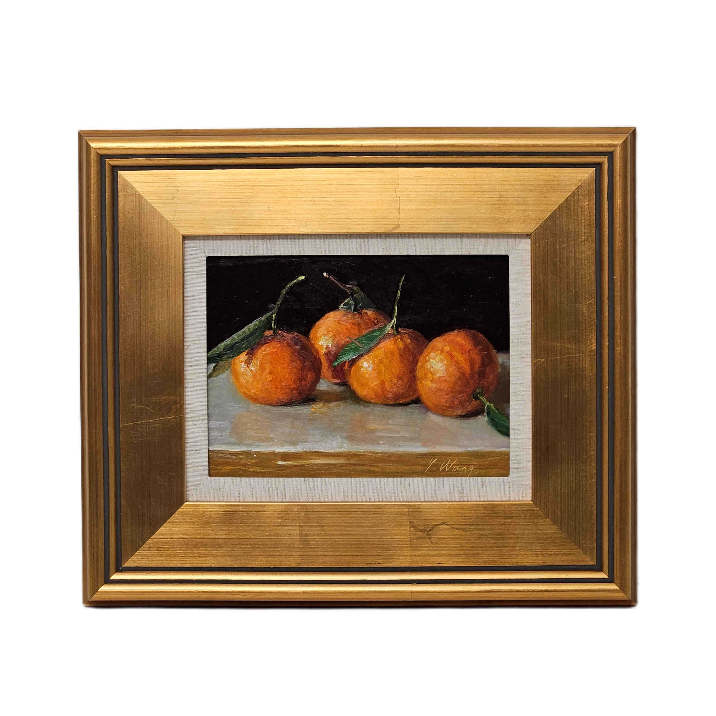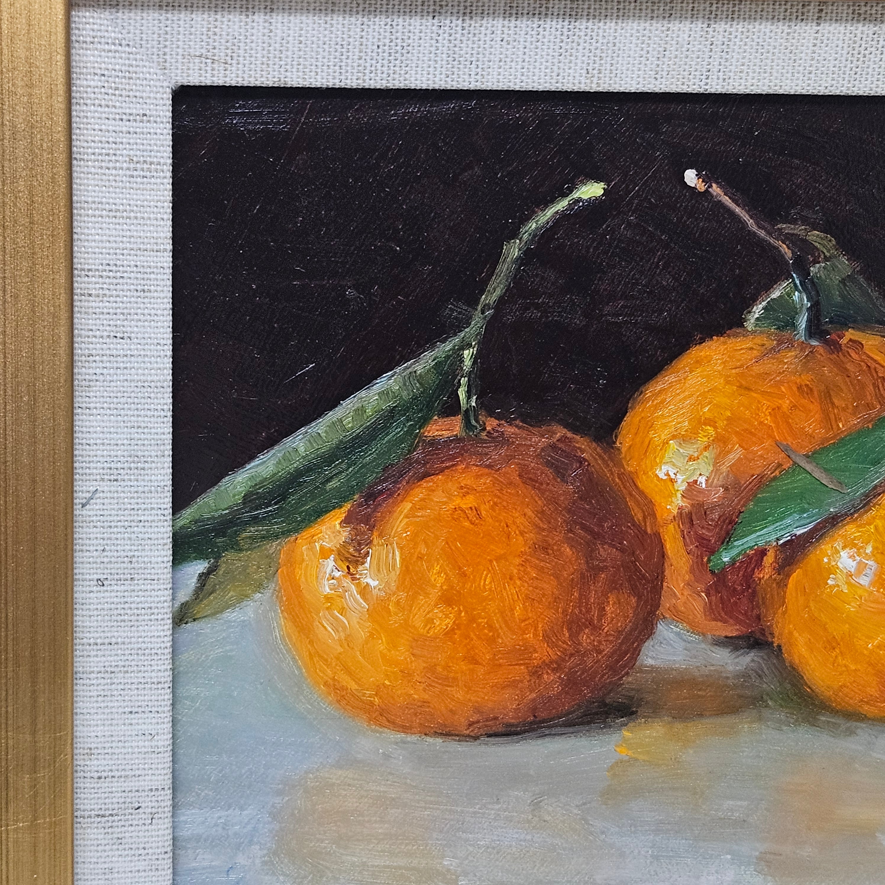 Original Still Life Painting of a Oranges in Gold Plein Air Frame