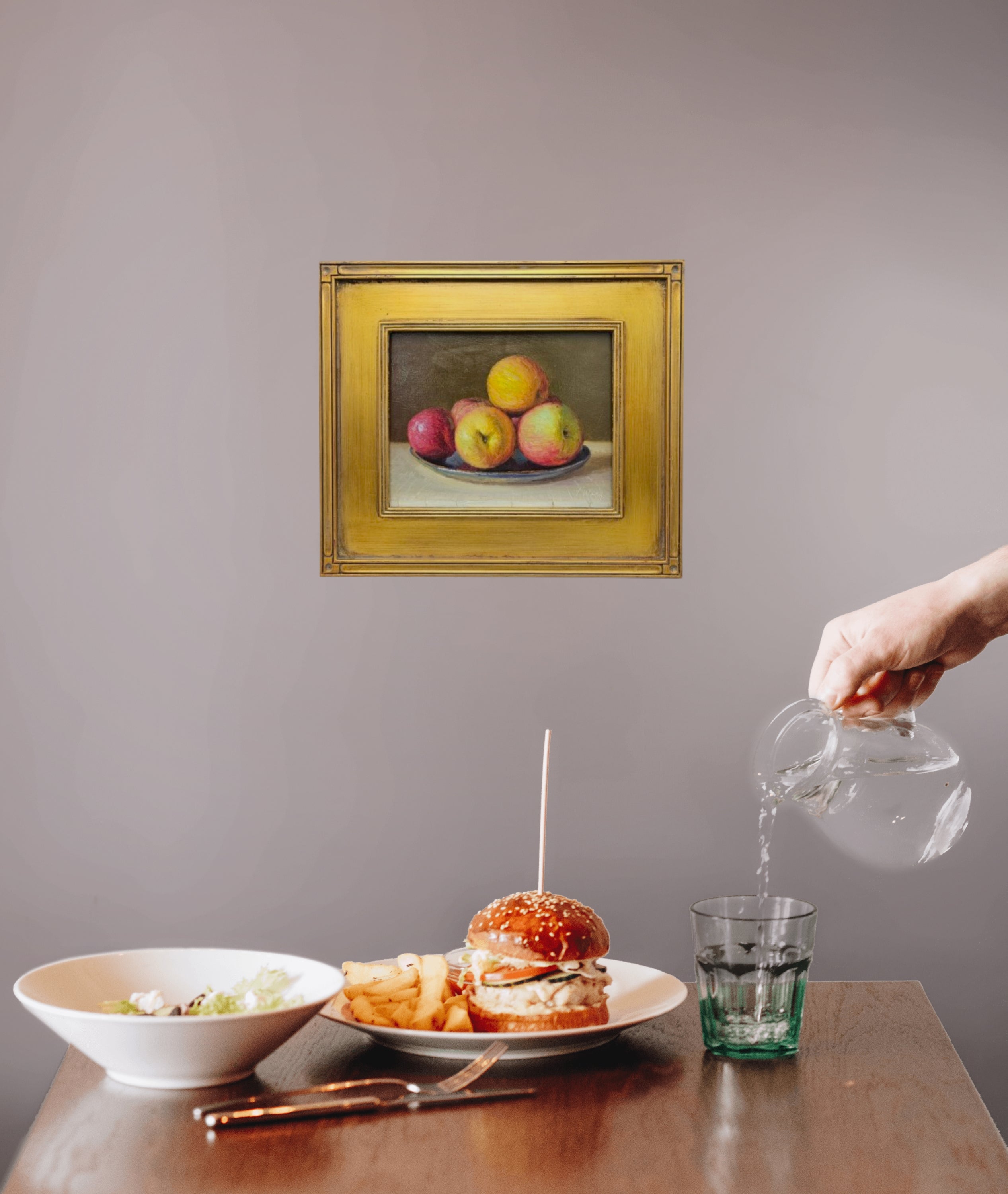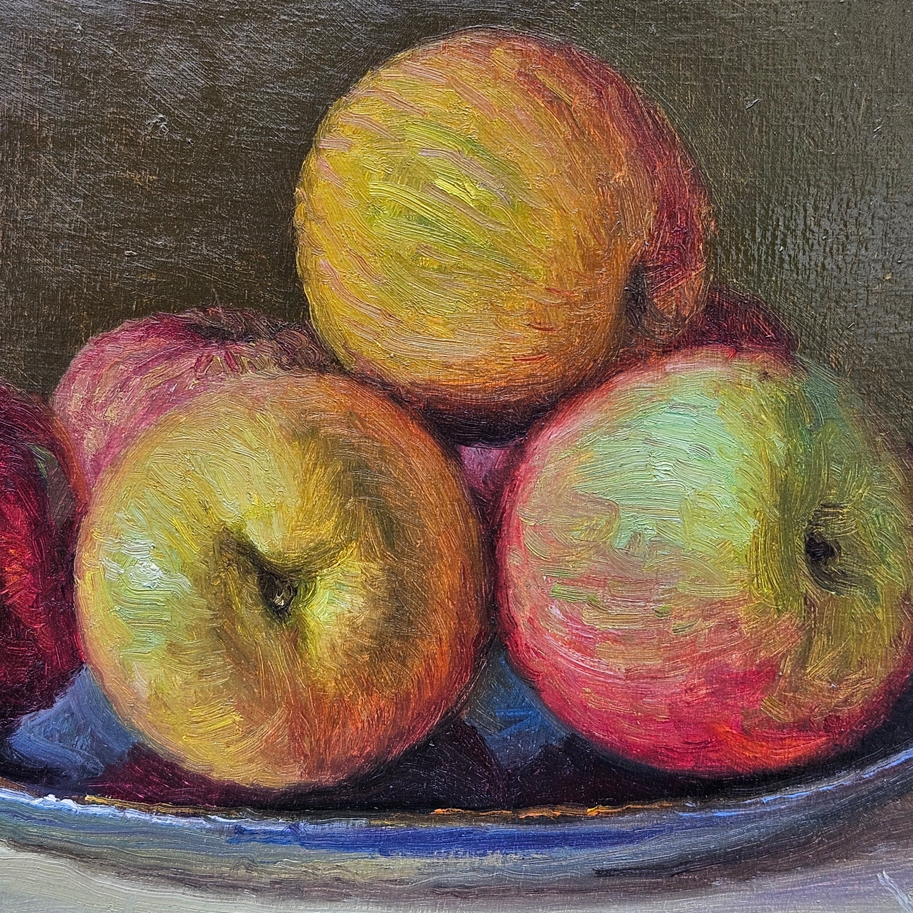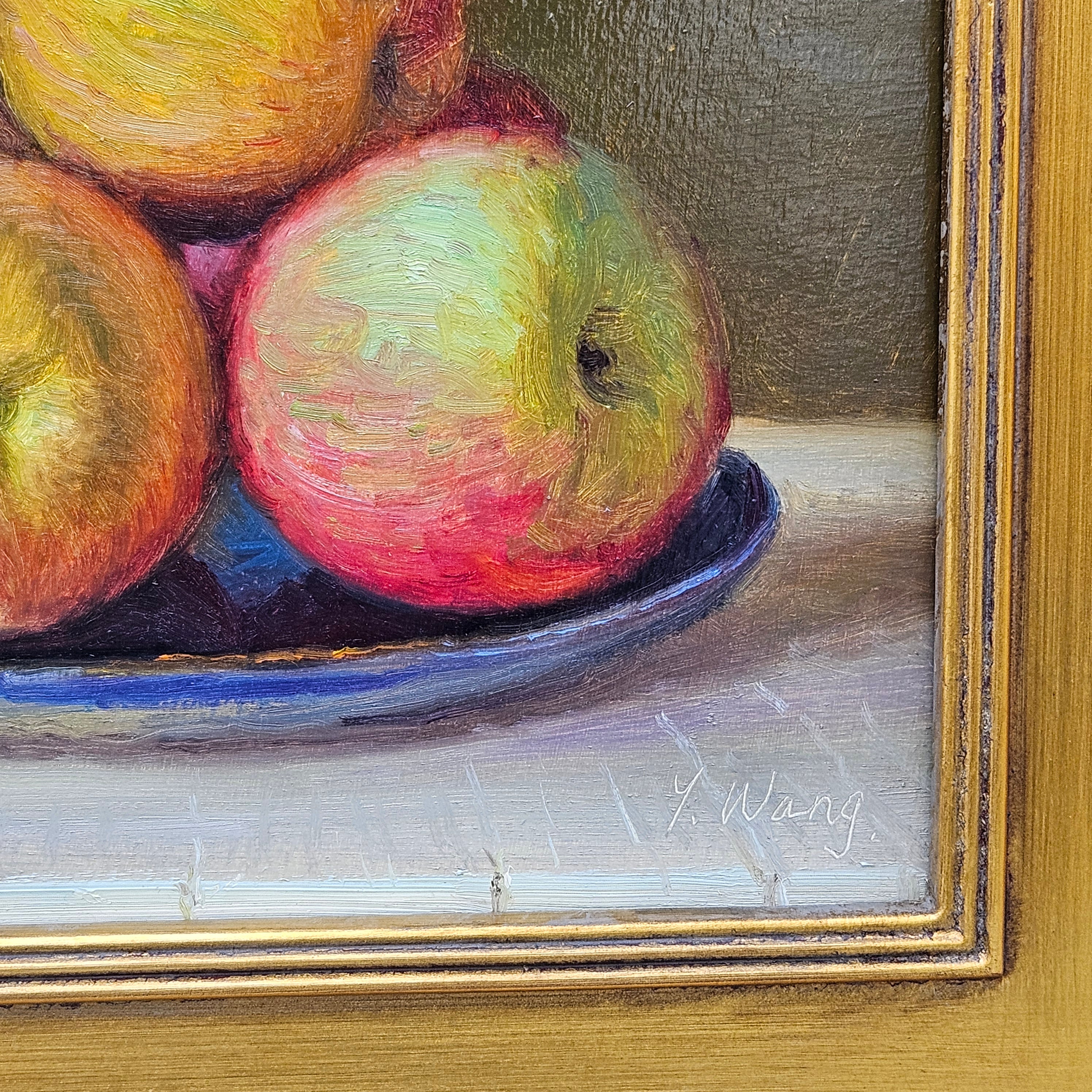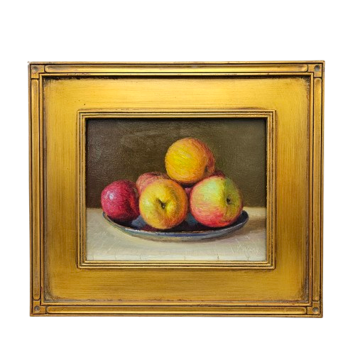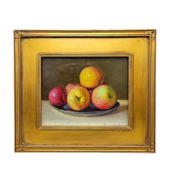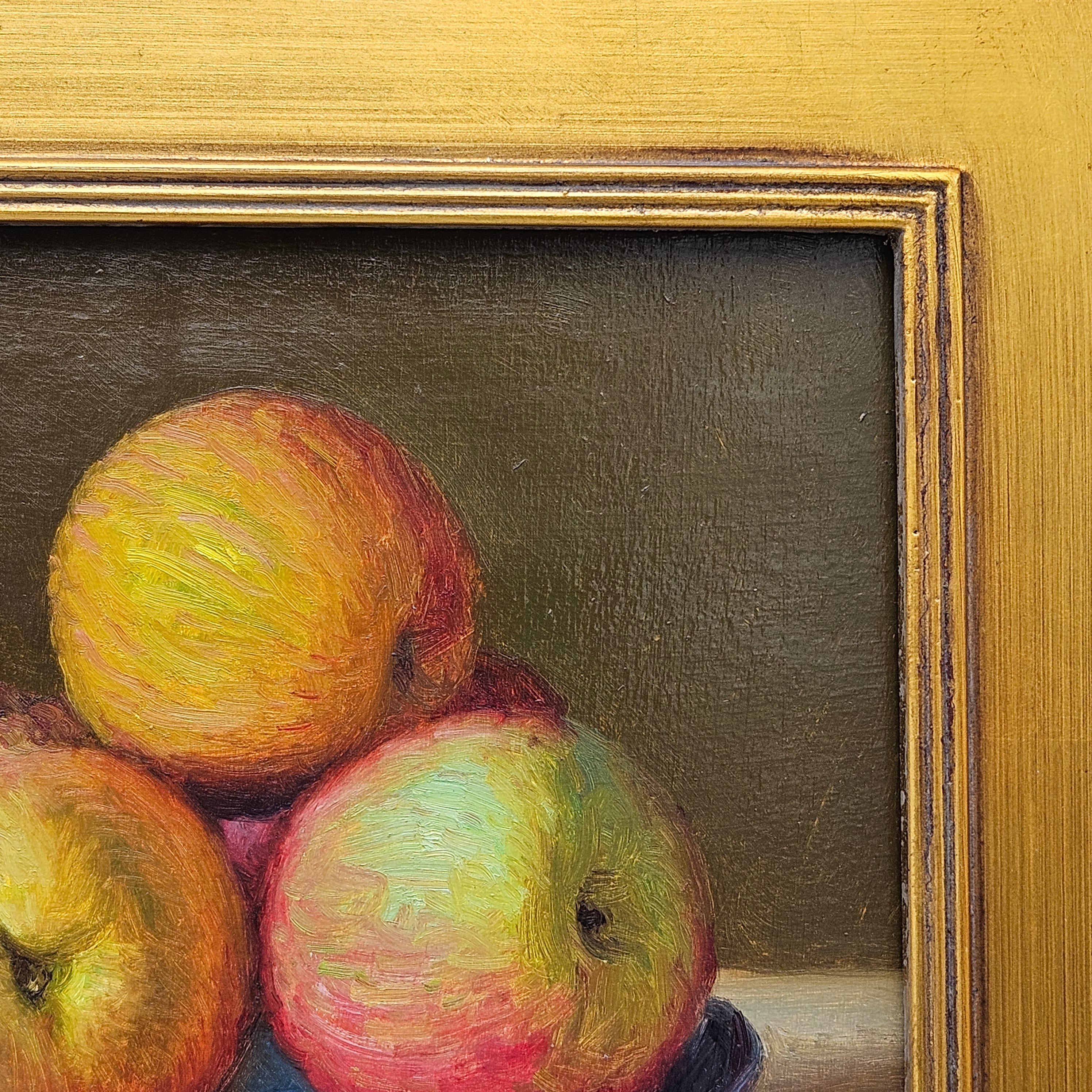 Original Still Life Painting of Apples in Gold Plein Air Frame