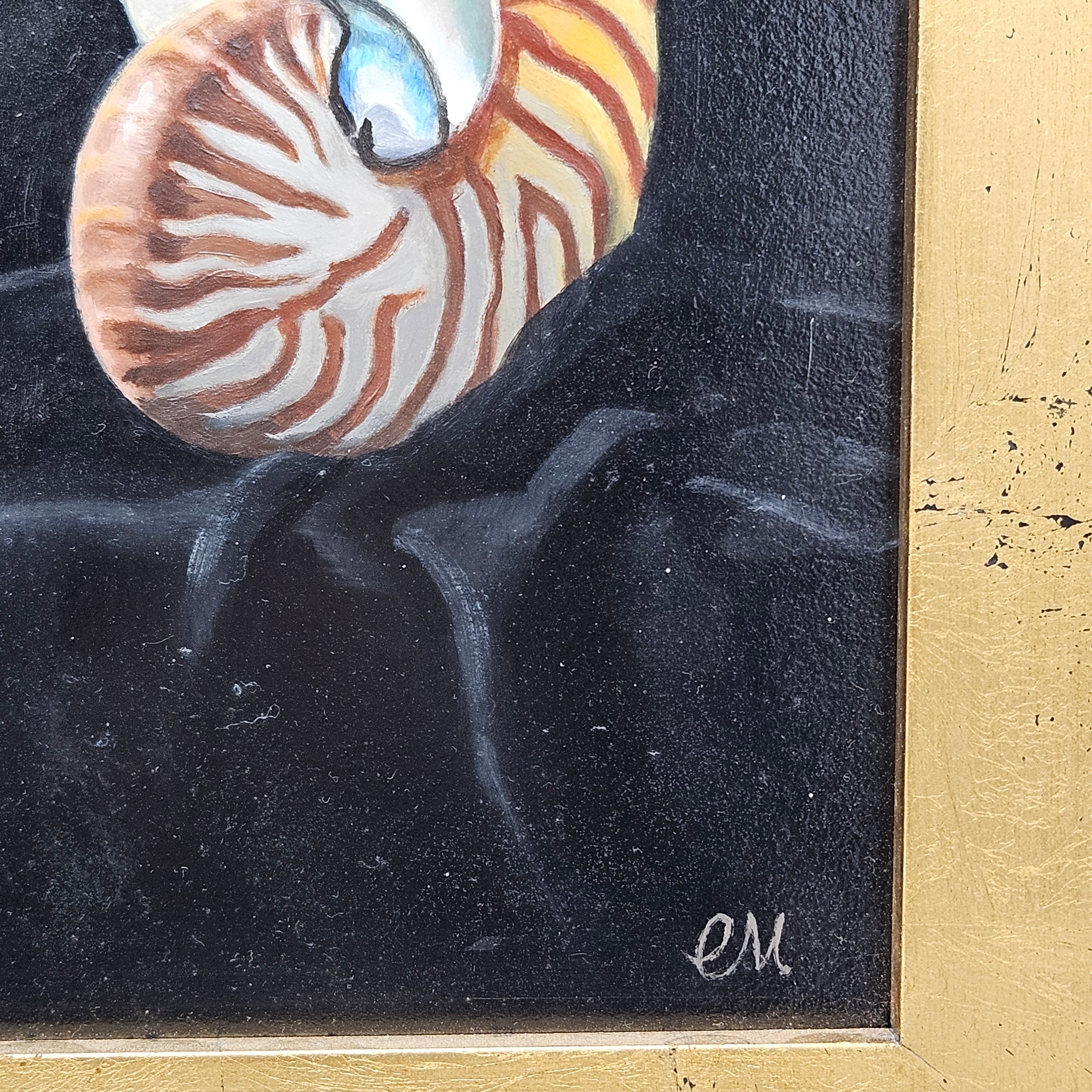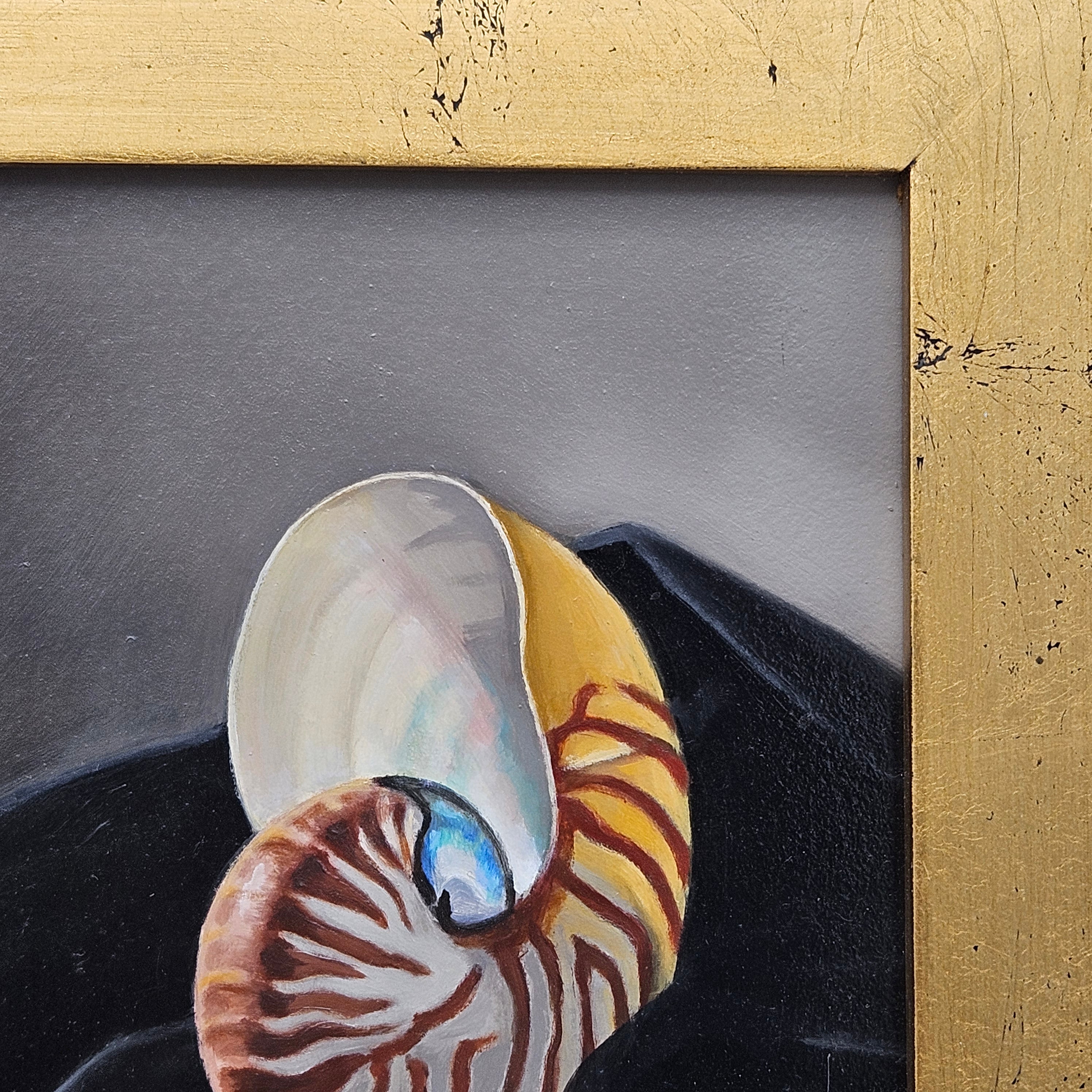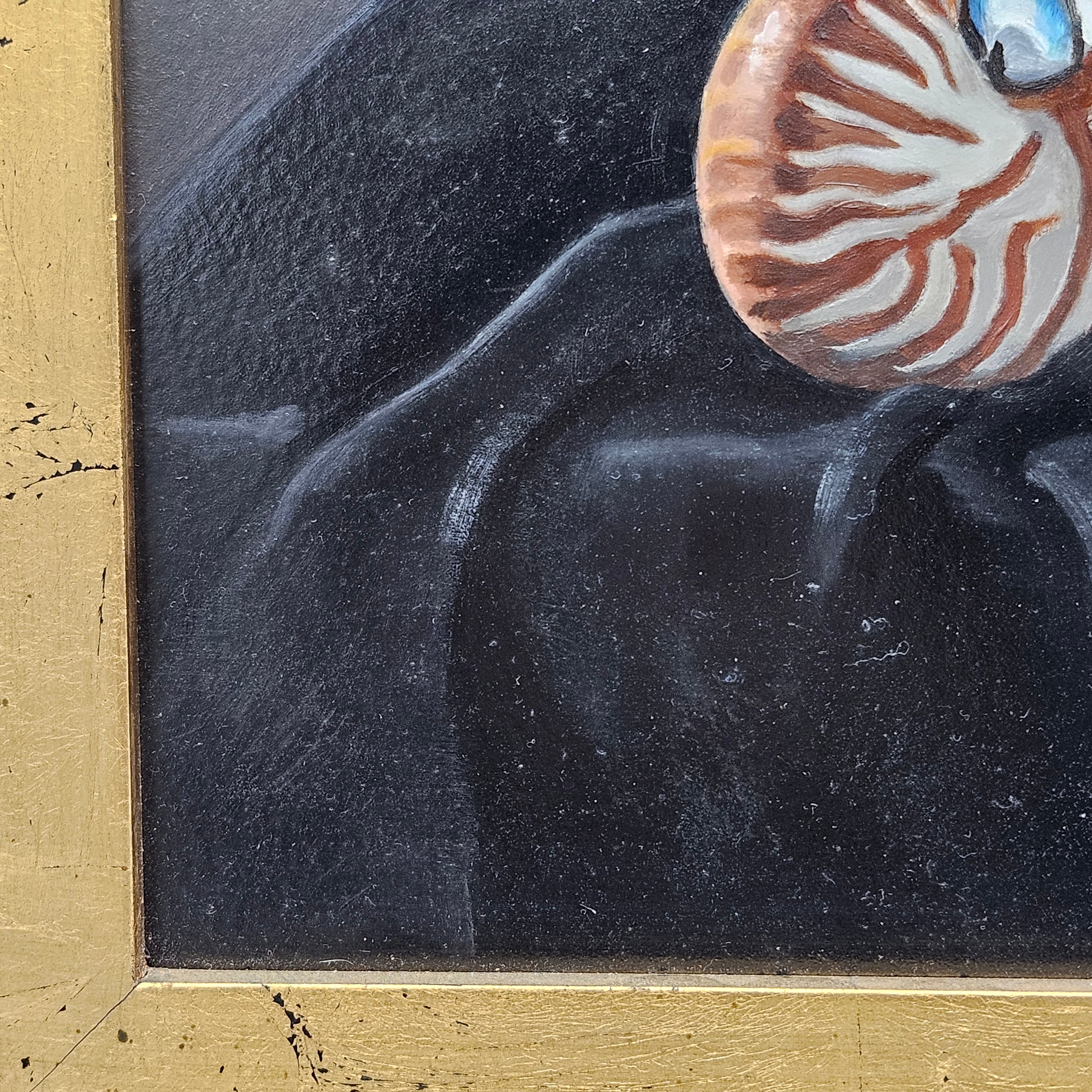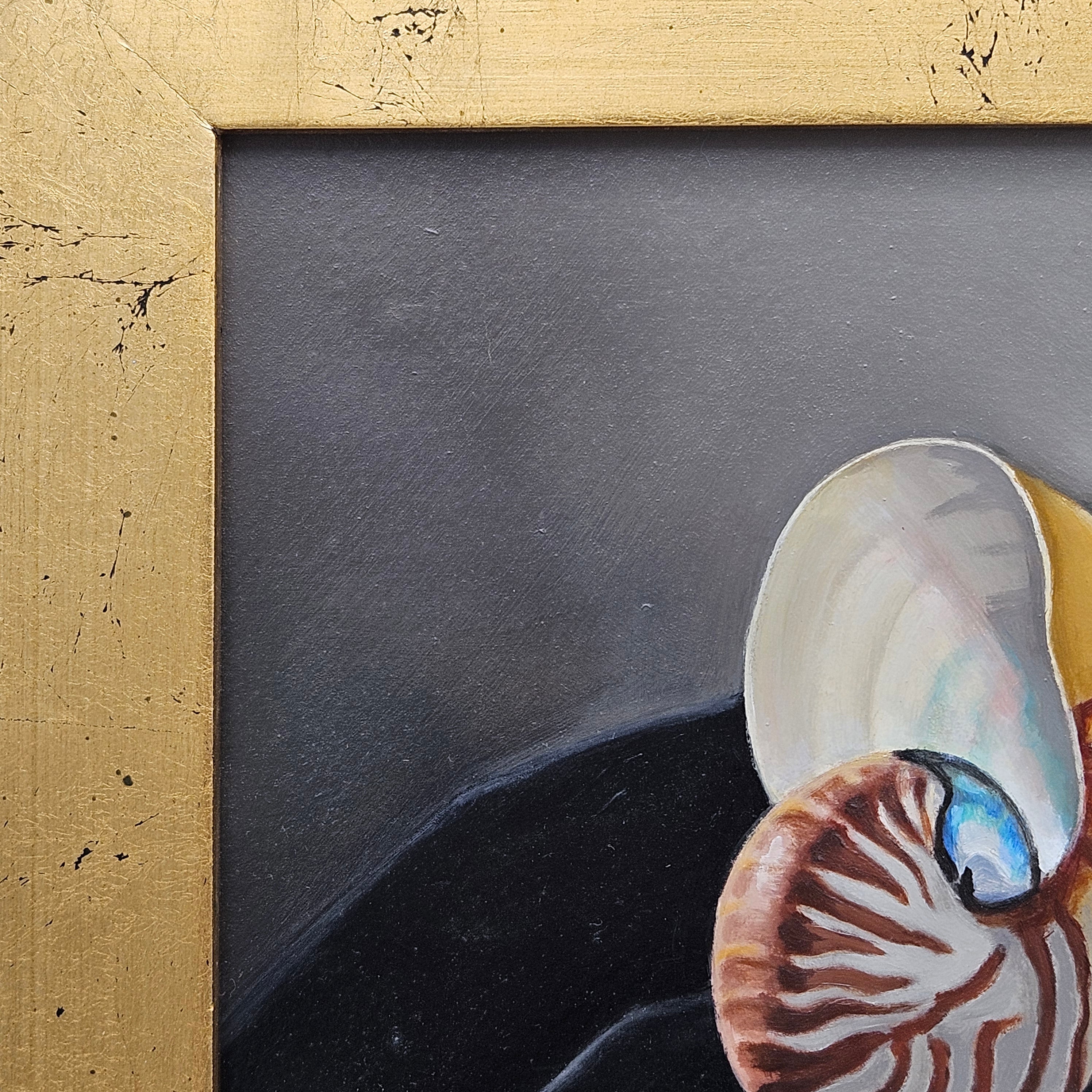 Original Still Life Painting of Nautilus Shell Seashells in Gold Frame