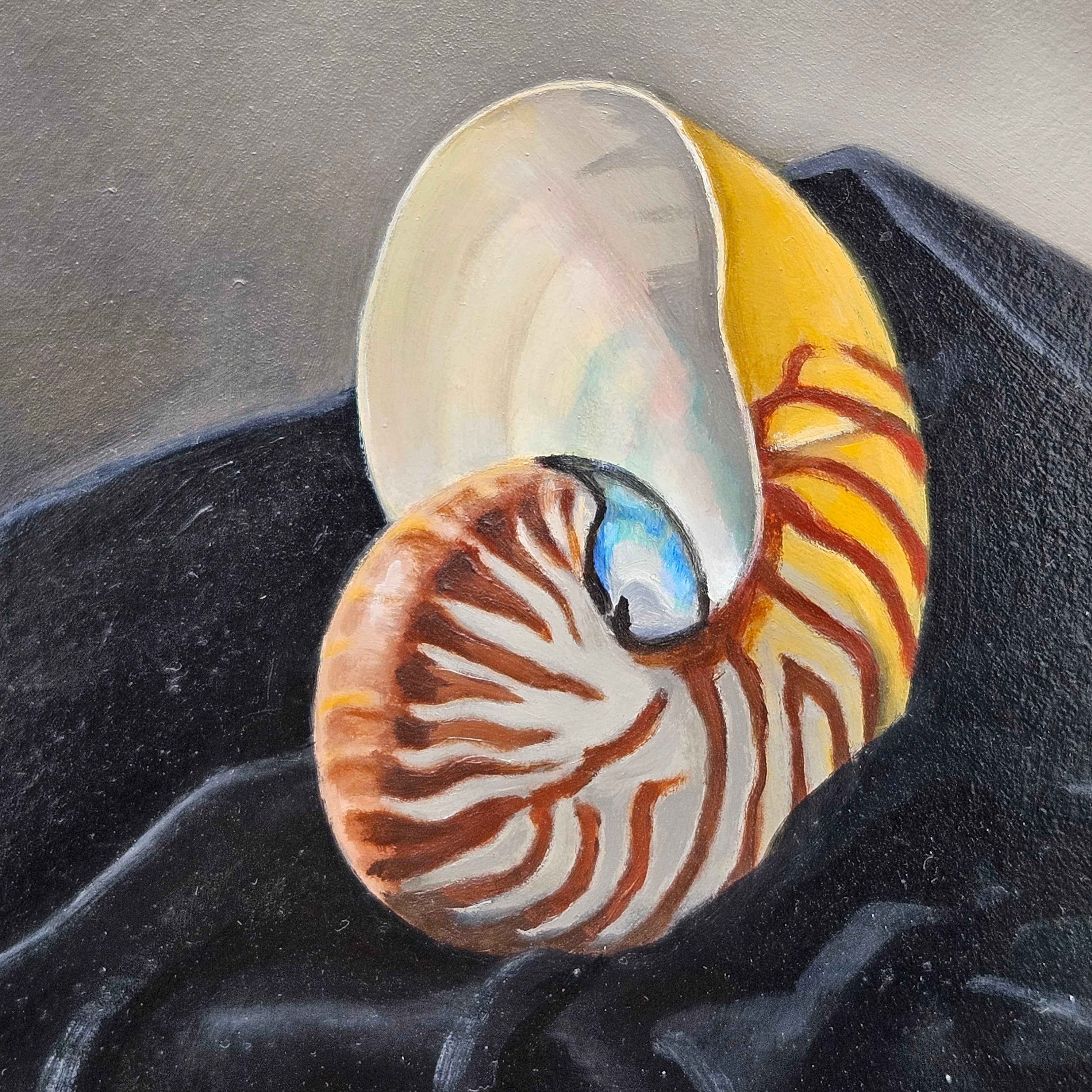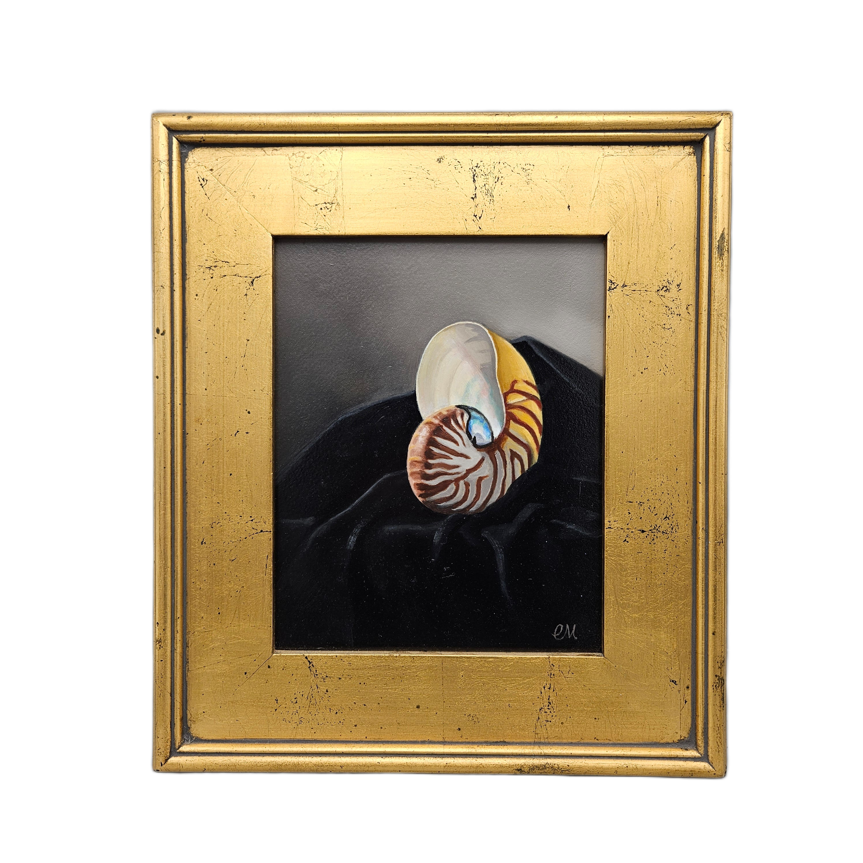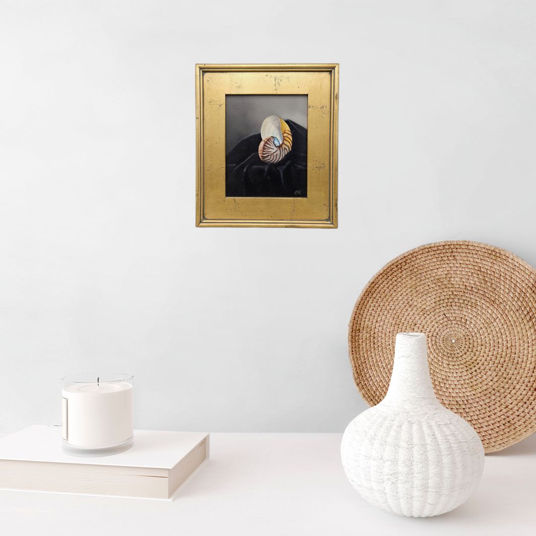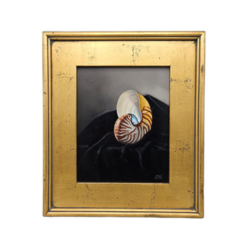 Original Still Life Painting of Nautilus Shell Seashells in Gold Frame