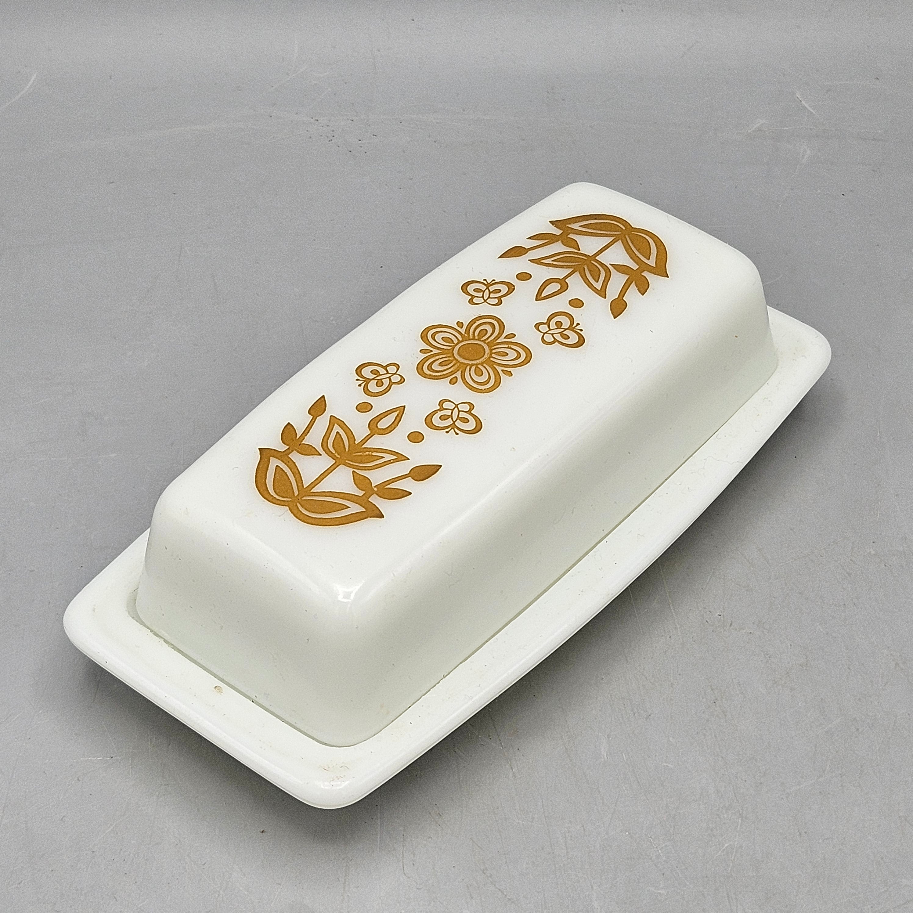 Vintage Pyrex Glass Butterfly Gold Butter Dish