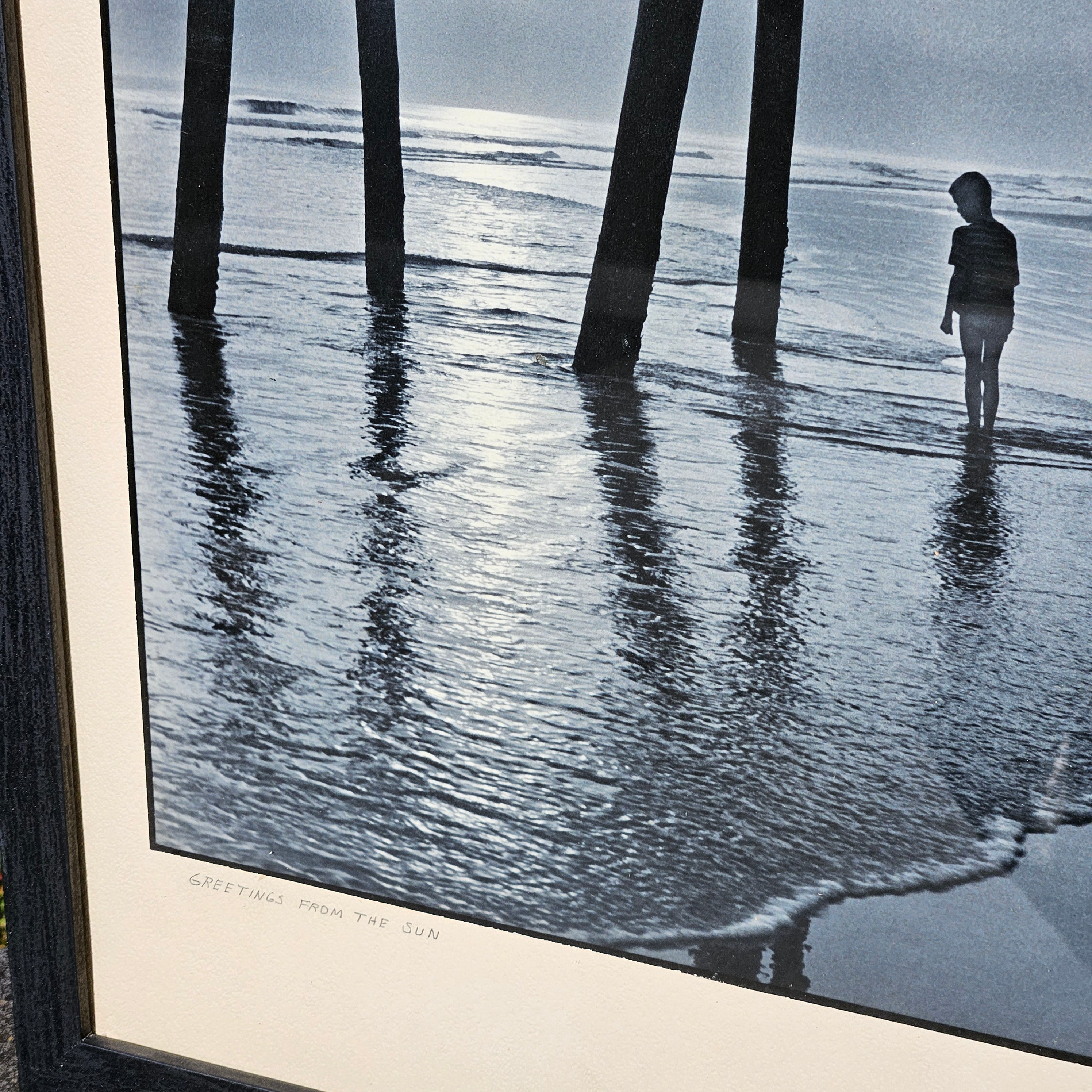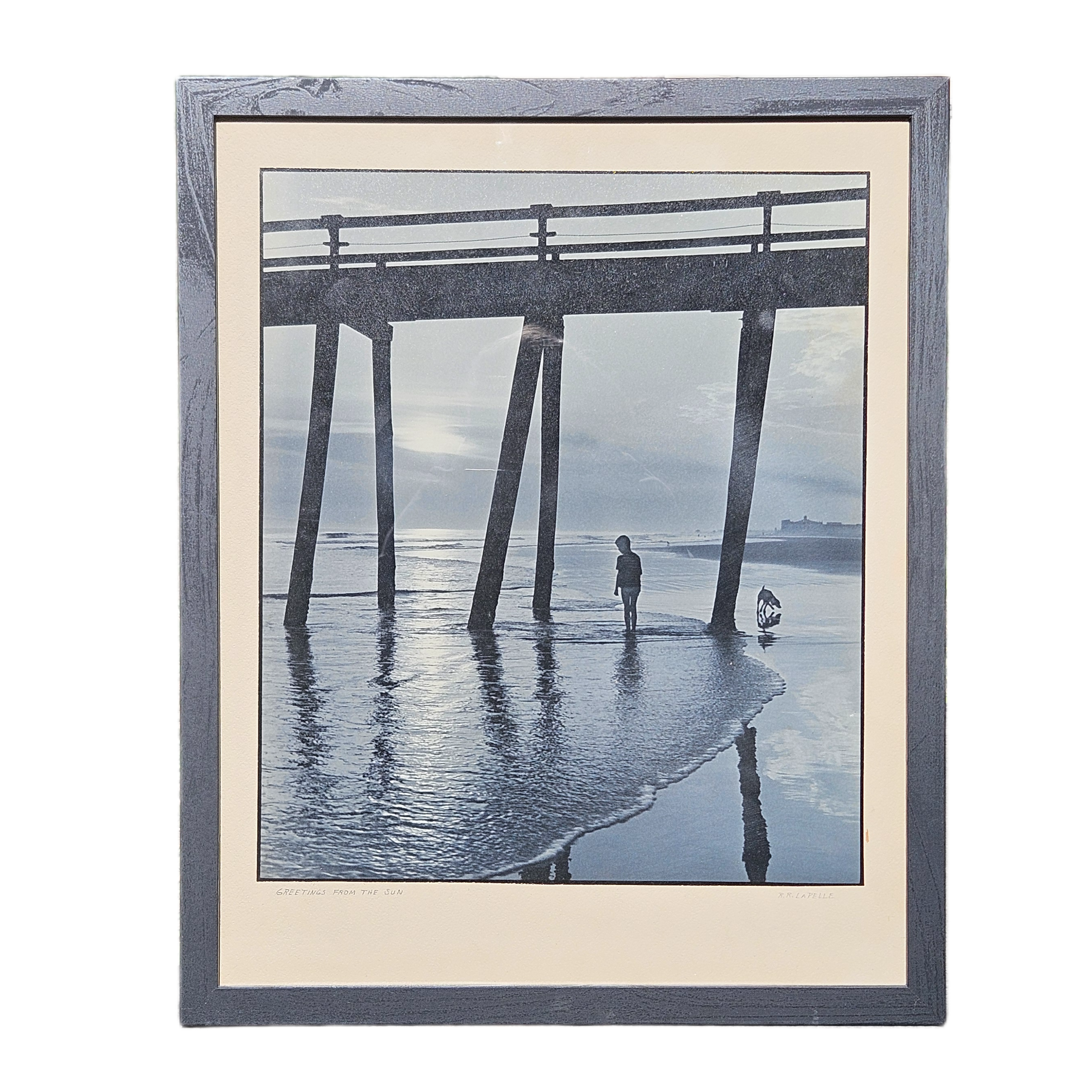 Raymond R LaPelle "Greetings from the Sun" Black and White Photograph of Pier on Beach