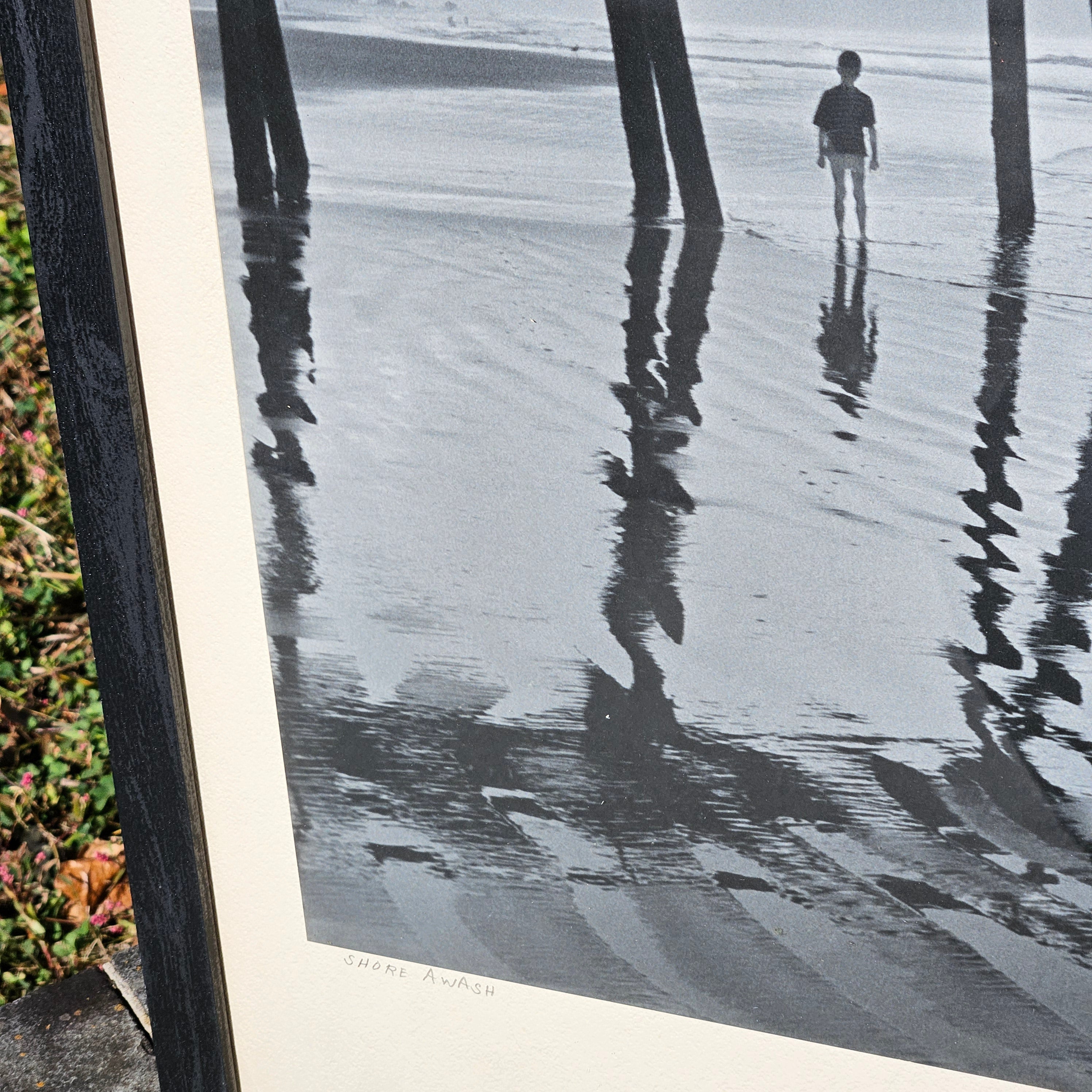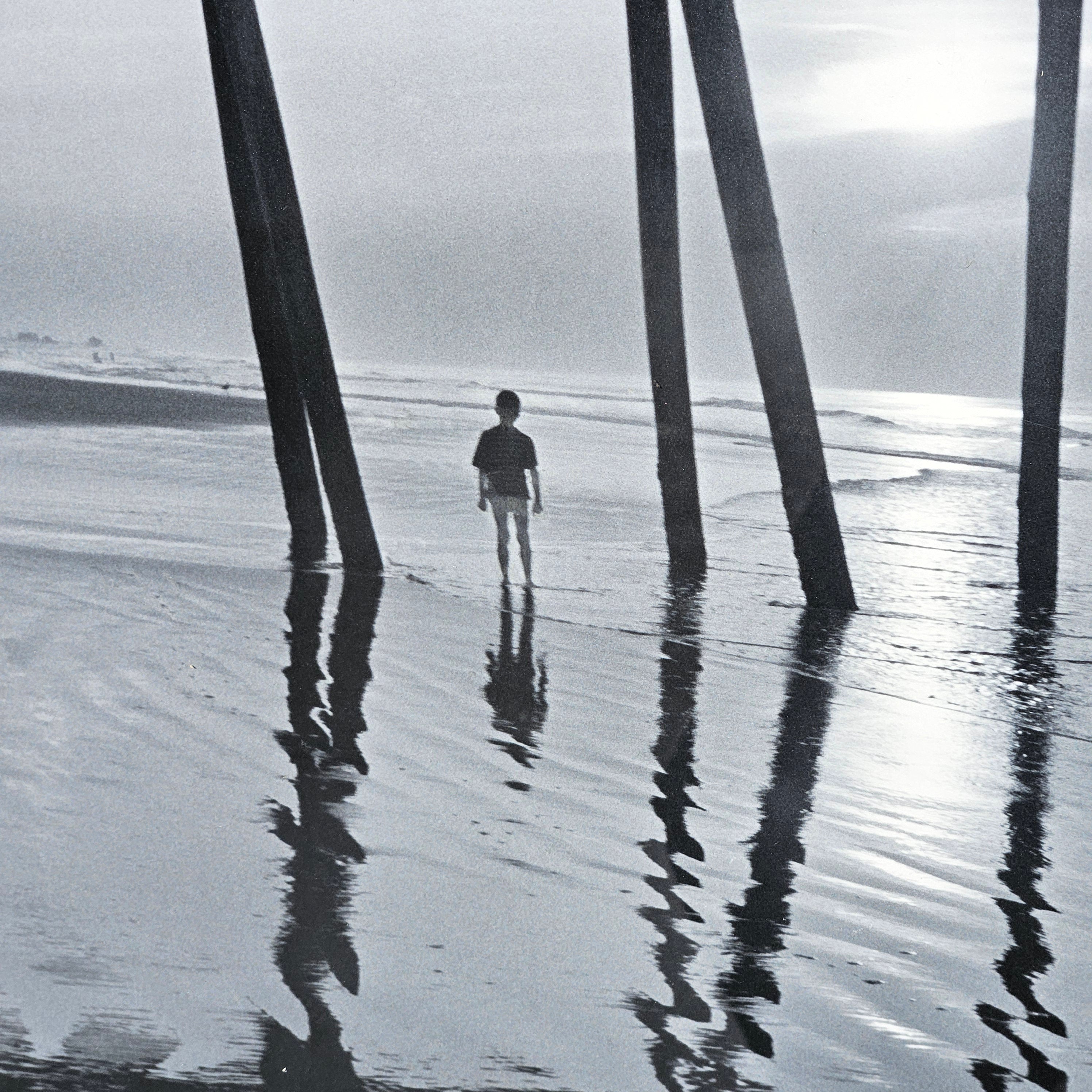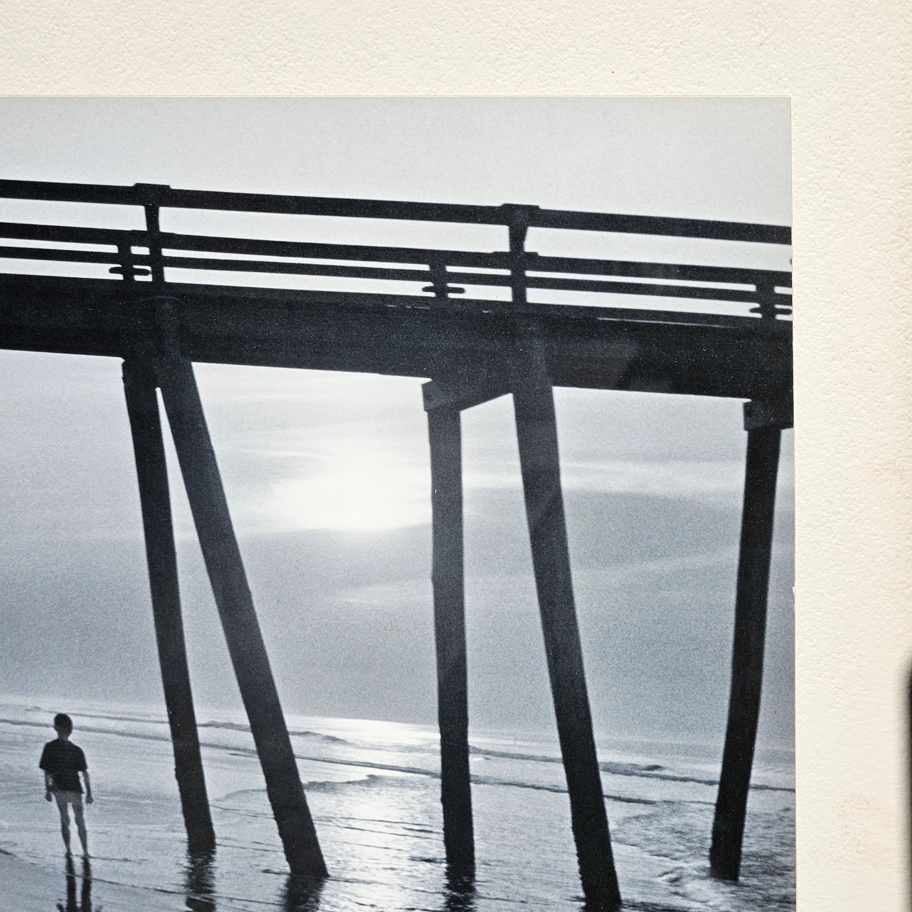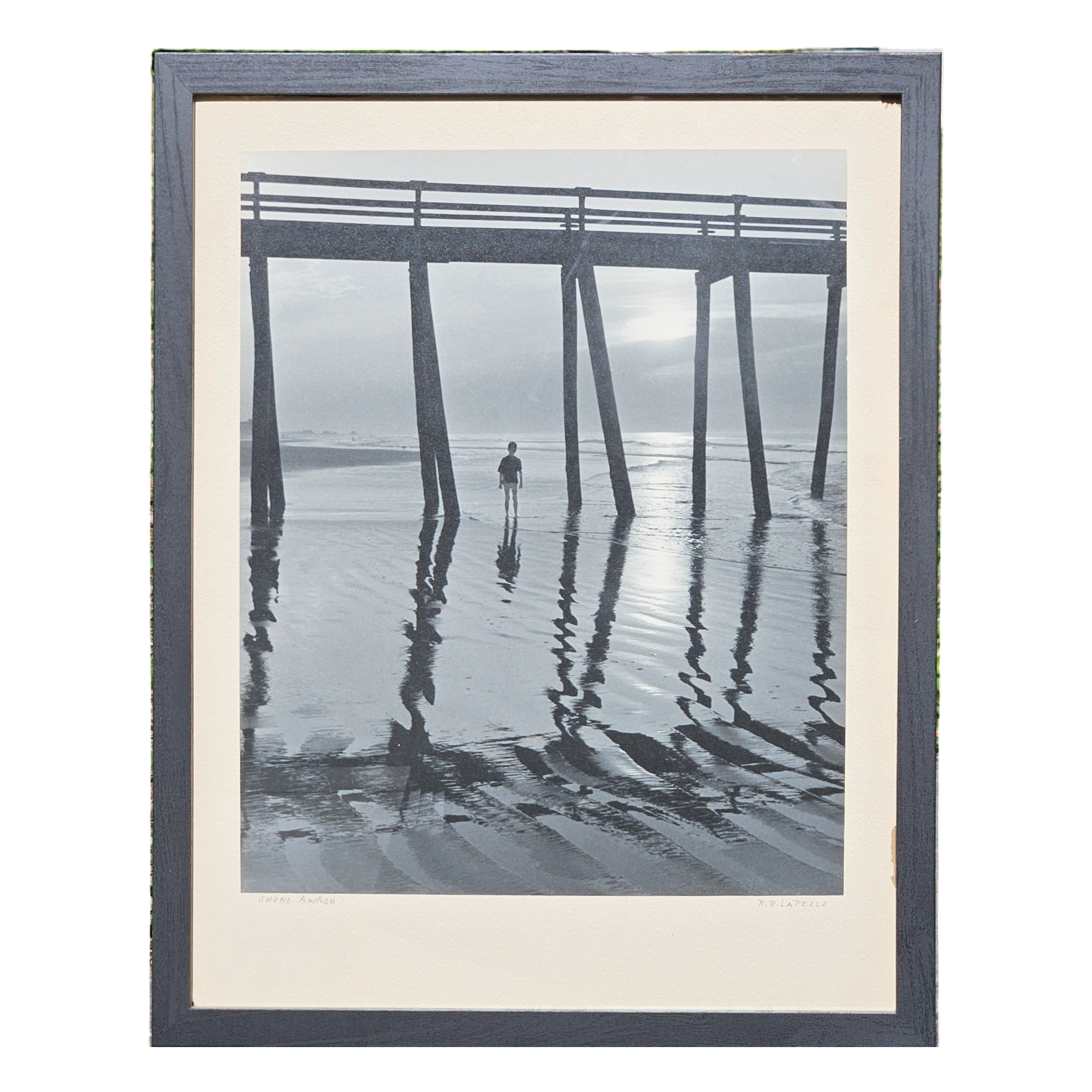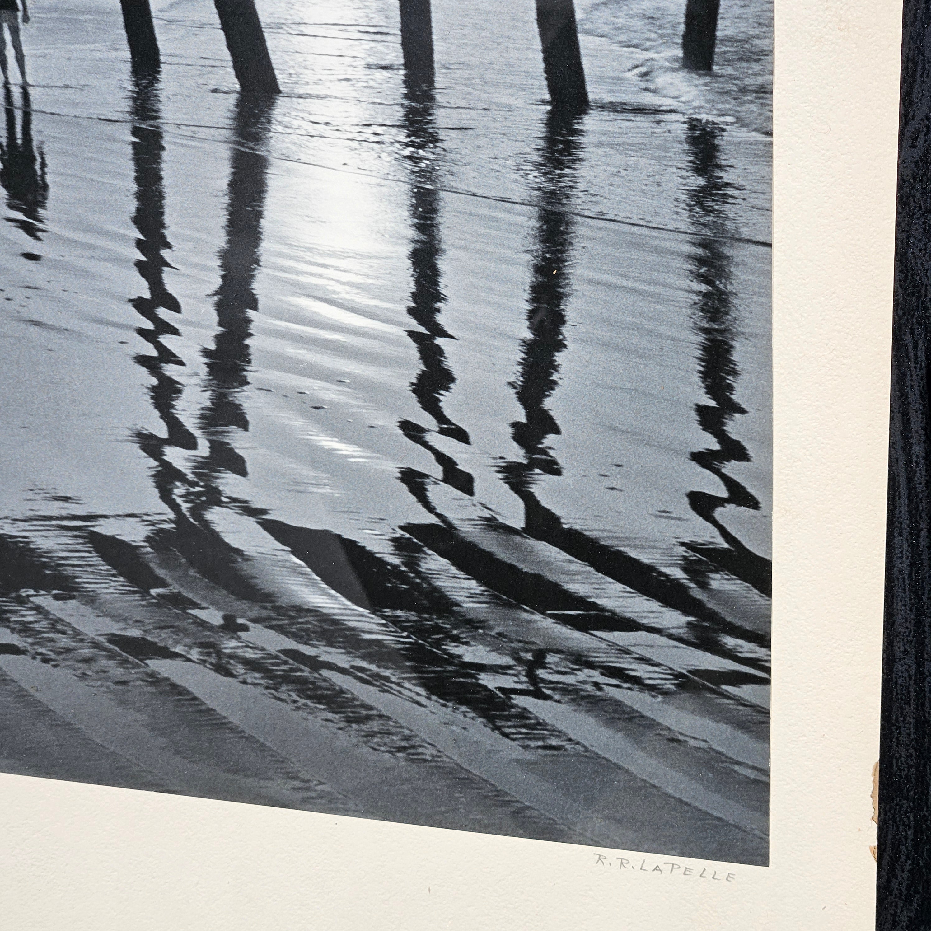 Raymond R LaPelle "Shore Awash" Black and White Photograph of Pier on Beach