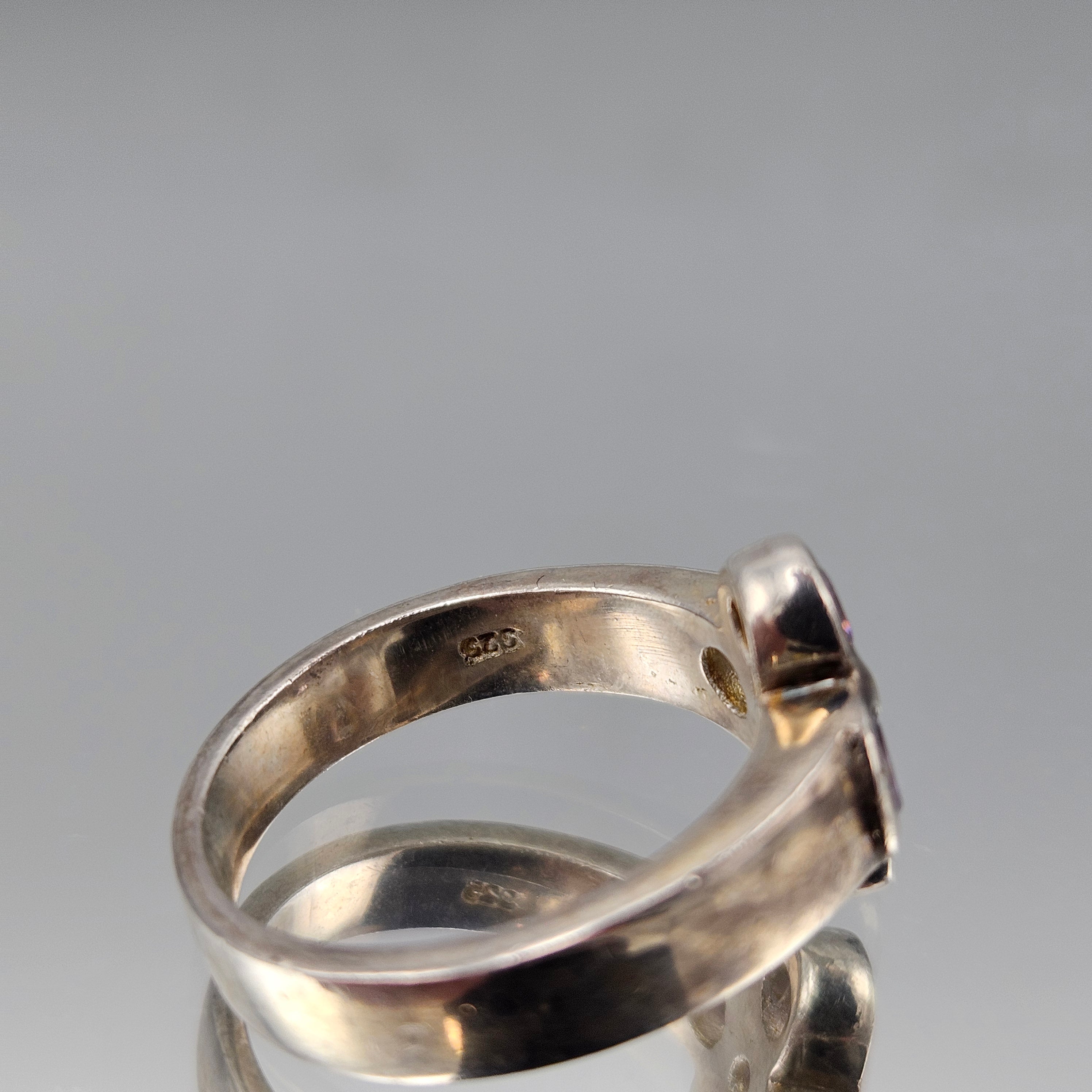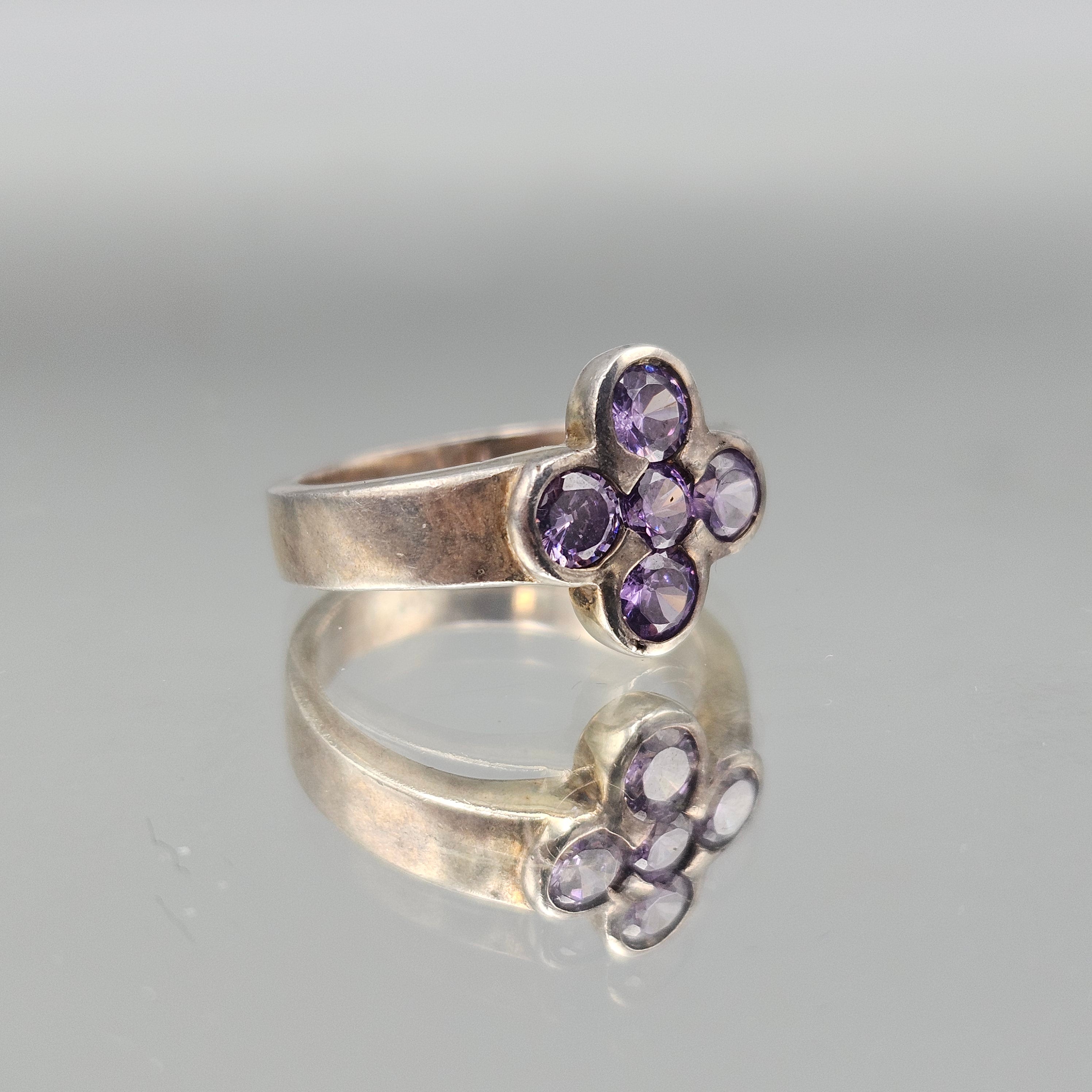 Vintage Sterling Silver Ring with Amethyst Cluster Flower - Size 8