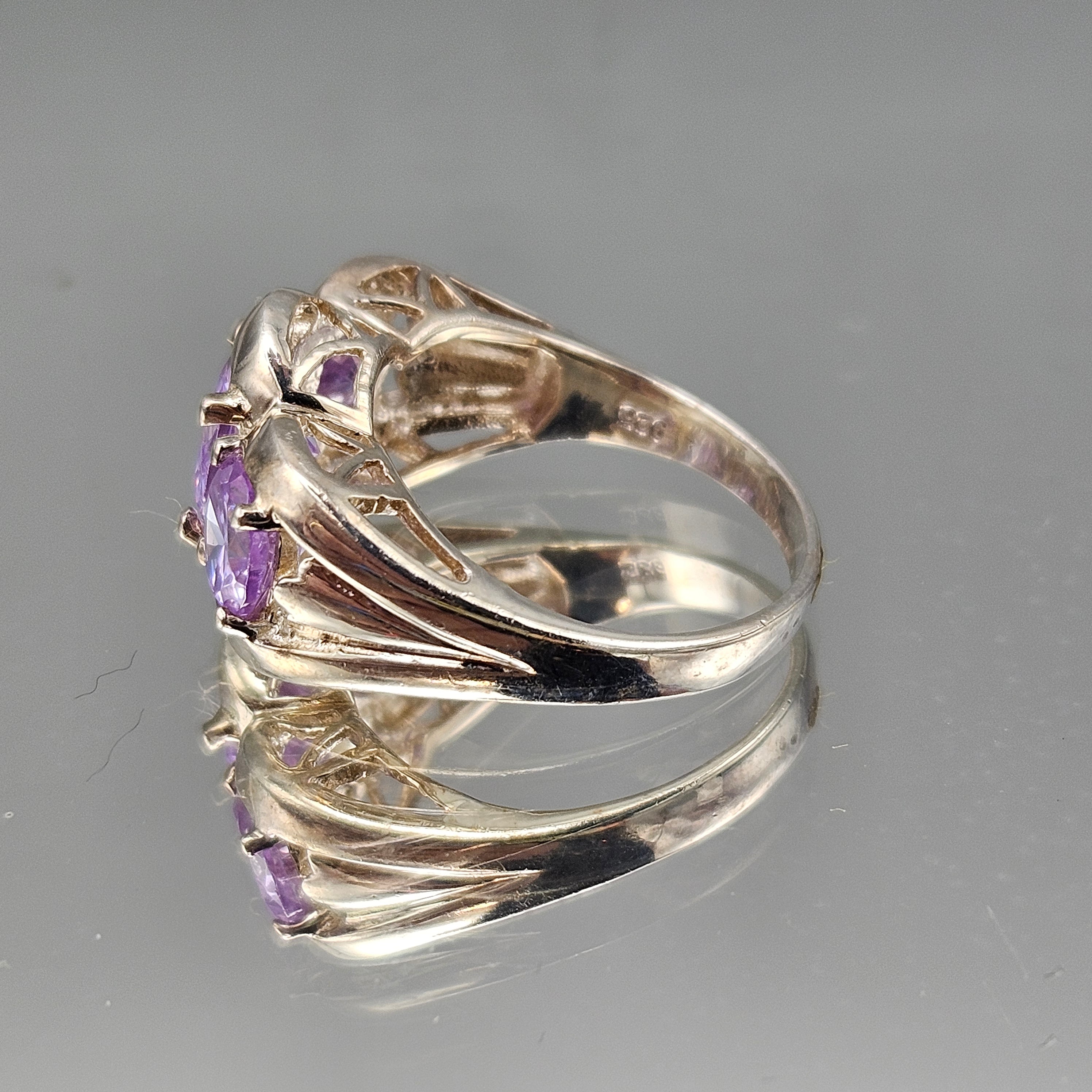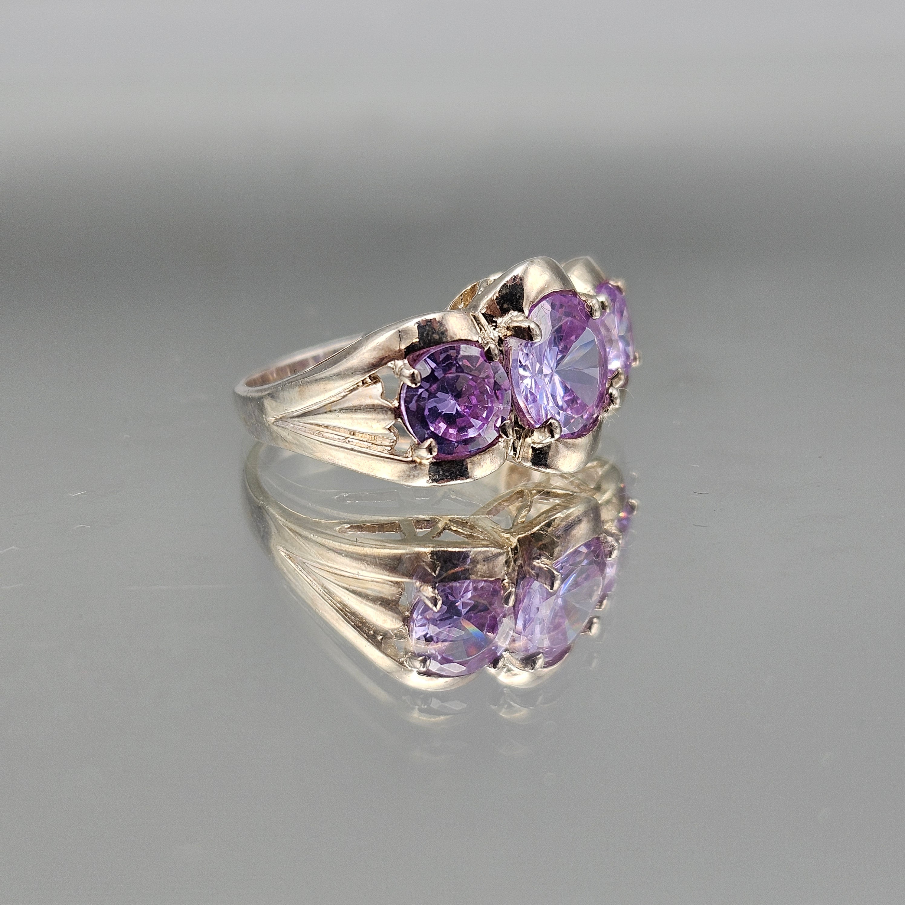 Vintage Sterling Silver Ring with Purple Amethyst Stones - Size 7.25