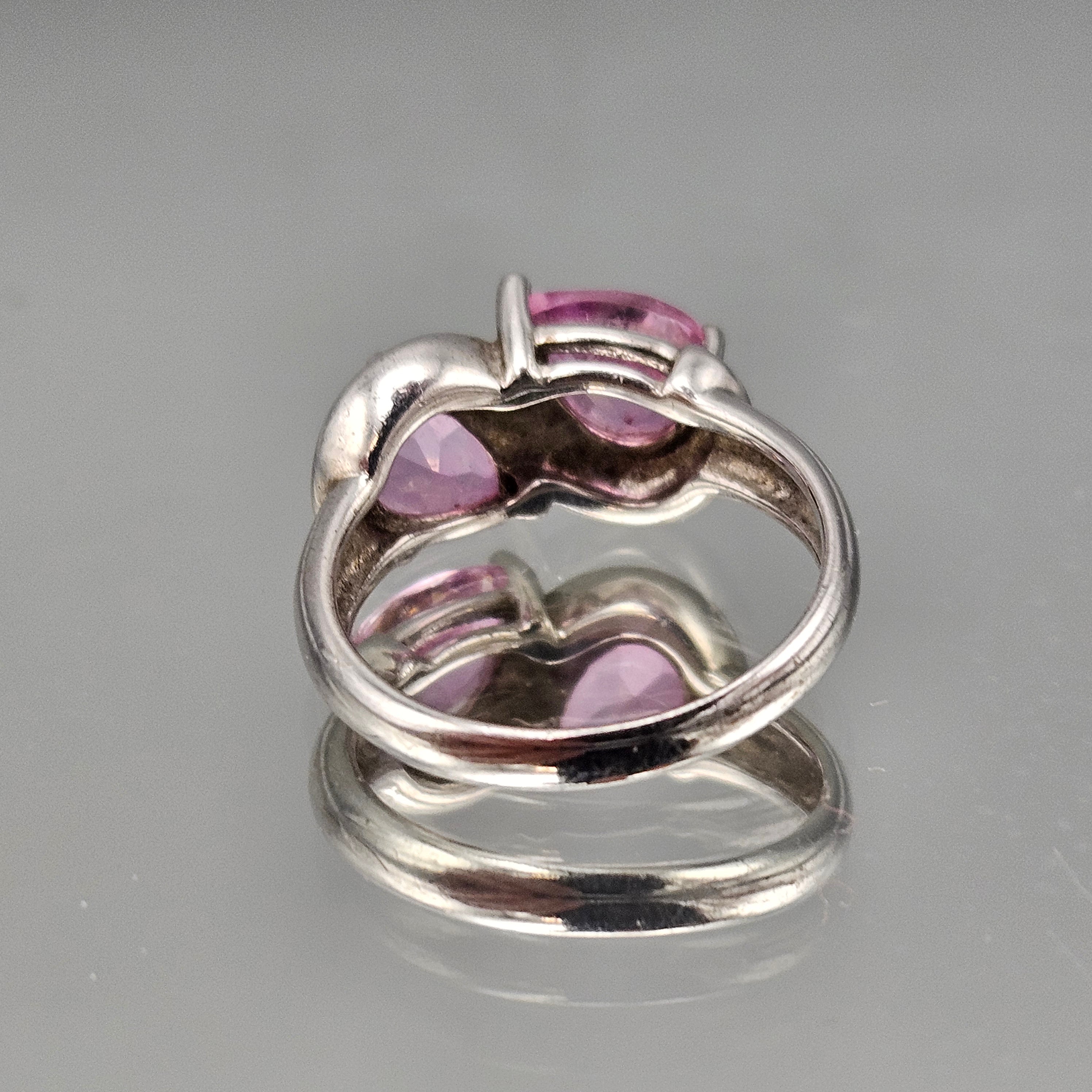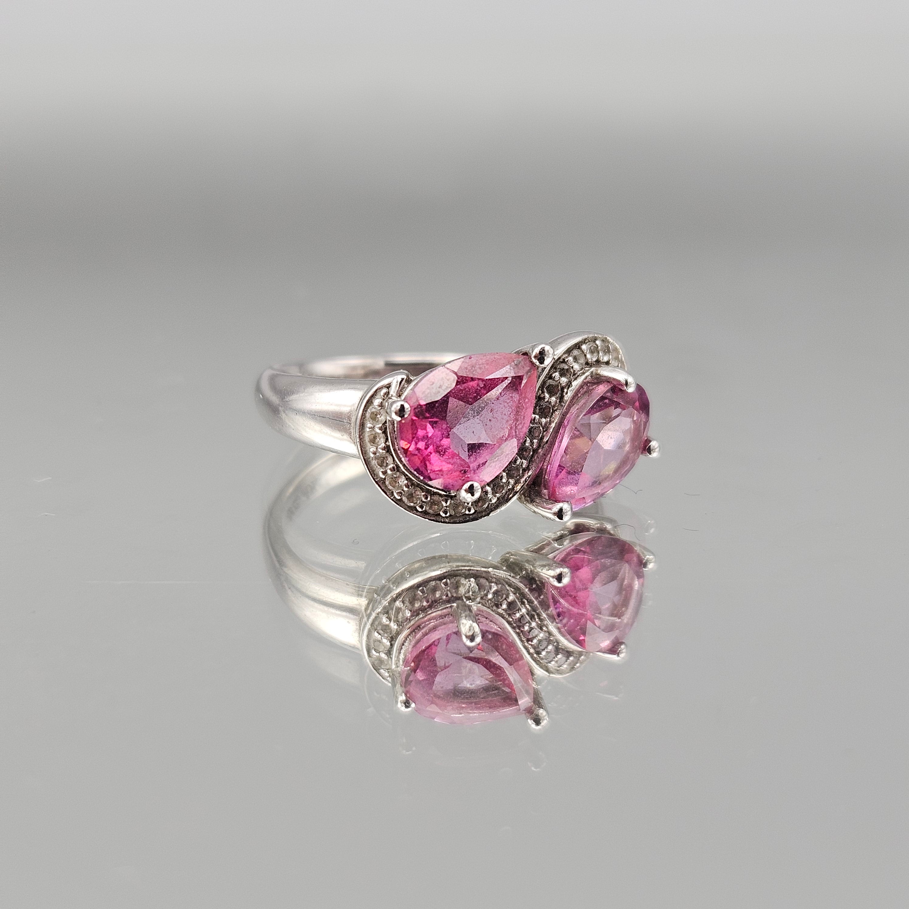 Vintage Sterling Silver Ring with Pear-Cut Pink Stones - Size 6
