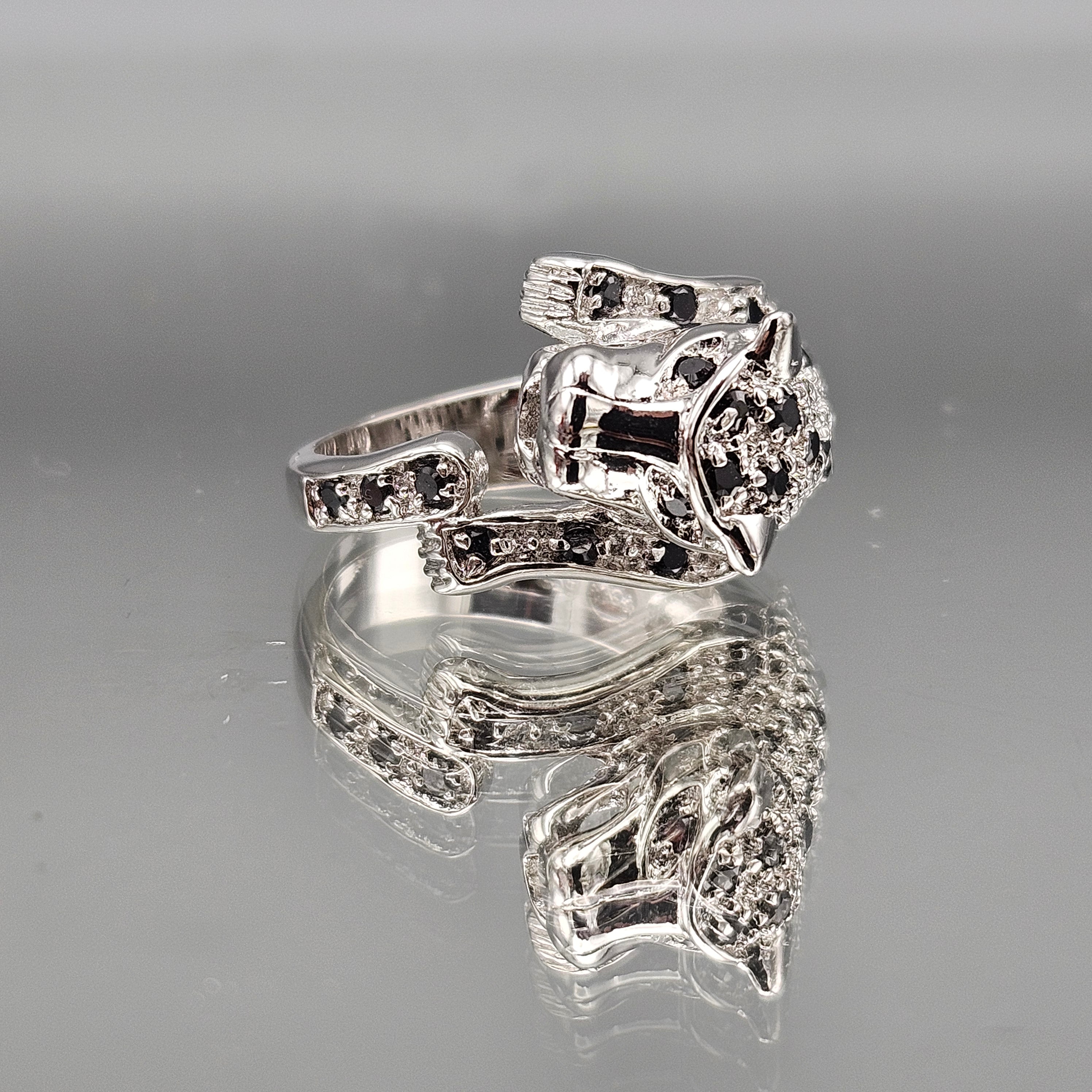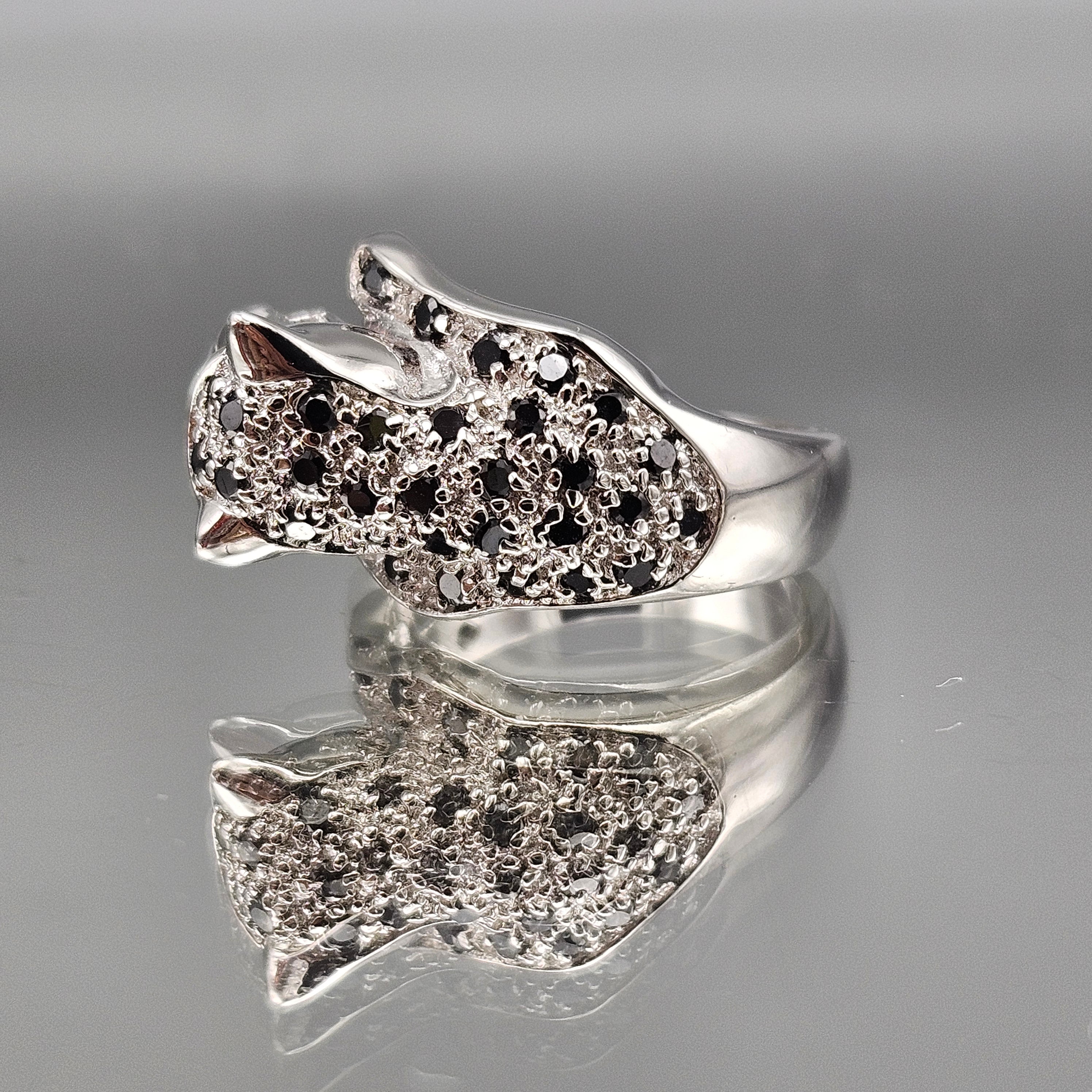 Sterling Silver Crystal Leopard Ring - 8.25
