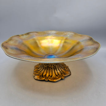 Vintage Tiffany Furnaces Bronze and Glass Compote