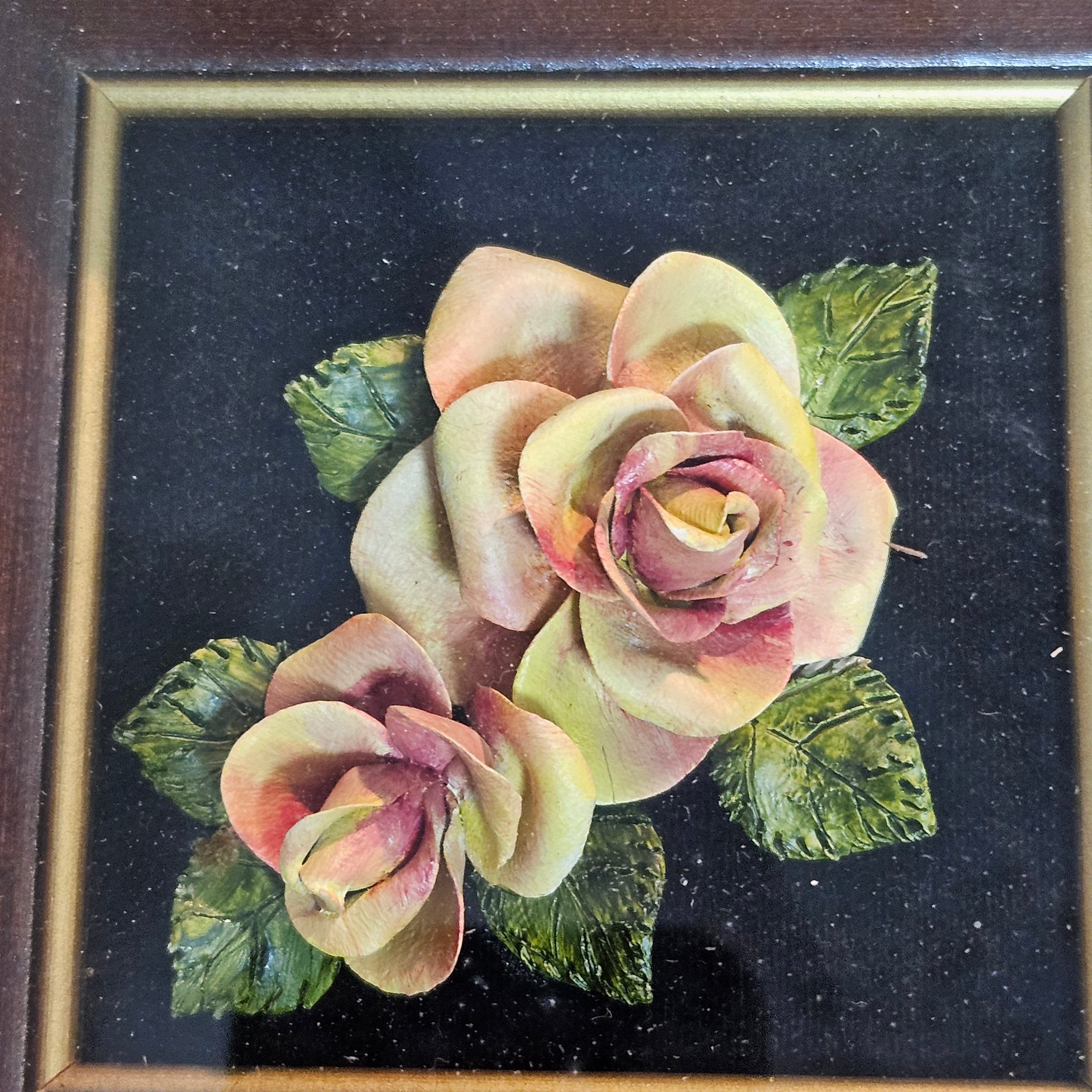Vintage AC Rowe Framed Composition Rose Sculpture Vancouver Canada