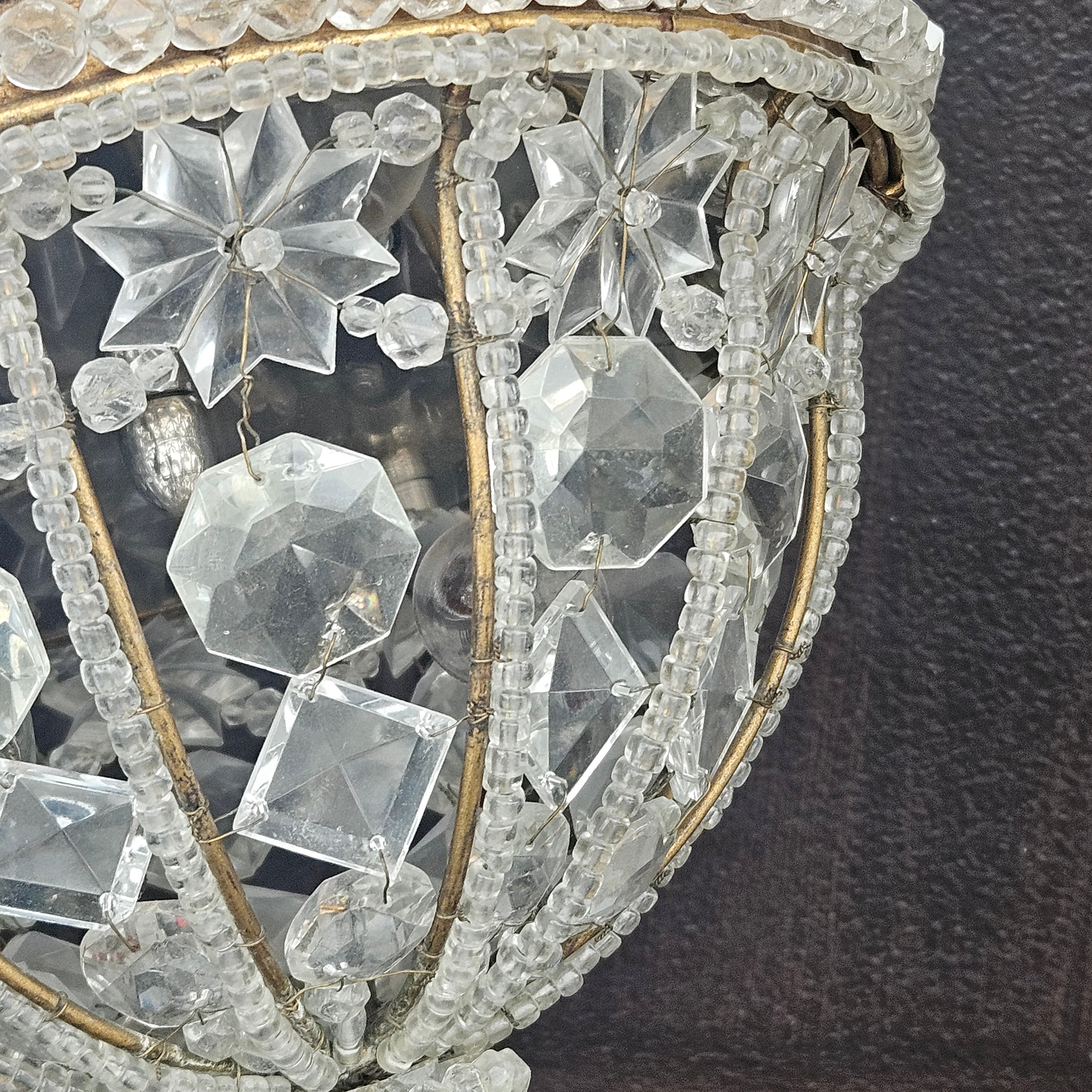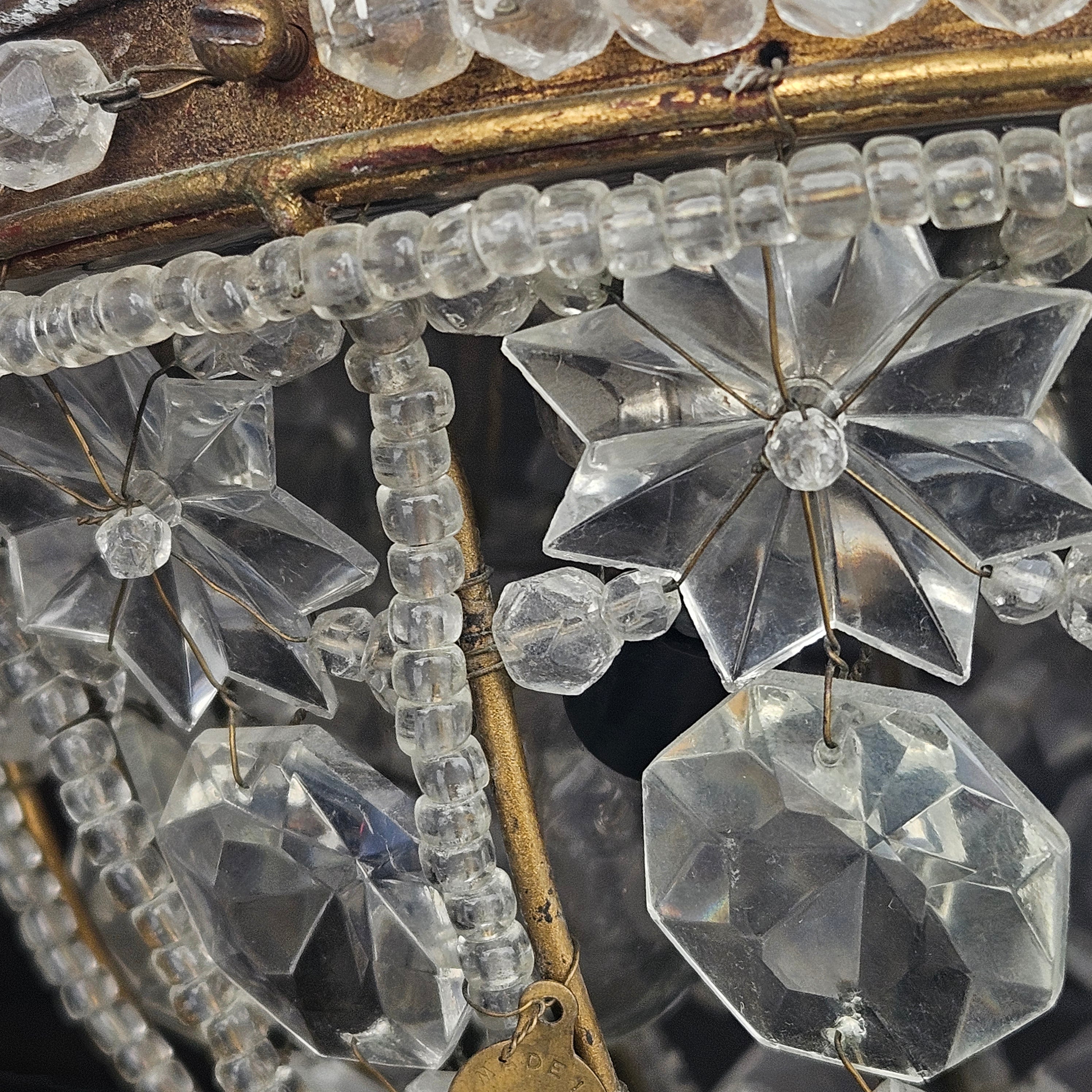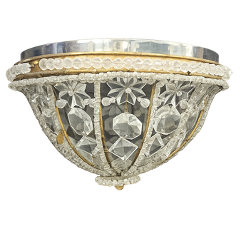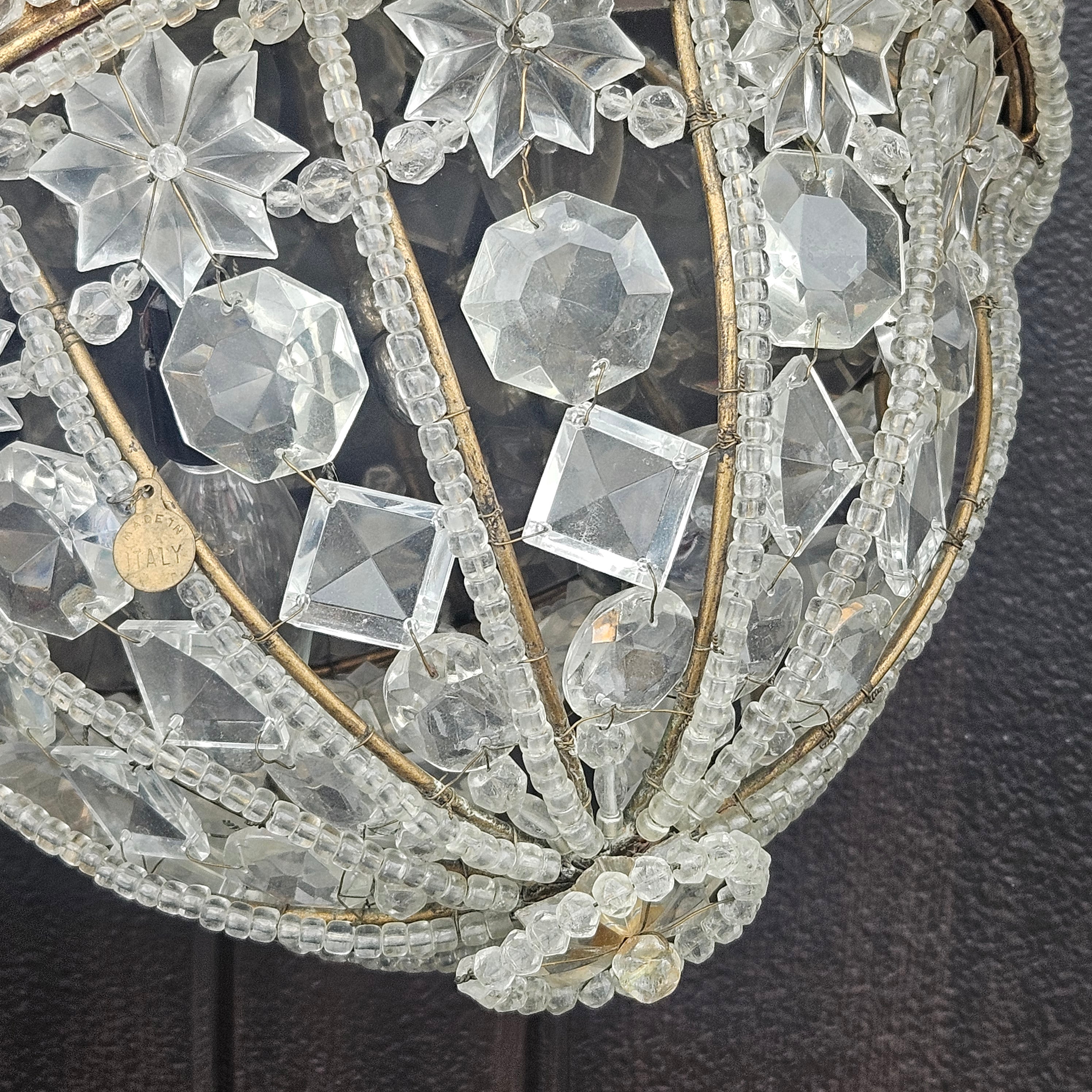 Vintage Crystal Beaded Flush Mount Light Fixture Made in Italy