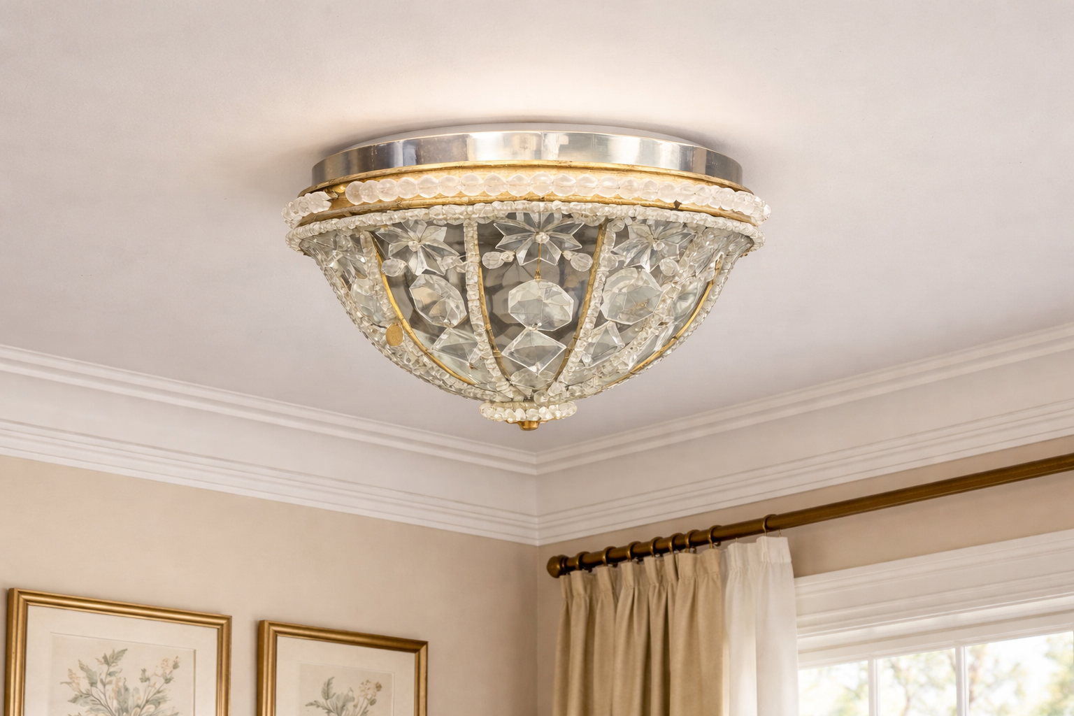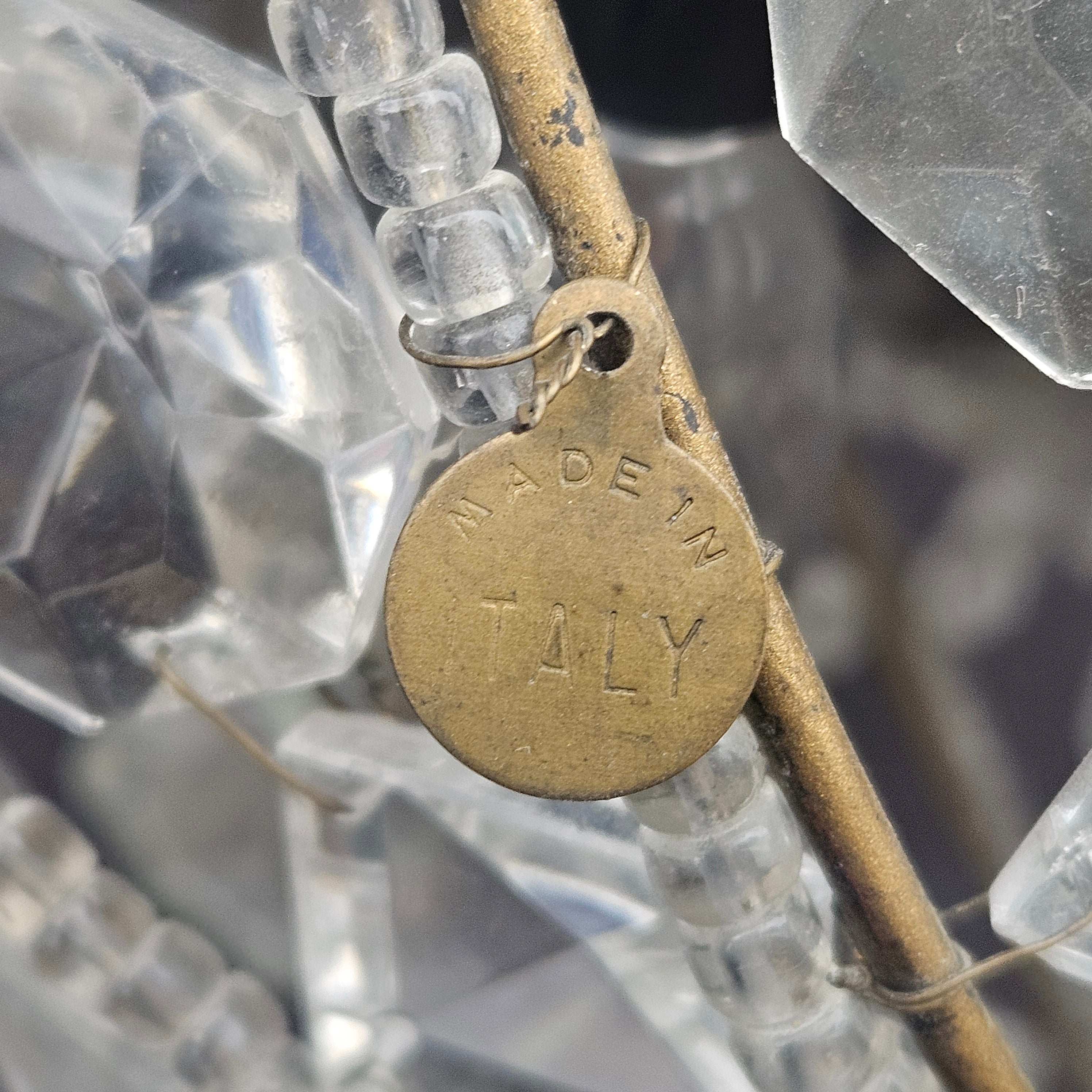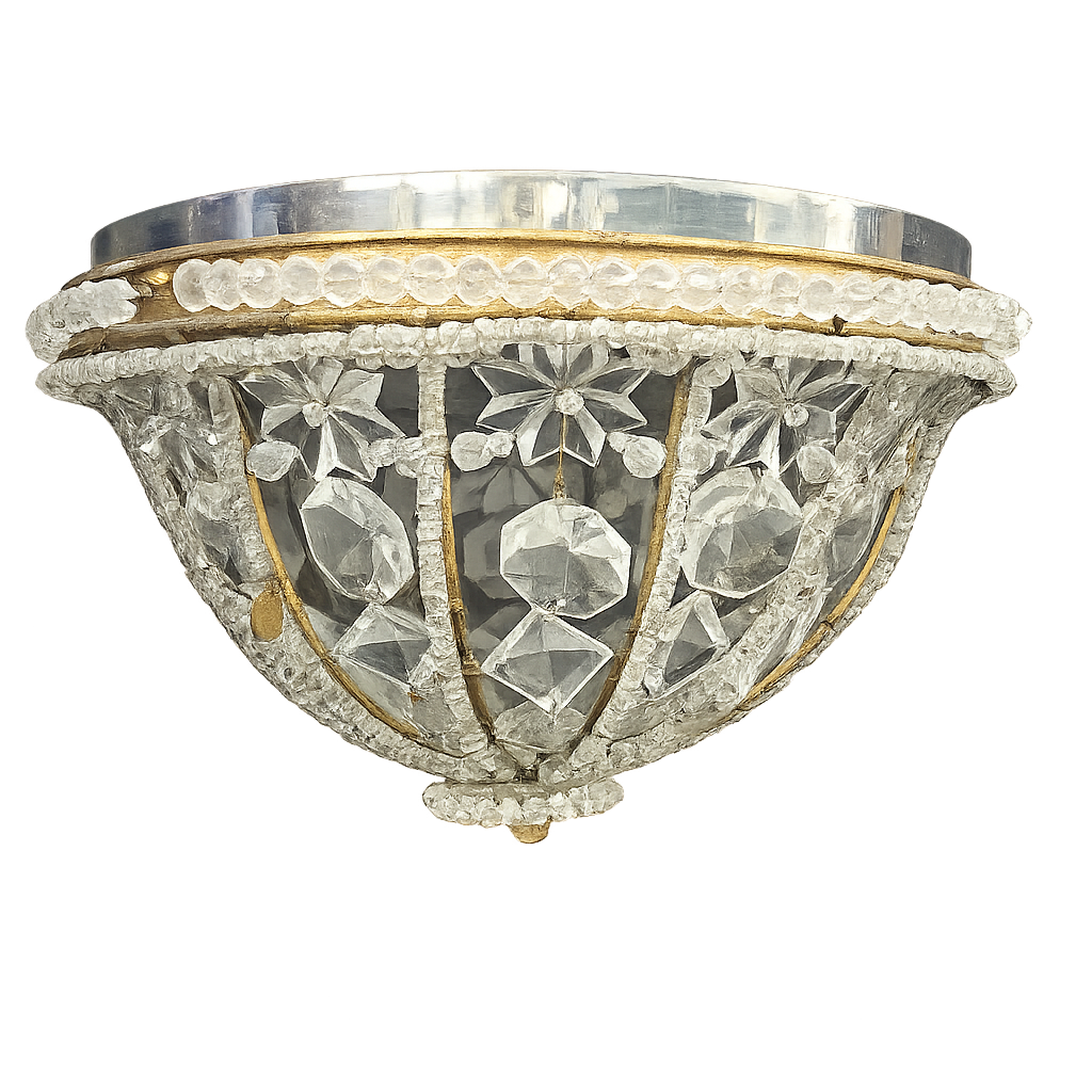Vintage Crystal Beaded Flush Mount Light Fixture Made in Italy