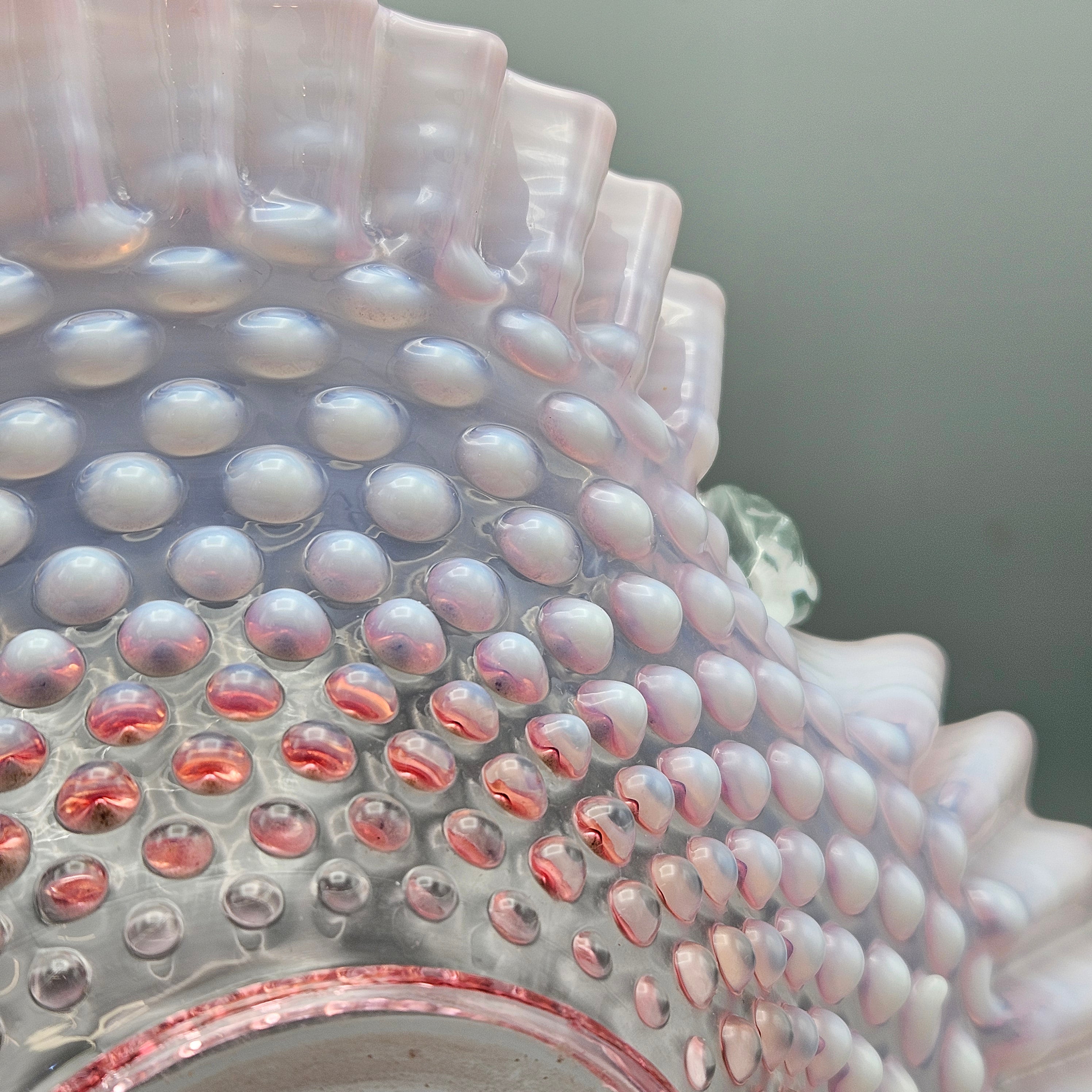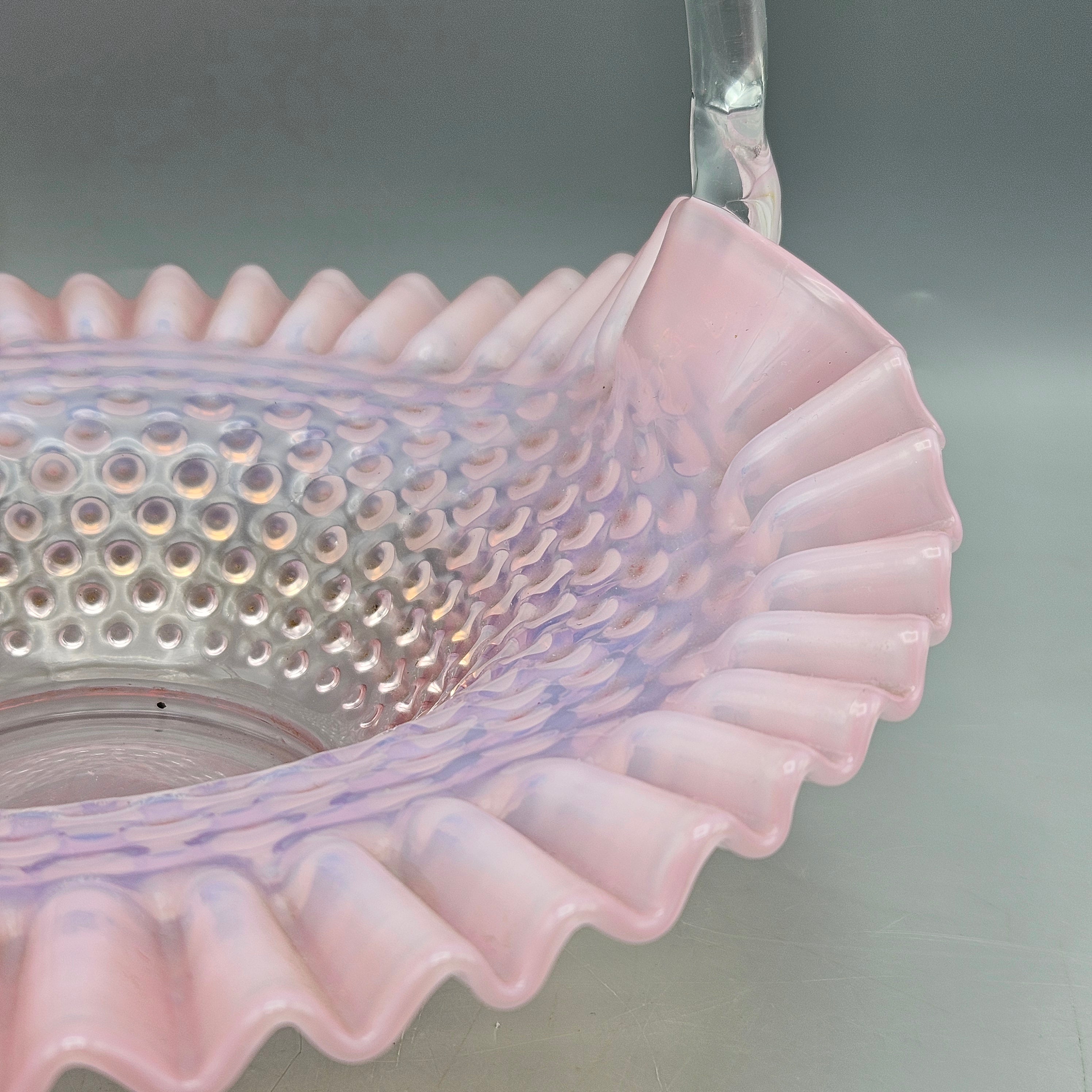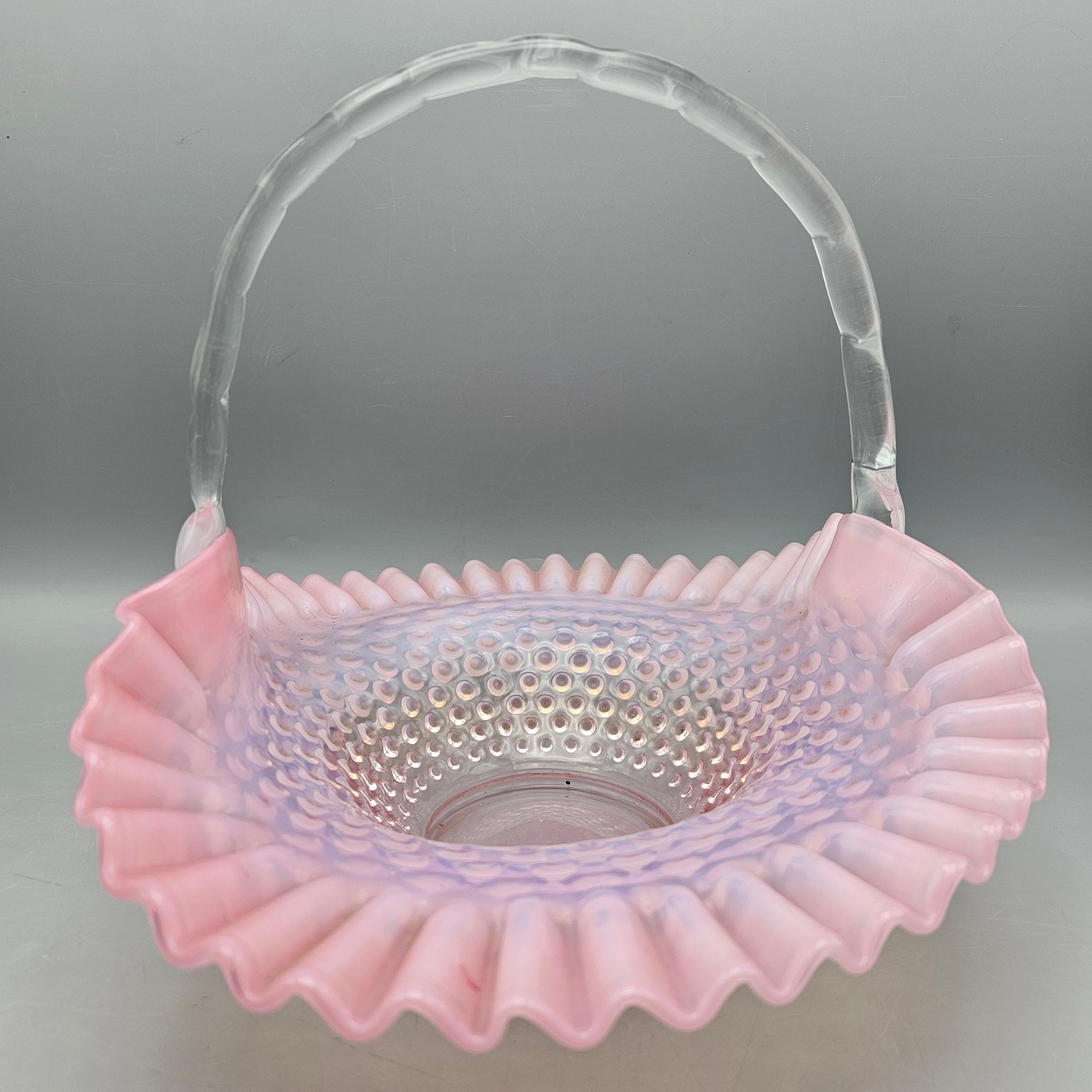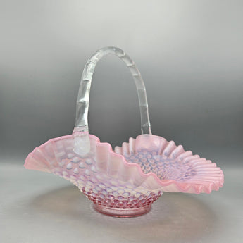 Vintage Fenton Art Glass Cranberry Opalescent Hobnail Basket