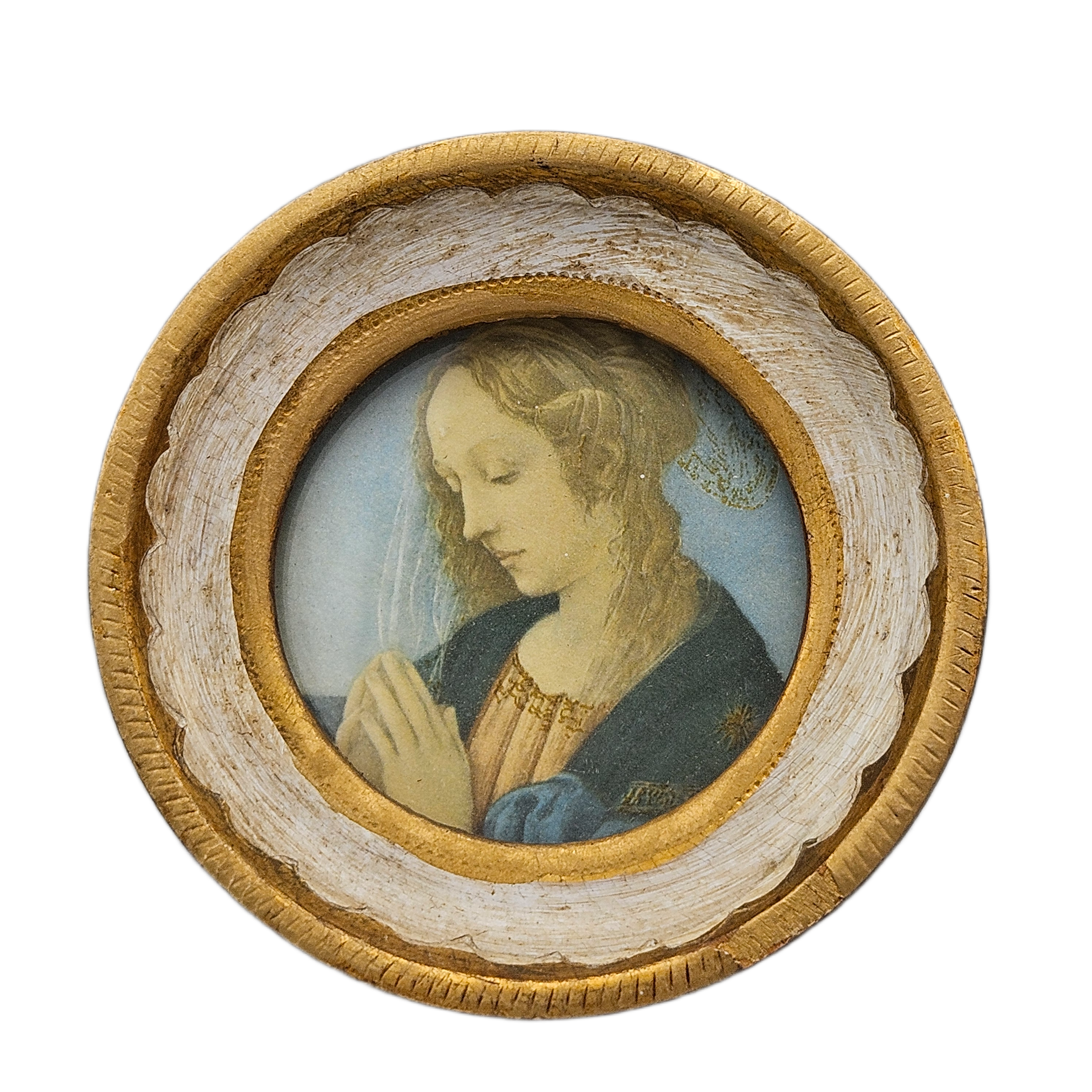 Vintage Framed Art of Madonna by Lippi in Italy Florentine Round Giltwood Frame