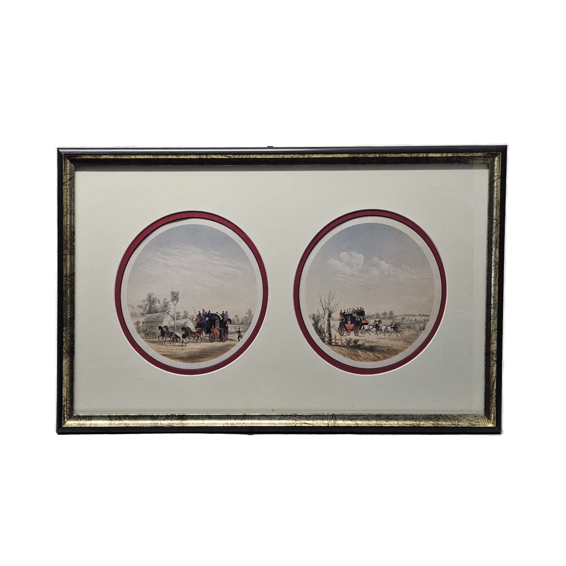 Vintage Framed Coaching Scene Lithographs