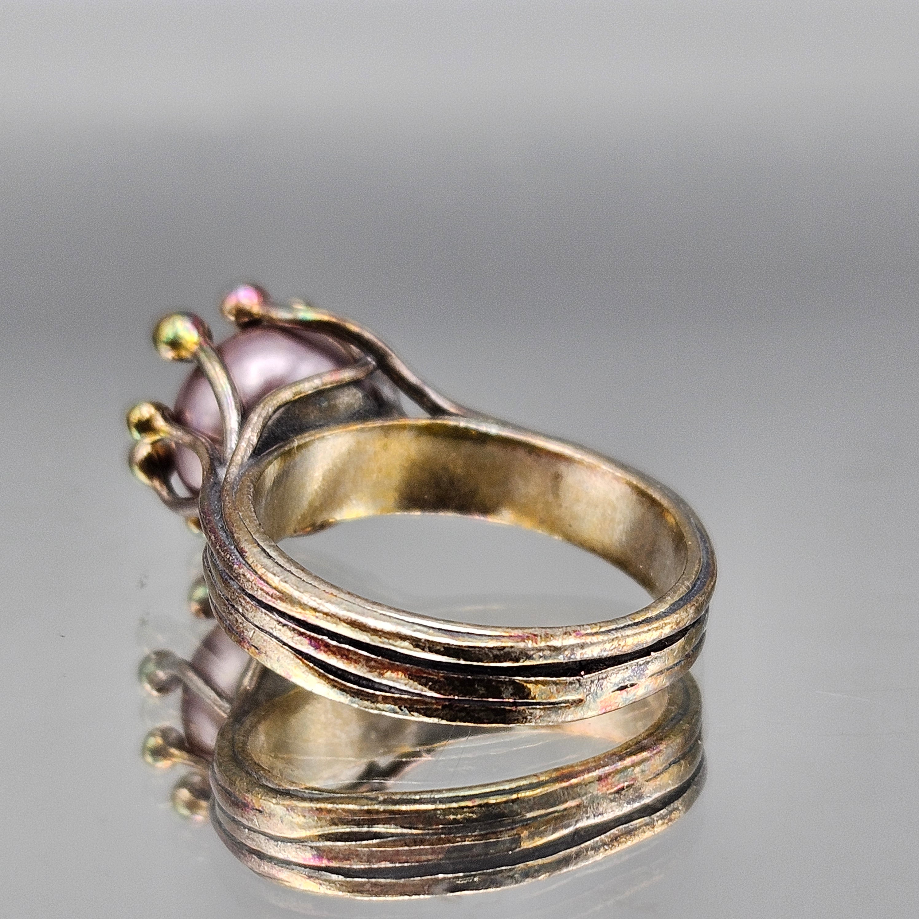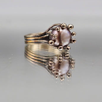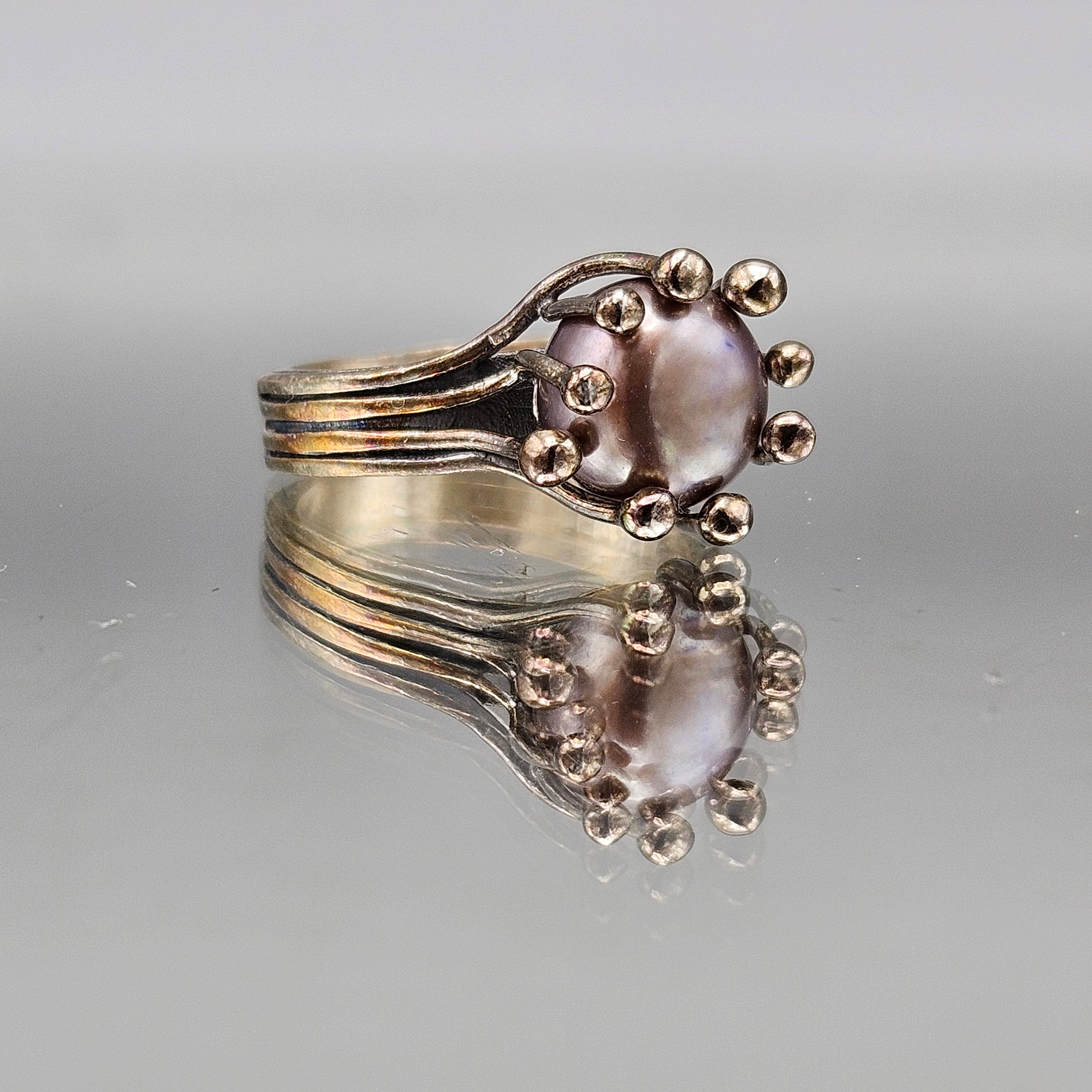 Vintage Israel Sterling Silver Dark Pearl Ring - Size 9