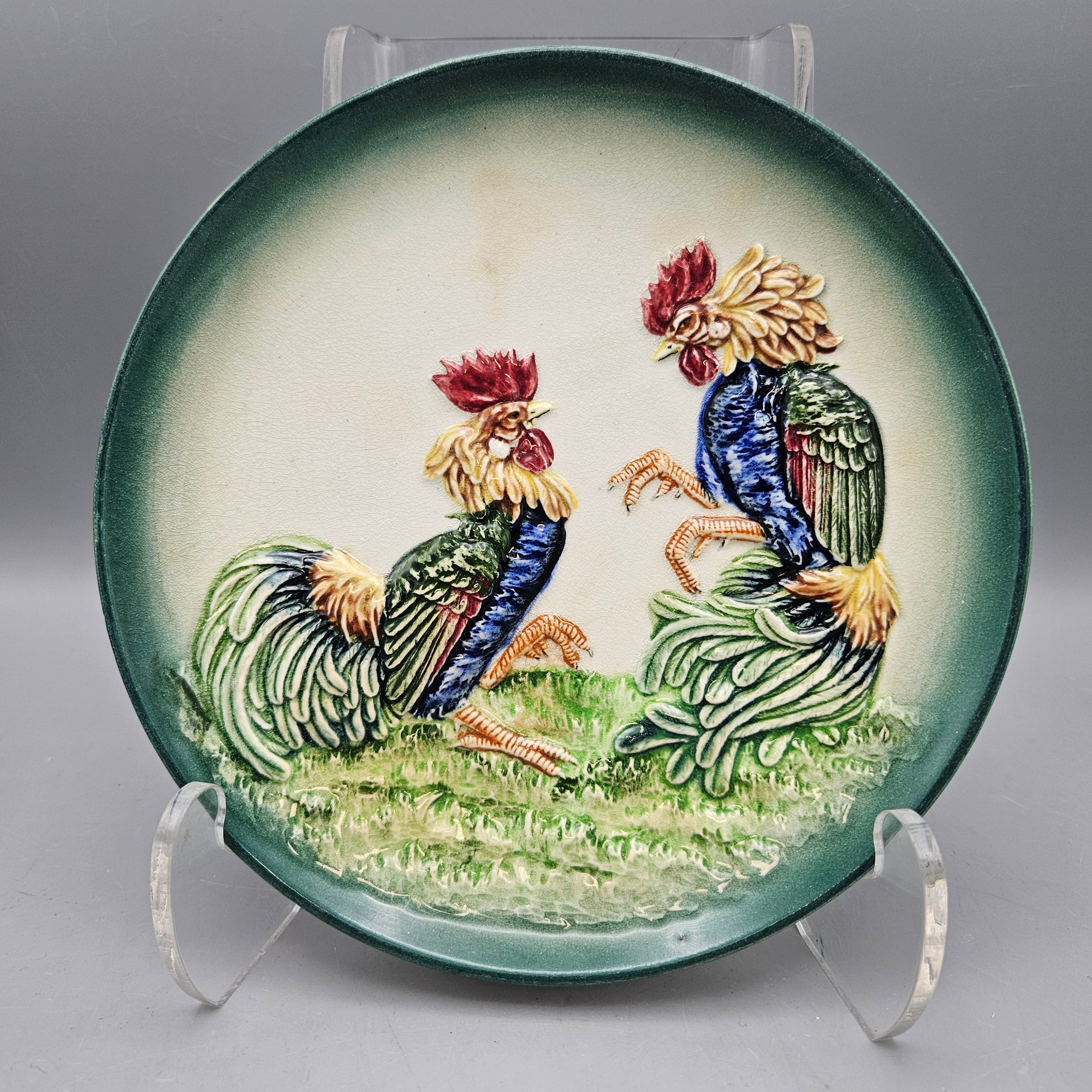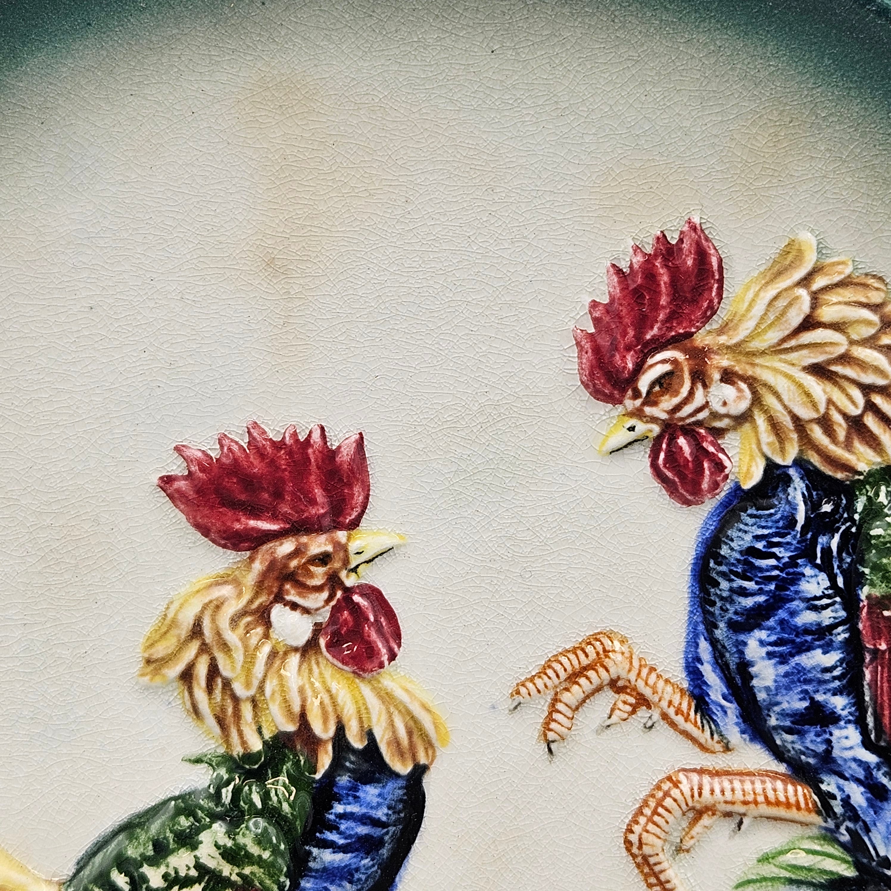 Vintage Japanese Ceramic Fighting Rooster Plate