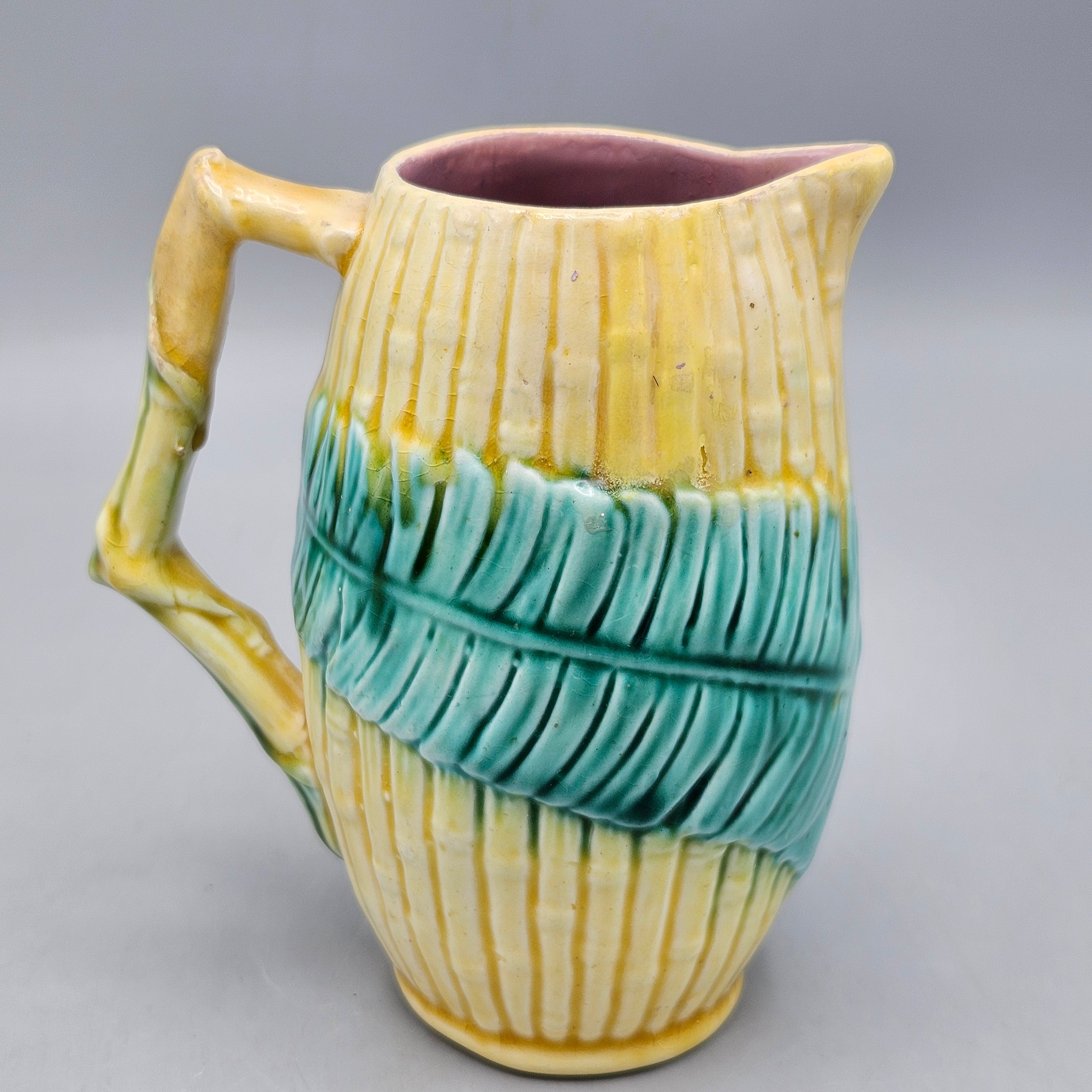 Vintage Majolica Bamboo And Fern Pitcher