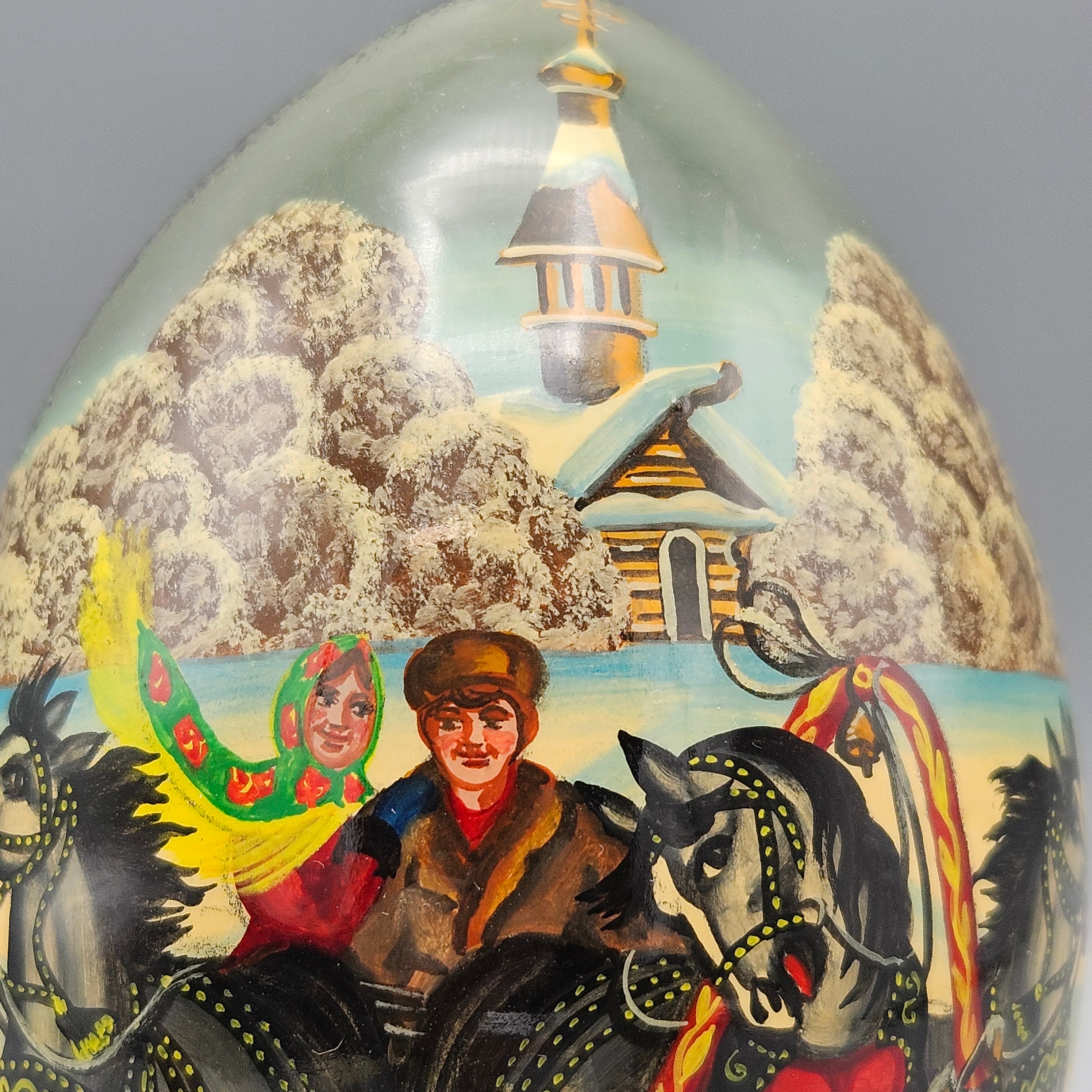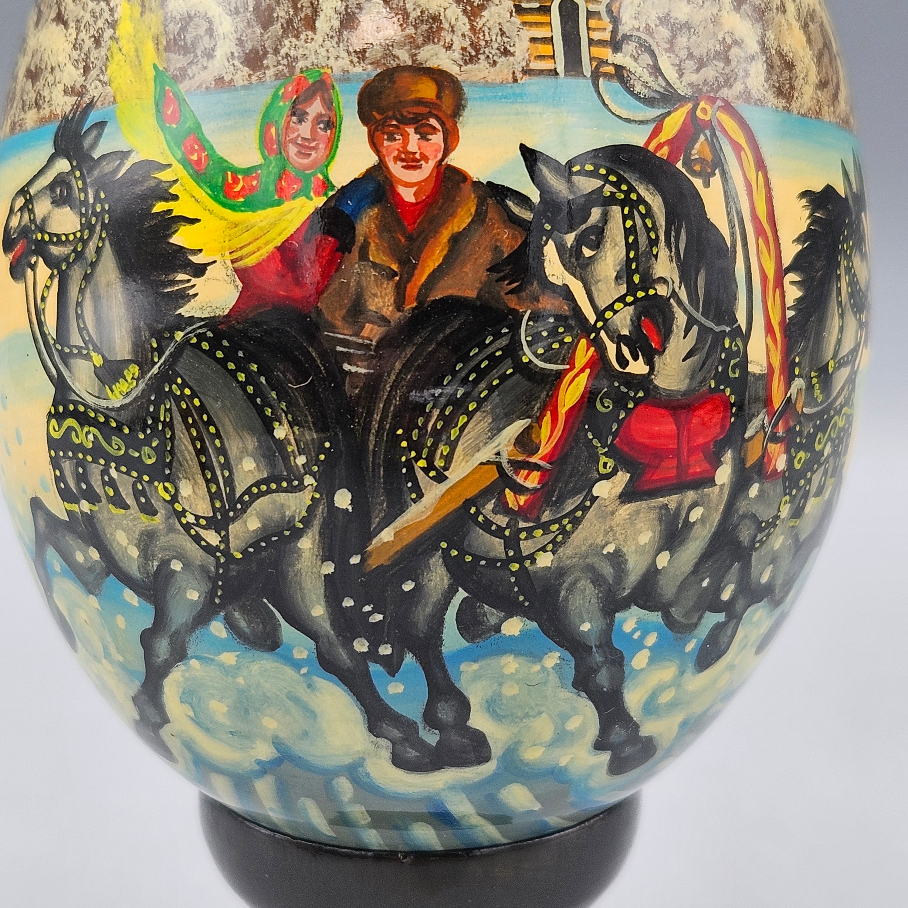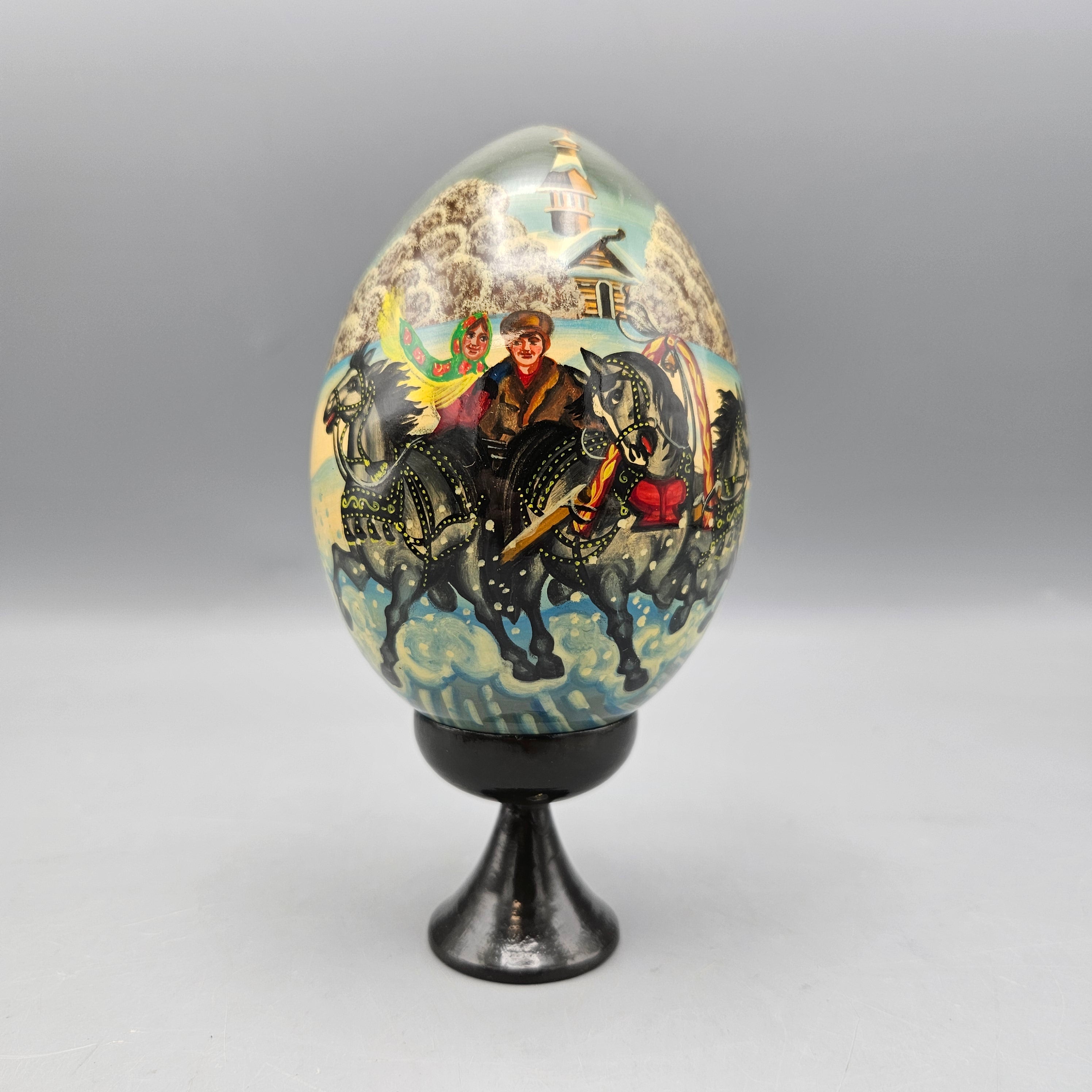 Vintage Russian Hand-painted Lacquered Wooden Egg